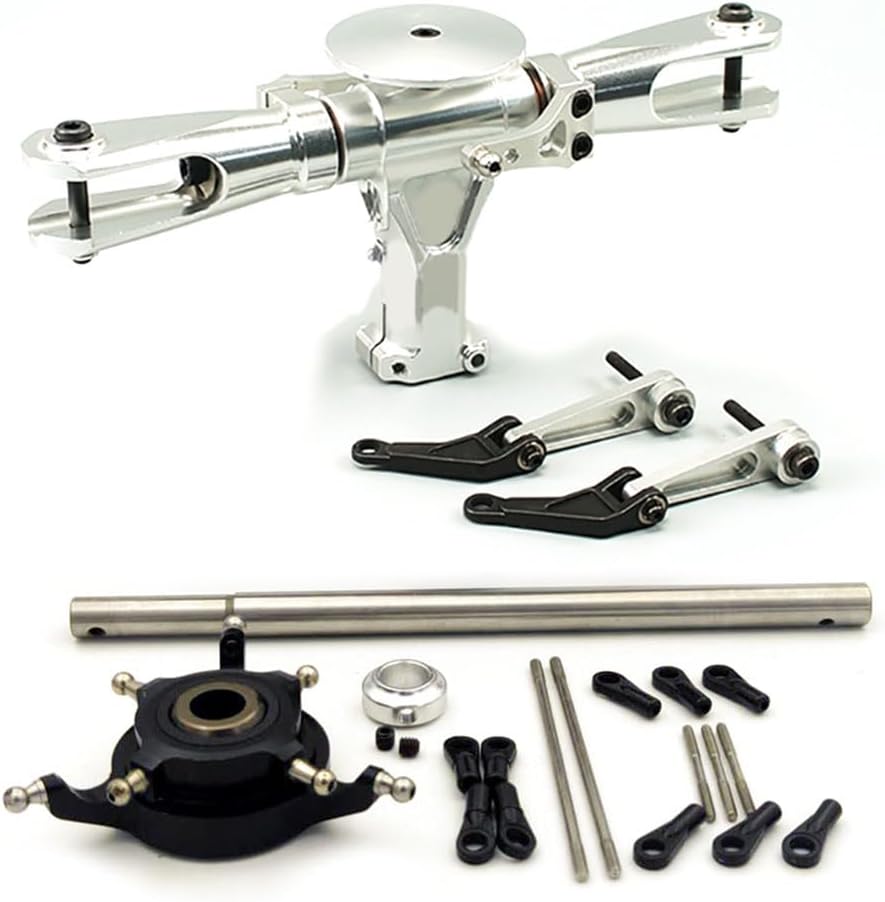Adatto per albero del rotore principale del diametro di 10 mm Colore: argento e nero Adatto per un rotore principale con uno spessore dell'impugnatura di 12 mm Materiale: lega di alluminio Prodotto adatto per Align Trex 550 600 RC Helicoter