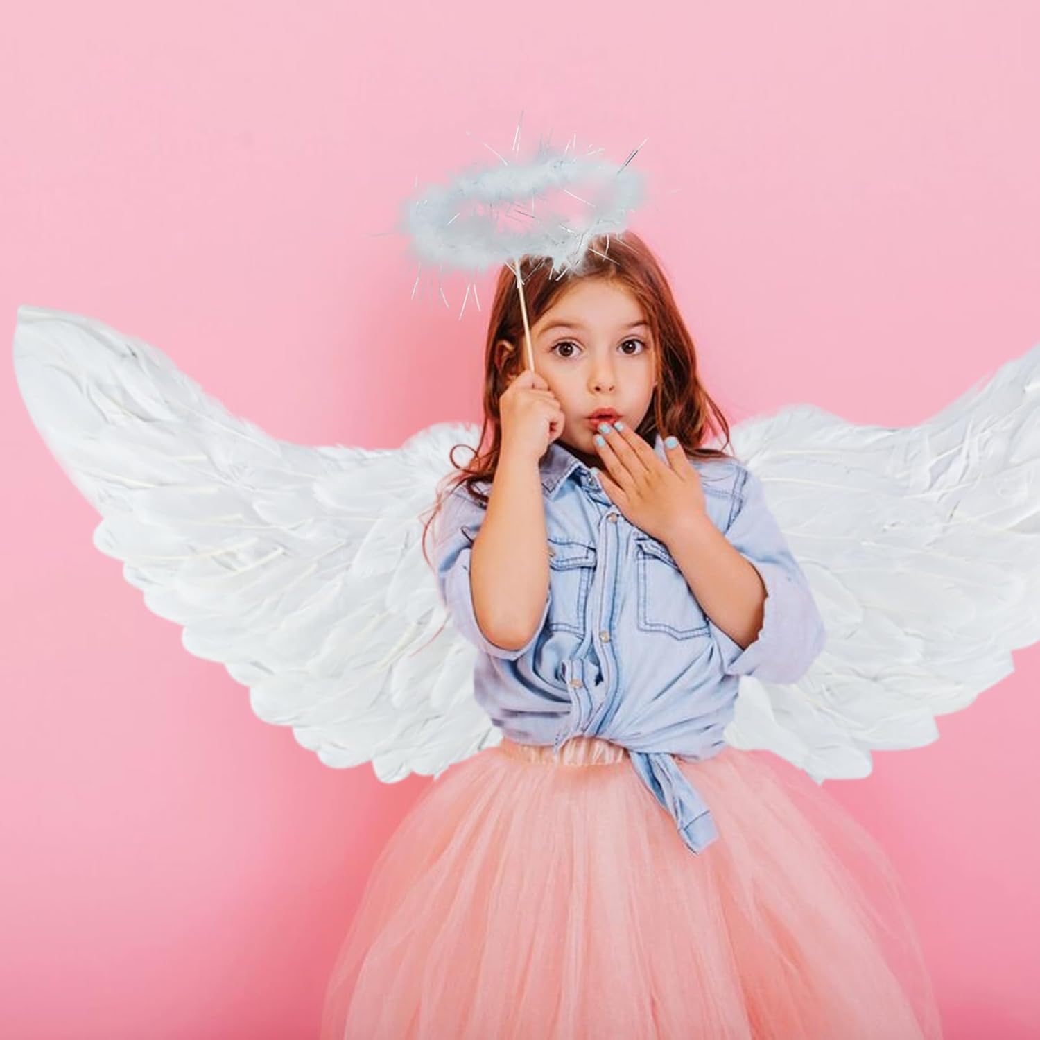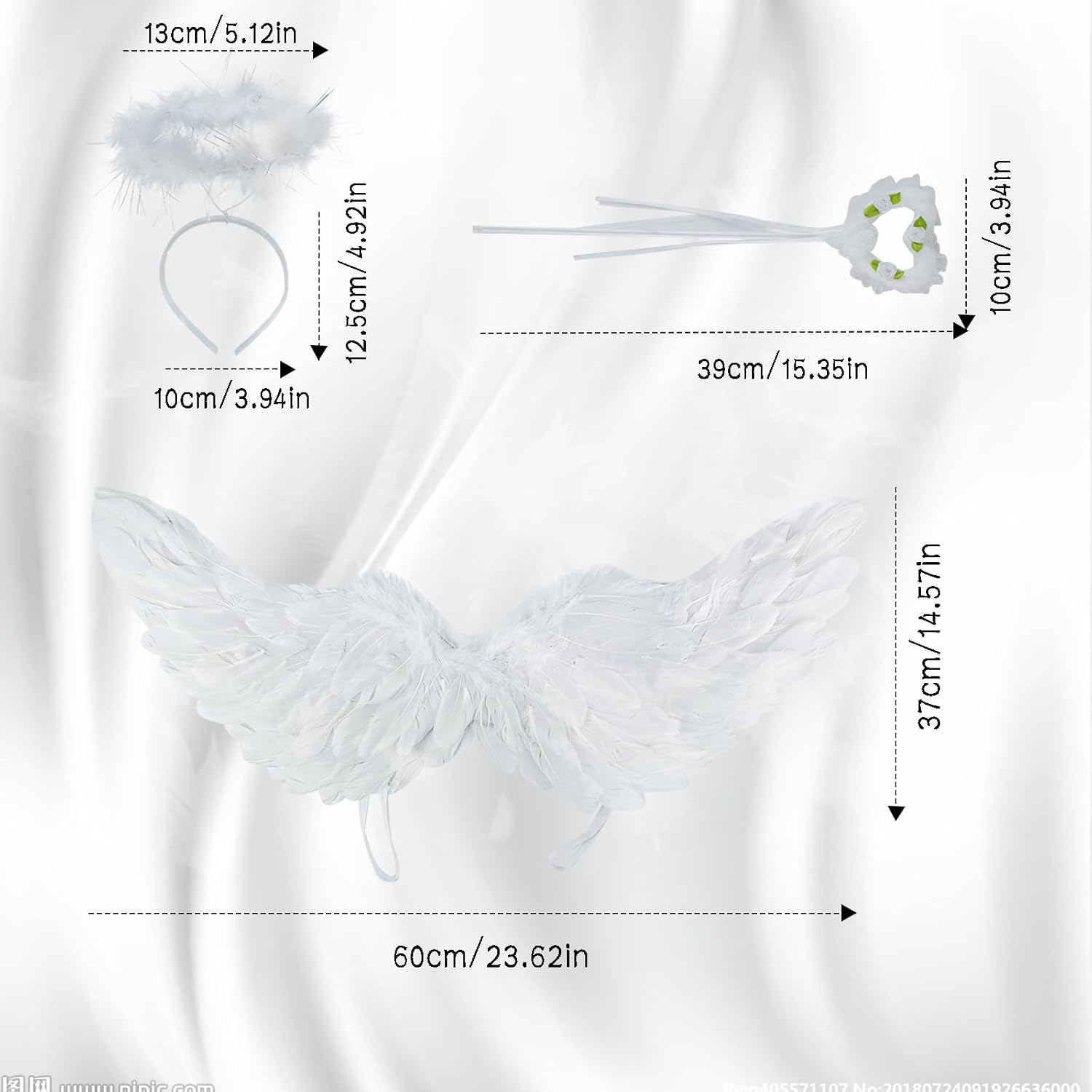 Set di 3 Pezzi di Ali D'angelo: Le ali con aureola e bacchetta includono 1 ala d'angelo di piume e 1 fascia di paillettes, 1 bastone magico da fata. Ali D'angelo di Piume Grandi: Taglia unica per adulti e bambini. Ali d'angelo bianche 60*35 cm, elastico per indossarle facilmente. Sono leggere, morbide, resistenti e possono essere riutilizzate. Qualità: Ali di piume con angelo, super resistenti, articoli acquistabili, design unico, alta qualità, dettagli raffinati ed eleganza. Versatile: Un vero e proprio eye-catcher in qualsiasi rave party. Il angelo bacchetta è perfetto per feste in costume, Halloween, carnevale, feste di compleanno o balli in maschera. Servizio Post-Vendita di Alta Qualità: La soddisfazione del cliente è la nostra massima priorità. Non preoccupatevi per la qualità del bianco ali fata, acquistare con fiducia!!!! Se avete domande, vi preghiamo di contattarci, vi daremo una risposta soddisfacente.