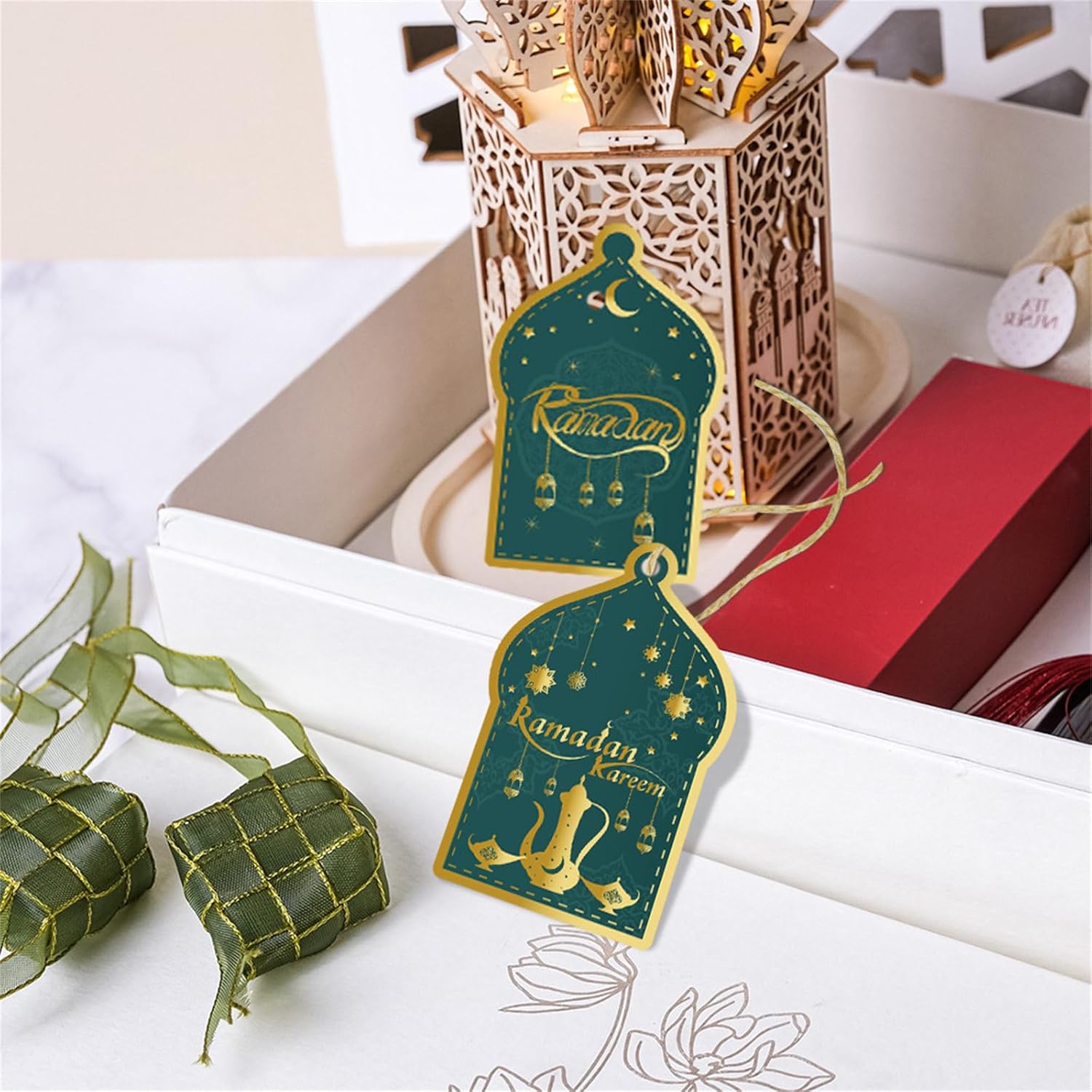 Realizzati in cartone, questi biglietti sono robusti ma portatili, presentano una stampa facile da usare che garantisce colori luminosi e stabili Per decorazioni domestiche, vetrine, luoghi religiosi e riunioni sociali, questi biglietti portano un fascino speciale a qualsiasi ambiente Con spago incluso, facile da appendere o attaccare questi biglietti a tema festival a regali, forniture per feste o oggetti decorativi per un tocco personalizzato Migliora la tua celebrazione del Ramadan e dell'Eid con le nostre 60 carte regalo Ramadan, progettate per aggiungere un tocco di festival a qualsiasi regalo o decorazione Adatto a famiglie, proprietari di negozi e organizzatori di eventi comunitari che desiderano celebrare gli spiriti del Ramadan e dell'Eid