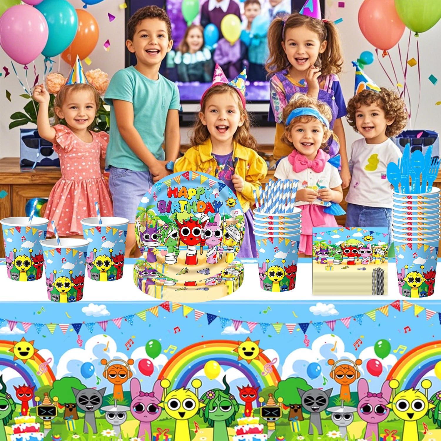 Set completo: include piatti piani da 20 x 7", 20 bicchieri di carta, 20 tovaglioli e 1 tovaglia, per soddisfare le esigenze degli ospiti della festa e gestire il numero di ospiti. Design a tema: con il tema dei giochi musicali casual, il design delle stoviglie è pieno di dinamismo e vitalità, aggiungendo un'atmosfera unica alla festa. Decorazione creativa: design alla moda e innovativo, non solo stoviglie, ma anche parte della decorazione per feste, che migliora l'effetto visivo complessivo. Comodo e pratico: con le stoviglie per feste elimina la fastidiosa pulizia, in modo da poter concentrarsi maggiormente sul divertimento della festa. Multiuso: adatto per feste a tema musicale, serate di gioco, feste di compleanno e altre occasioni che aggiungono divertimento e comfort al vostro evento.