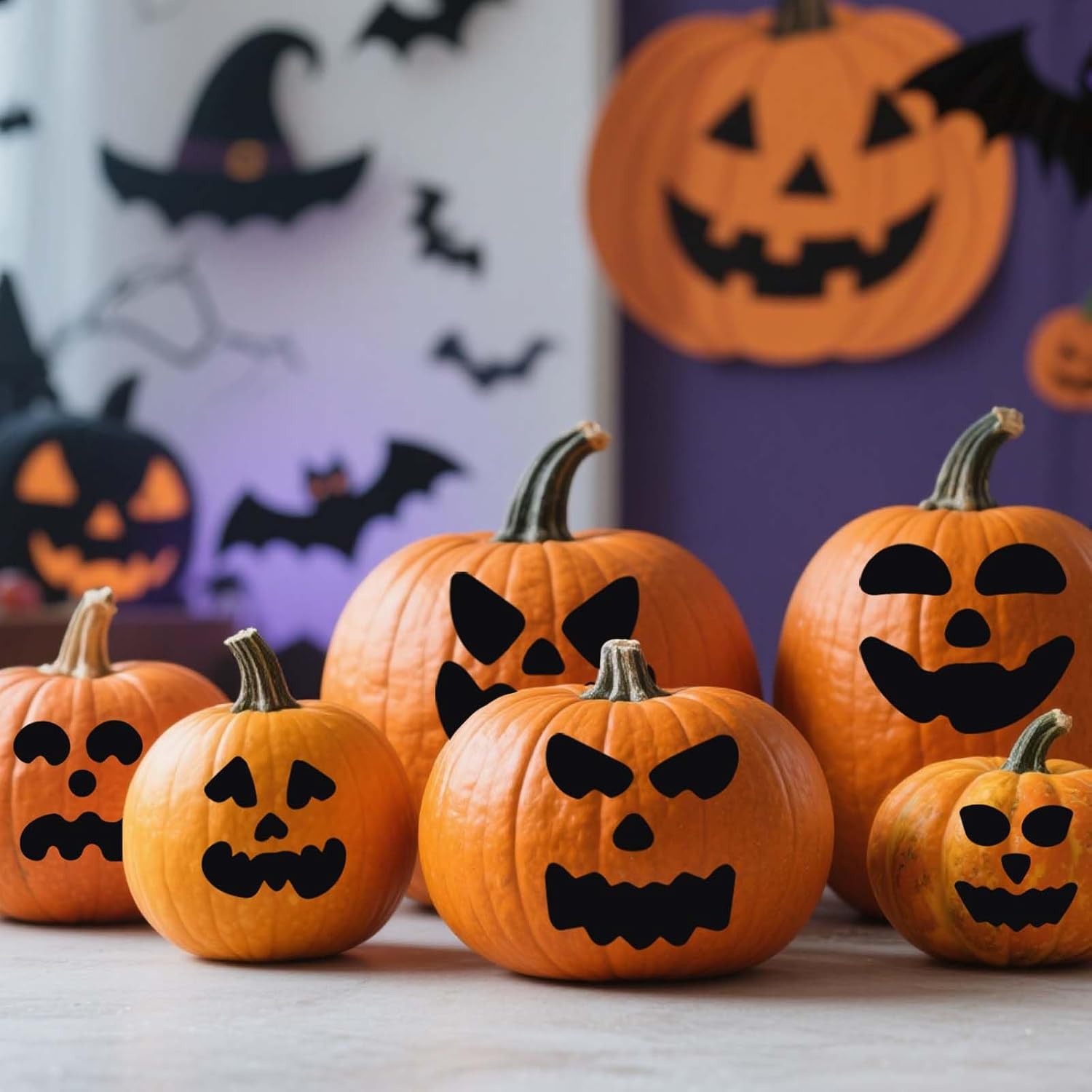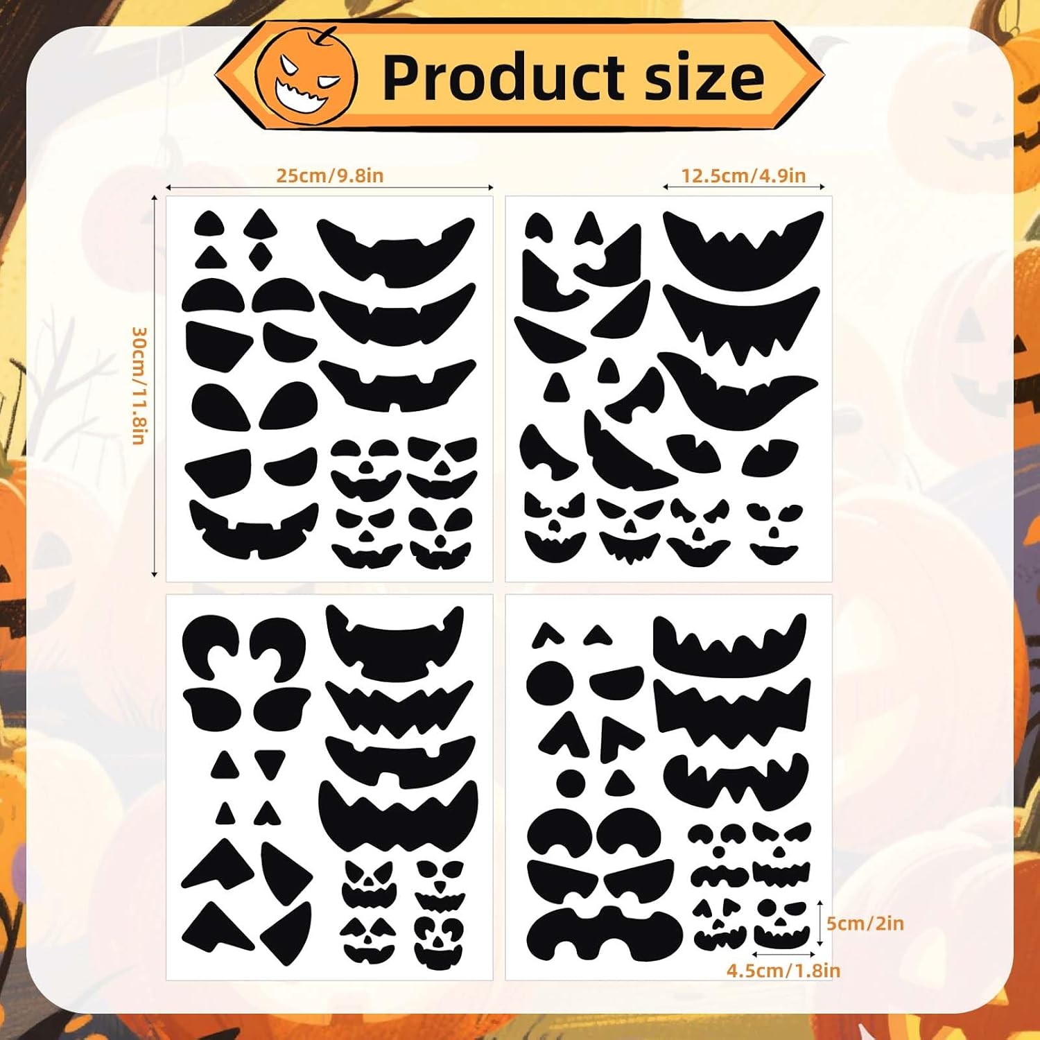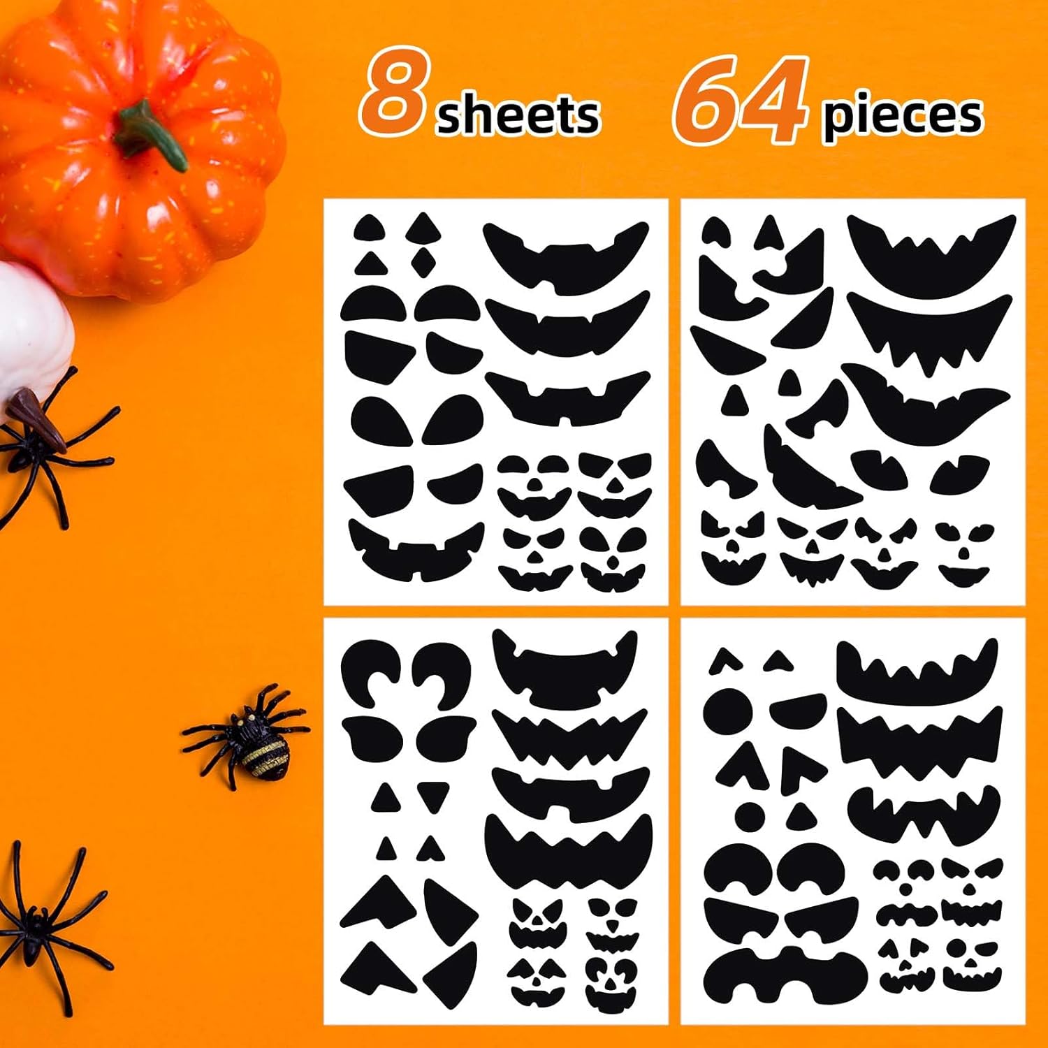 Il pacchetto include: riceverai 64 adesivi decorativi a forma di zucca, sufficienti per soddisfare le esigenze della tua festa di Halloween. Usateli per decorare facilmente le vostre zucche. Materiale di qualità: realizzati con adesivi in carta patinata, questi adesivi sono facili da staccare e incollare. Aderiscono bene ai secchi di zucca o a qualsiasi superficie liscia e non cadranno facilmente. Decorazione della zucca senza disordine: basta sbucciare e attaccare le decalcomanie alle tue zucche, senza bisogno di intagliare! Crea facce spettrali o sciocche di Jack-O'-Lantern in pochi minuti, rendendo la decorazione divertente e sicura. Divertente lavoretto di Halloween: questi adesivi per facce di zucca sono un'alternativa sicura e creativa all'intaglio della zucca. Lascia che i bambini esplorino la loro creatività e decorino le loro zucche con espressioni divertenti. Decorazioni versatili per le feste: perfette per feste di Halloween, eventi dolcetto o scherzetto, concorsi di decorazione di zucche, festival autunnali, feste di compleanno, celebrazioni scolastiche, ecc., aggiungendo un tocco festoso a ogni occasione.