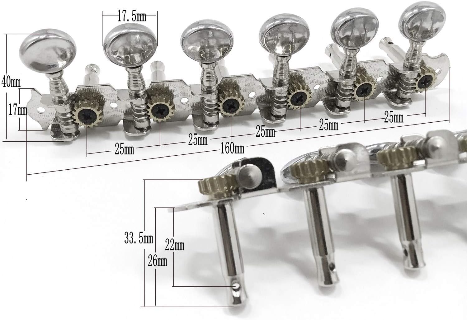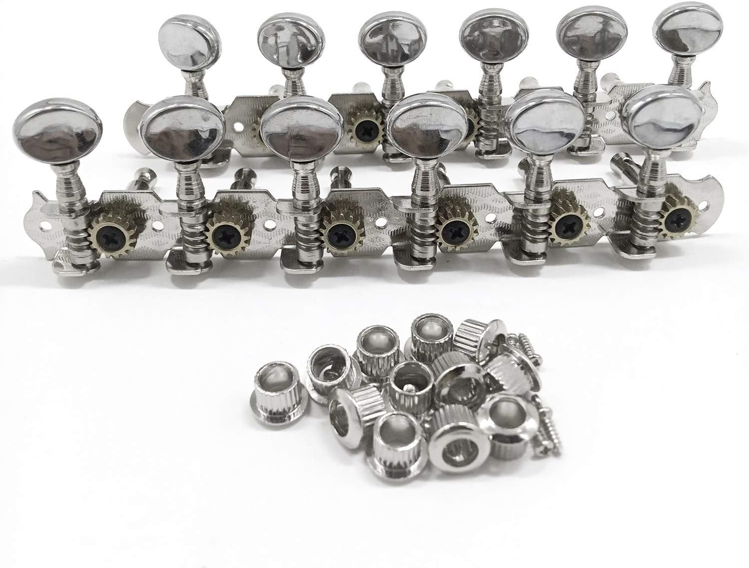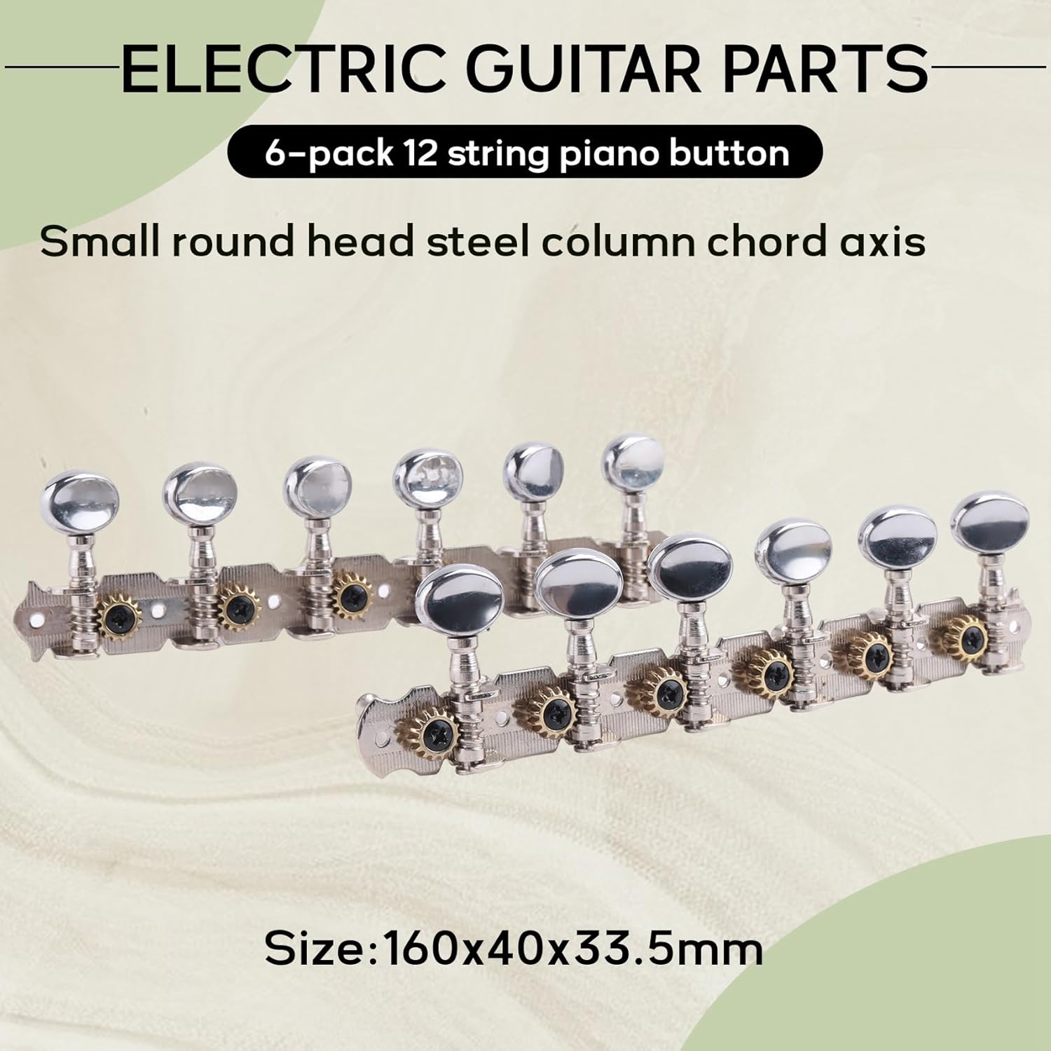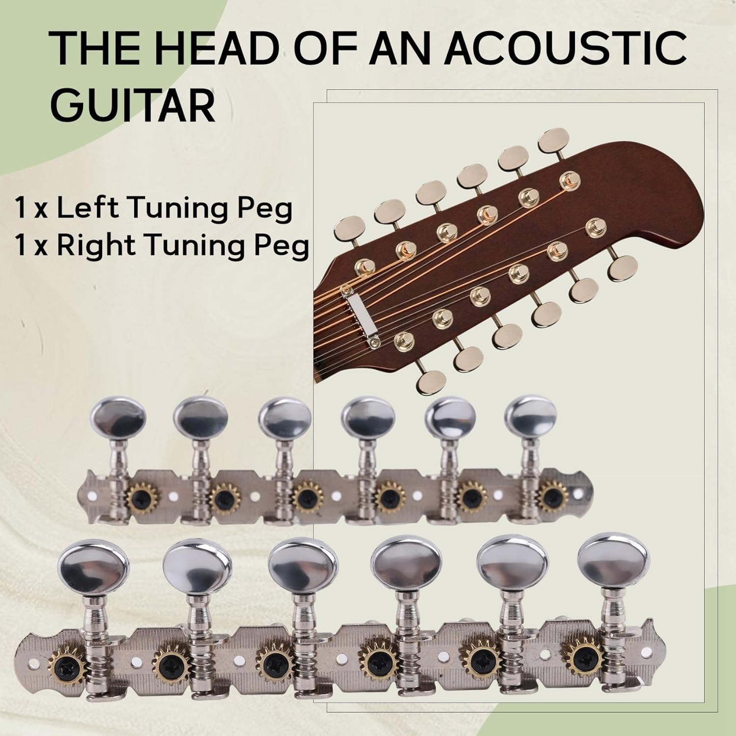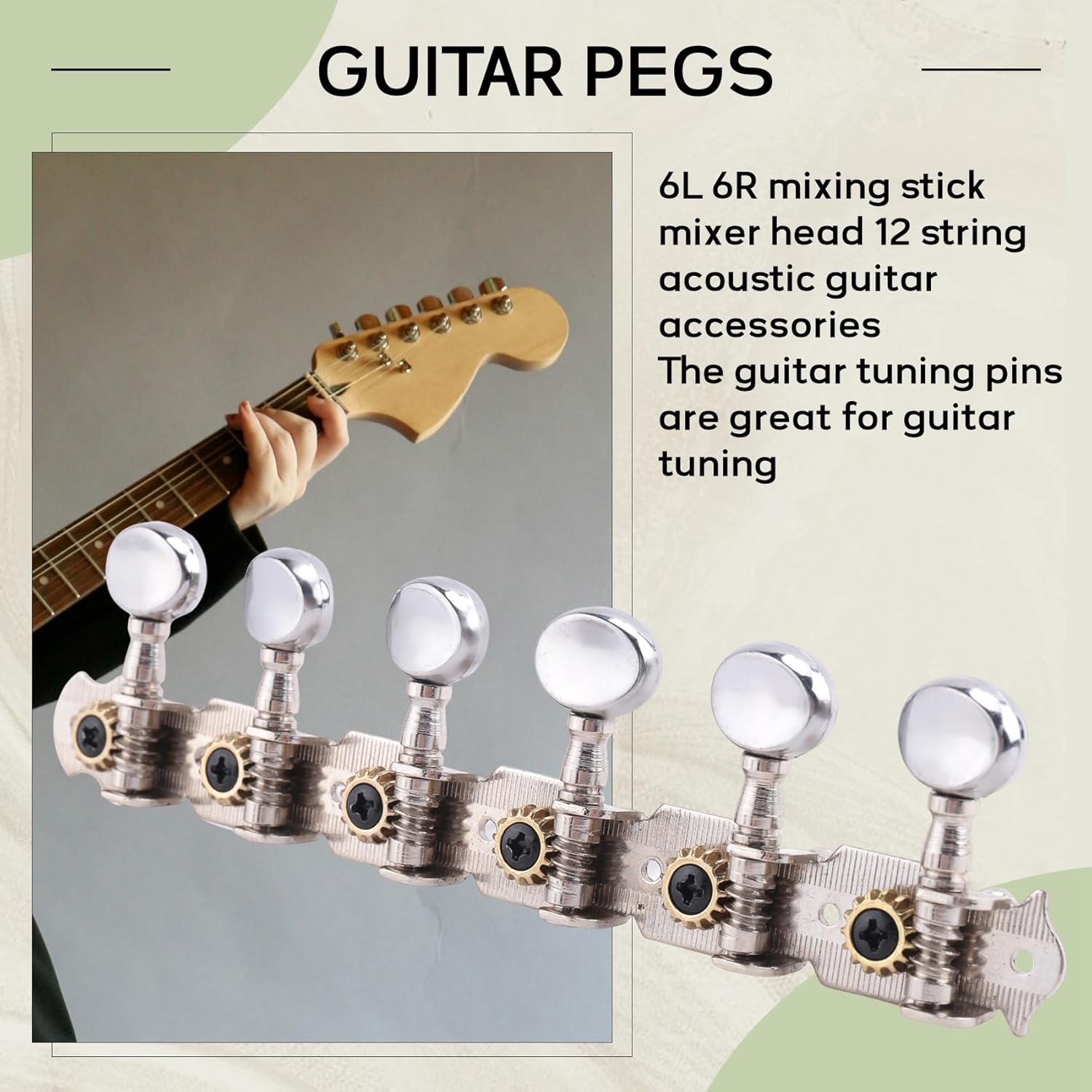 Descrizione: 6 pin su un tabellone, a sinistra e a I perni di accordatura della chitarra sono ottimi per l'accordatura della chitarra Un set di meccaniche per chitarra acustica a 12 corde