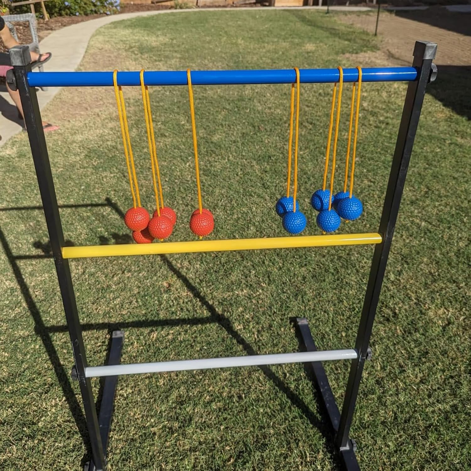 Facile da installare e smontare, da trasportare Composto da componenti di buona qualità e progettato per resistere a vento e pioggia per luoghi all'aperto come cortili, spiaggia, aggiungendo divertimento e interazione Questo set di stand per equitazione con palline, adatto per intrattenimento all'aperto Adatto per famiglie, riunioni di amici, attività di team building aziendale e appassionati di giochi all'aperto di varie età