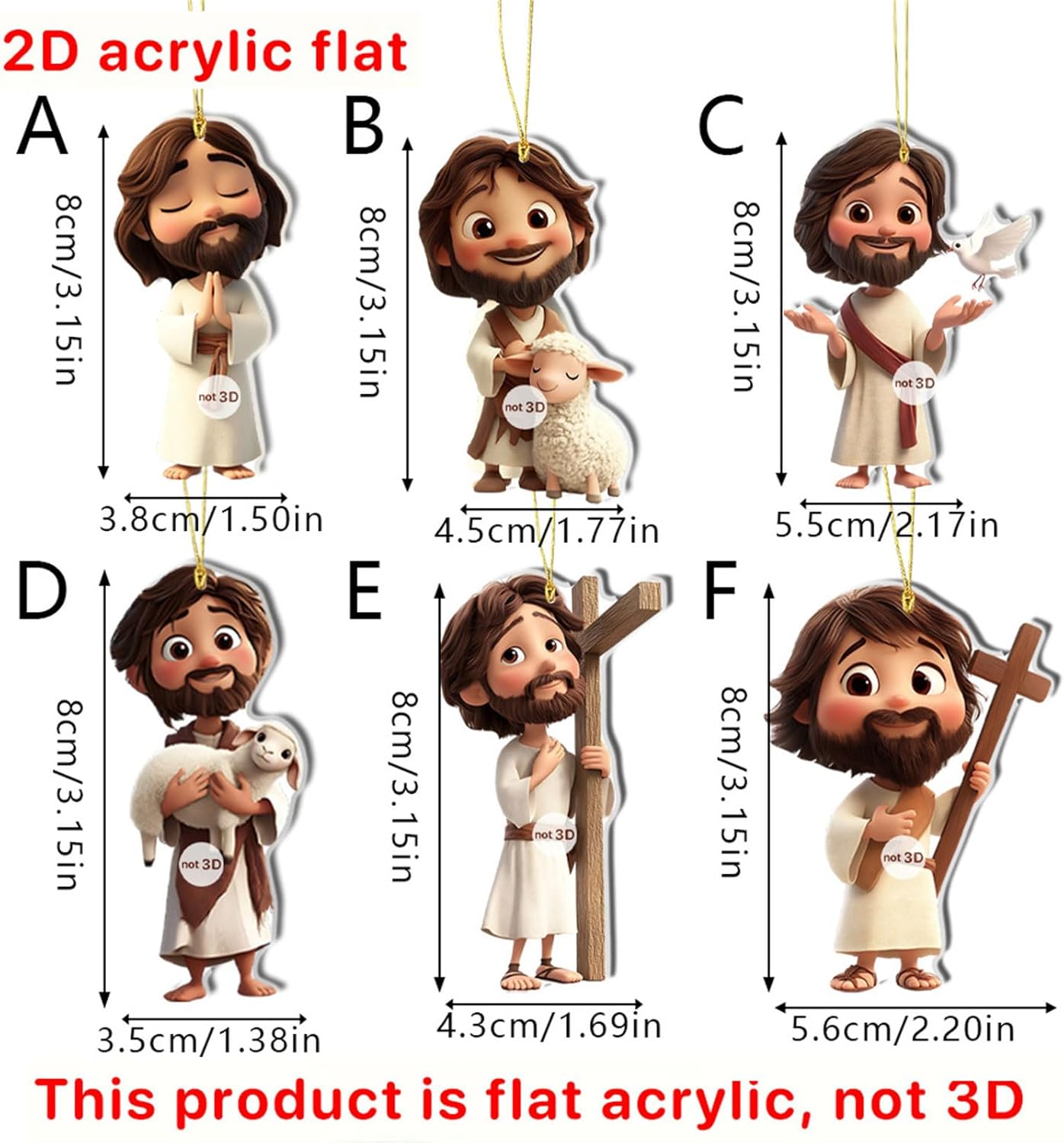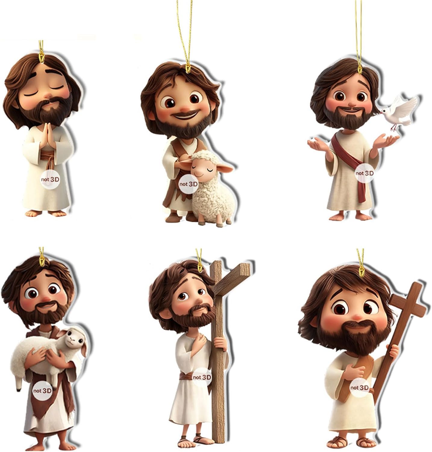Realizzato in acrilico, questo set di 6 statuette religiose 2D da appendere presenta intricati disegni tagliati 2D che mescolano fascino religioso con eleganza contemporanea per la decorazione religiosa Ampiamente usato per decorare pareti, porte, interni auto, pacchetti, celebrazioni religiose e riunioni di festival La decorazione religiosa 2D da appendere con statuetta religiosa completa l'estetica moderna pur mantenendo il suo ruolo di decorazione religiosa duratura della casa Adatto per famiglie, appassionati di decorazioni per le vacanze e collezionisti cerca una decorazione natalizia acrilica significativa, migliorando qualsiasi spazio abitativo Ogni ornamento da appendere alto 8 cm mostra un motivo dettagliato, resistente alla rottura e adatto sia per interni che esterni