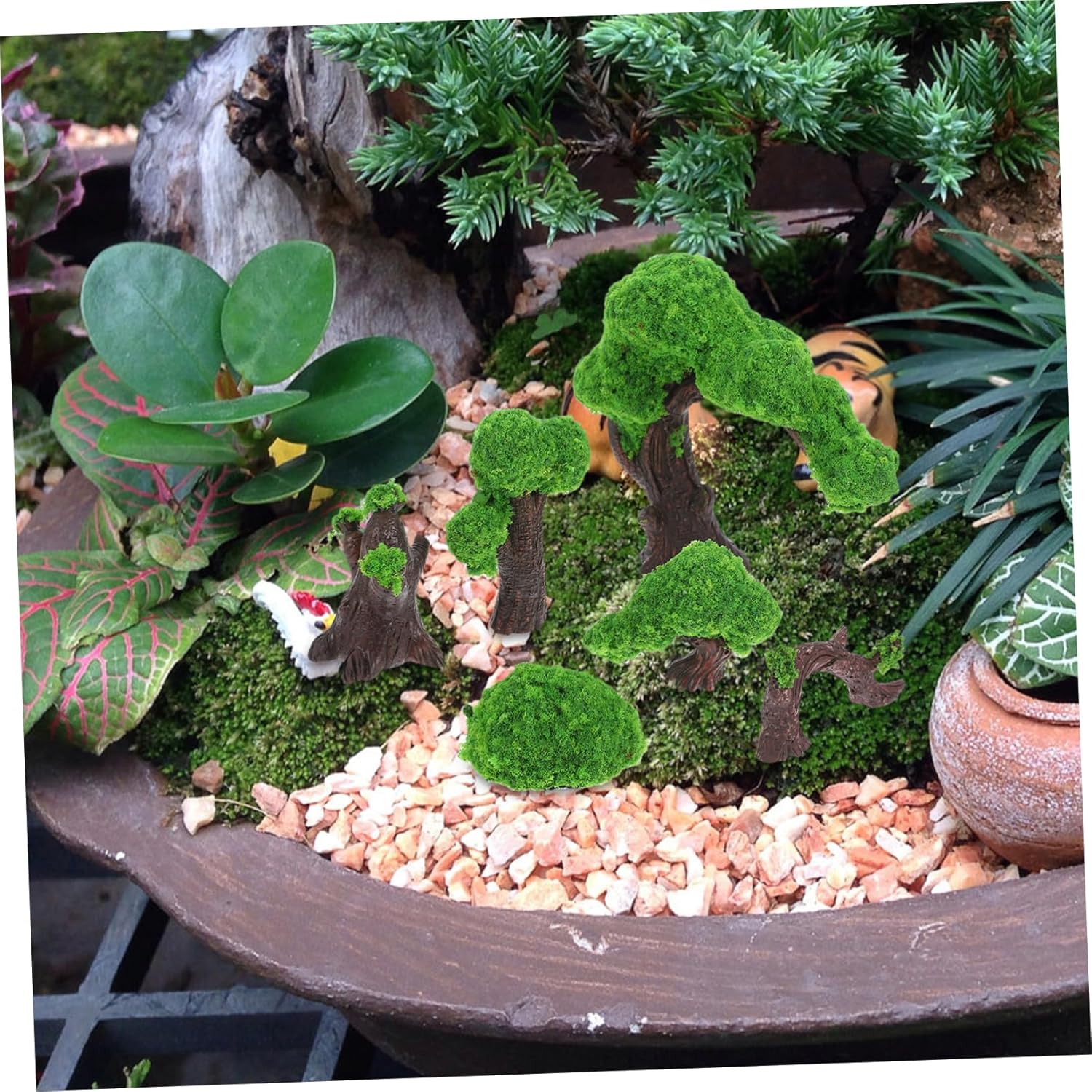 Durevoli e di facile manutenzione: realizzate con materiali robusti, queste decorazioni sono resistenti e facili da pulire, garantendo una bellezza duratura, miniature decorative per terrari, paesaggio arboreo Altamente realistico: gli alberi verdi artificiali e il muschio sono progettati per sembrare incredibilmente realistici, aggiungendo un tocco di ai tuoi paesaggi in miniatura, alberi giocattolo, micropaesaggio in vaso di fiori Applicazioni multiple: ideali per l'uso in terrari, case delle bambole e altri ambienti in miniatura, queste decorazioni sono versatili e adattabili, alberi in miniatura per l'artigianato, accessorio paesaggistico Migliora l'atmosfera naturale: l'aggiunta di questi alberi artificiali e muschio può migliorare significativamente l'atmosfera naturale di qualsiasi spazio, rendendolo più invitante e sereno, piante finte da esterno, giardino della casa delle bambole Micro paesaggio innovativo: queste piante artificiali sono ideali per creare micro paesaggi innovativi, consentendoti di progettare il tuo giardino in miniatura, mini pini per la decorazione, decorazioni paesaggistiche in miniatura