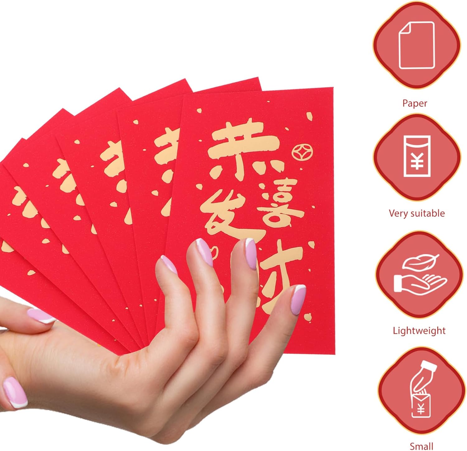 Grandi dimensioni: le buste rosse possono contenere più banconote senza piegarle, rendendole più comode da usare, migliorando l'eleganza generale, pacchetto rosso di capodanno, buste per soldi Carta spessa: le buste portadenaro fortunate sono realizzate in carta spessa, che garantisce una conservazione sicura e una maggiore durata, piccole buste, tasca portadenaro rossa Buste cinesi per denaro: possono permetterti di mettere dentro un po' di denaro, piccoli gioielli, piccoli biglietti di auguri e così via in modo più sicuro, regalando al destinatario una sorpresa, buste rosse Busta rossa: progettata con un motivo unico per il anno, le buste rosse aggiungono all'atmosfera festosa della vacanza, buste del capodanno lunare Festeggia il anno: il design a tema capodanno è pensato appositamente per celebrare il anno e queste buste rosse sono un must per il capodanno lunare, borsa portafortuna, di capodanno
