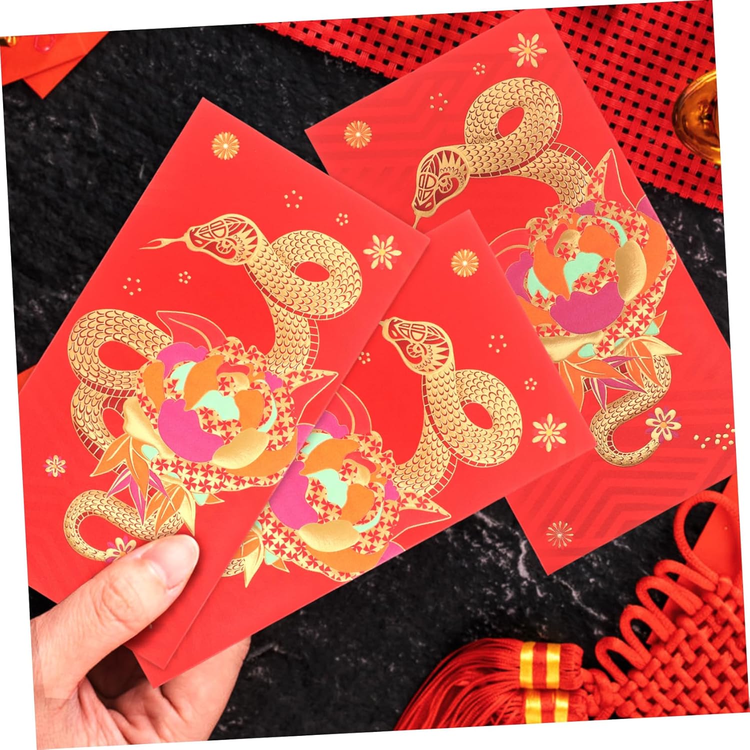 Tema dell'anno del serpente: queste buste rosse presentano il tema dell'anno del serpente, in con le tradizioni cinesi e migliorando l'atmosfera festosa del festival di . Comodo set: il set include più buste rosse, facilitando la distribuzione durante le varie celebrazioni e assicurandoti di averne abbastanza per tutte le tue esigenze Uniche ed eleganti: queste buste rosse di Capodanno mettono in mostra il tuo stile unico e fanno un'impressione memorabile su coloro che le ricevono Materiale cartaceo: realizzate in carta, queste buste offrono una piacevole esperienza tattile, garantendo la sicurezza del contenuto Uso multiuso: oltre a contenere denaro, queste buste possono servire come elementi decorativi, offrendo molteplici usi per diverse occasioni