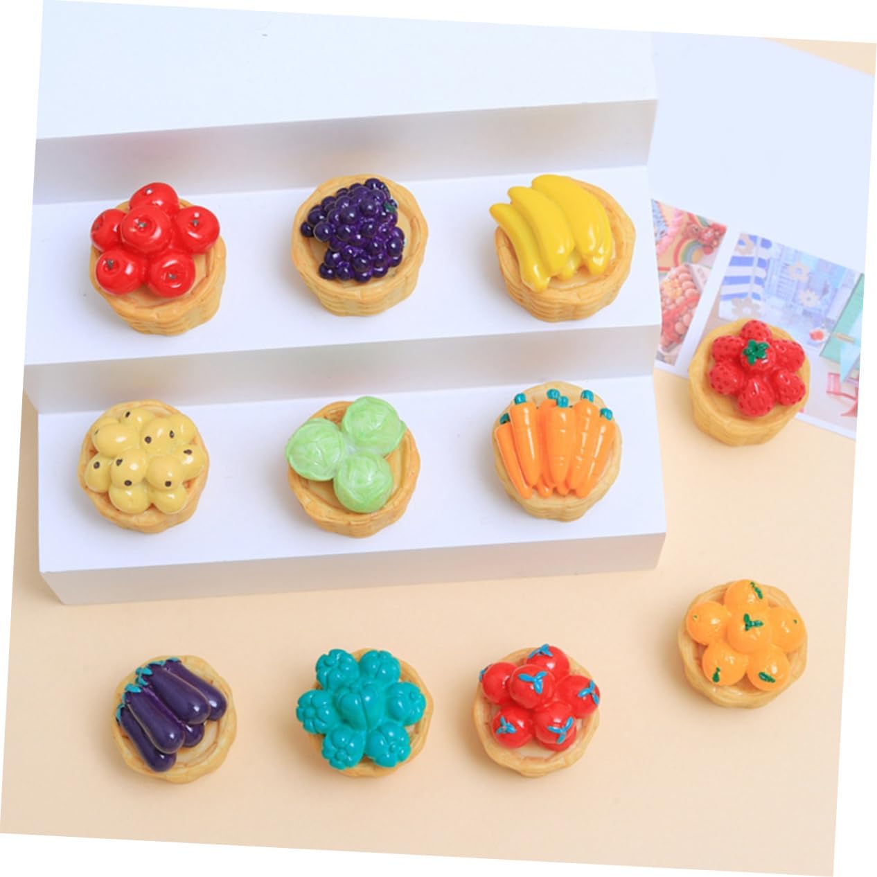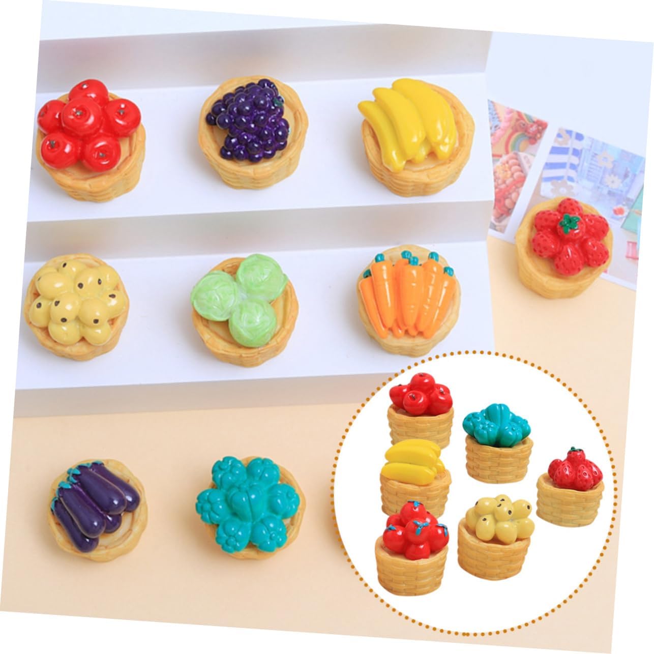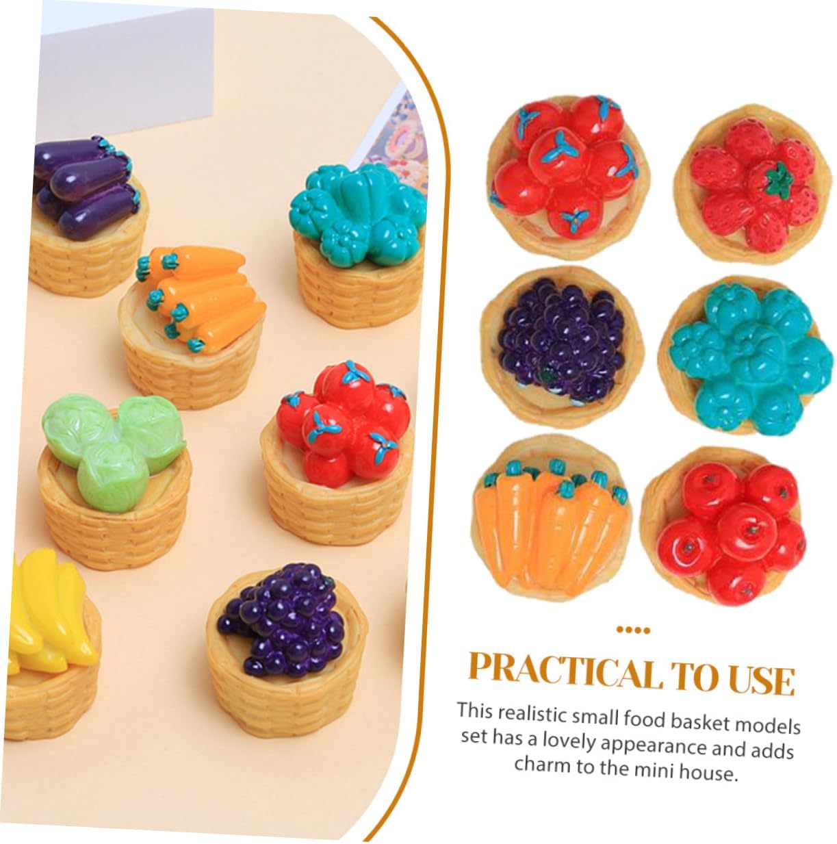Mini cesto di frutta: leggero e di piccole dimensioni, il set di cestini è facile da riporre e posizionare senza occupare molto spazio, decorazioni di verdure in miniatura Ornamento di verdure per la casa in miniatura: pregevole fattura e aspetto realistico, e questo piccolo cestino e cibo possono attirare l'attenzione degli adolescenti, ornamenti per cesto di frutta in miniatura Modello di cestino: cibo creativo in miniatura con decorazioni di cestini per micro paesaggi sono accessori realistici e realistici per un cestino adorabile e fai da te Mini verdure: questi squisiti e realistici accessori per la casa delle bambole di verdure sono decorativi per creare splendido paesaggio in miniatura, modello di cesto di frutta in mini casa Cestino in miniatura per casa delle bambole: la versatilità di questi modelli di cartoni animati consente loro di essere utilizzati in un'ampia di ambienti, case agli uffici, aggiungendo fascino e carattere a qualsiasi , modello di cestino mini