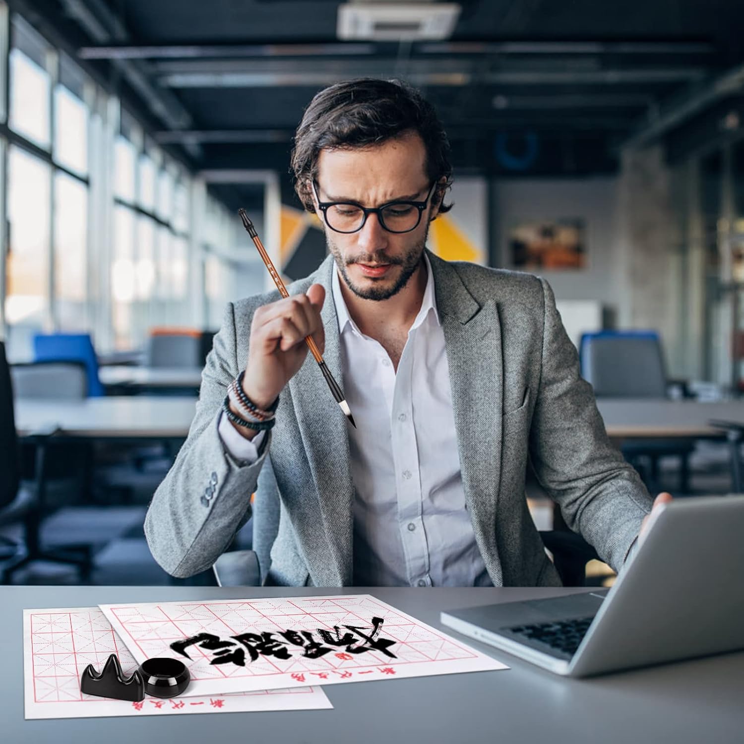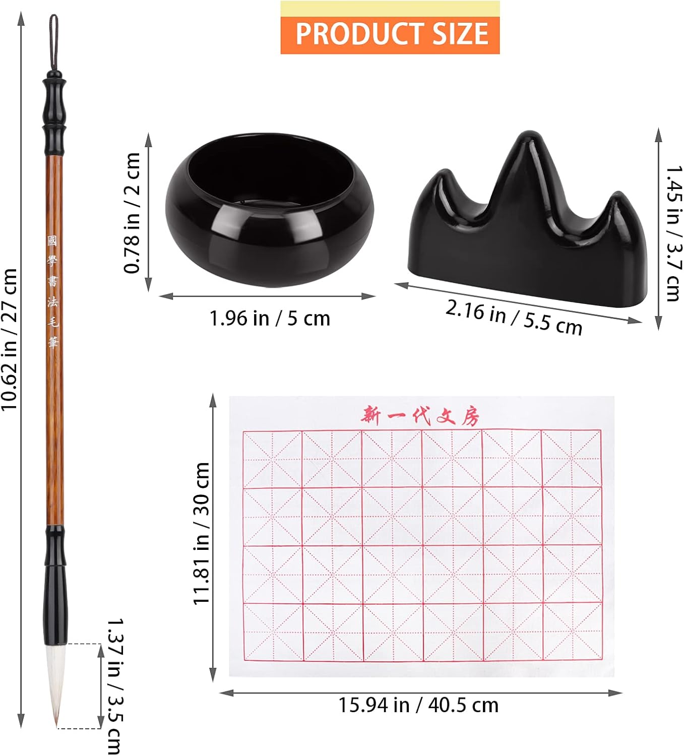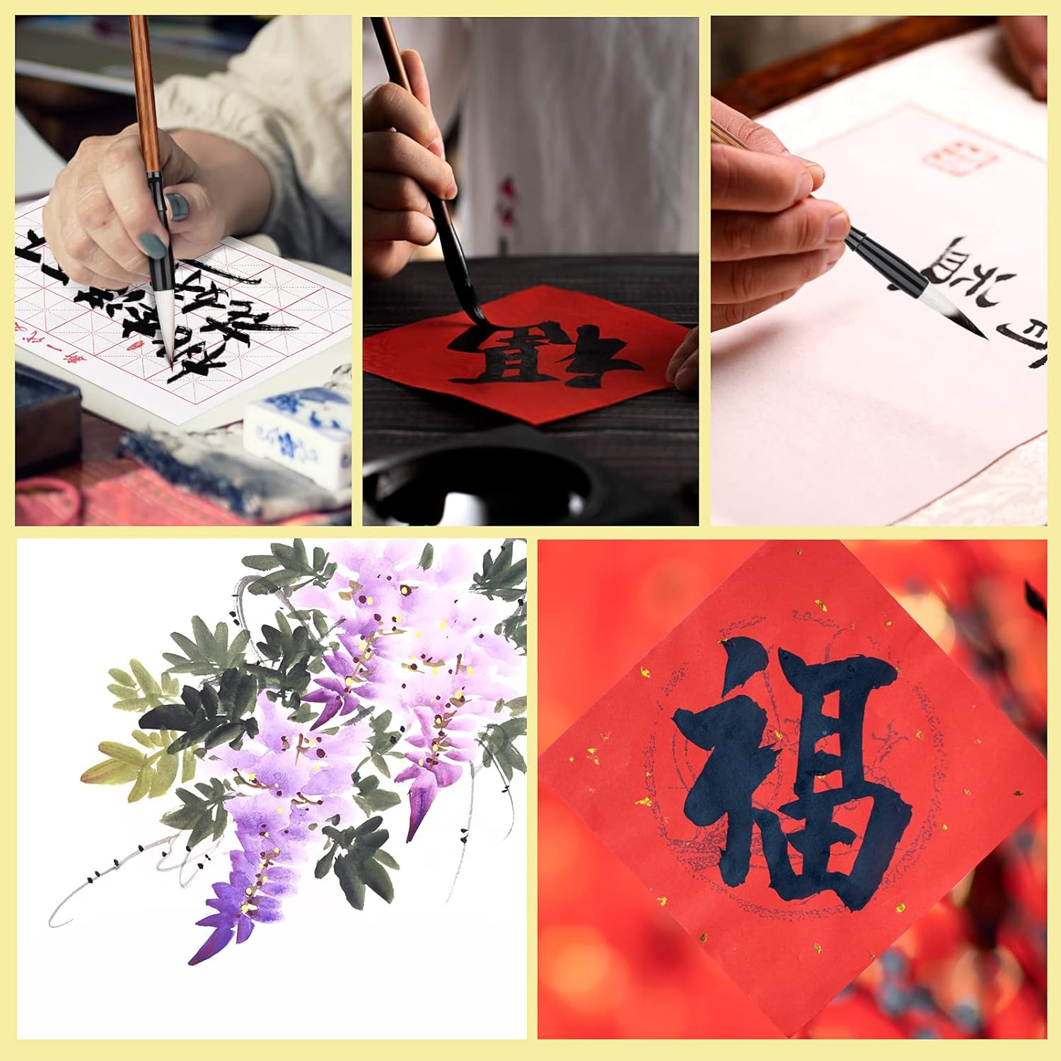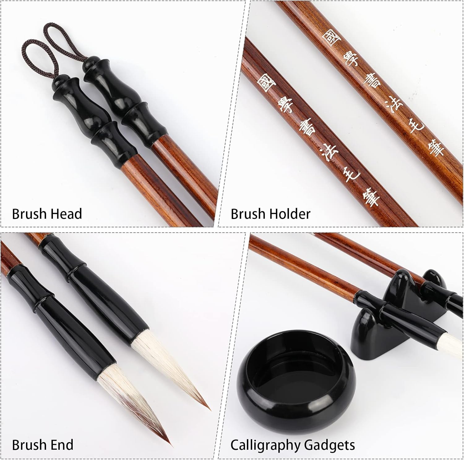 Set di Pennelli per Calligrafia da 6 Pezzi - Include 2 pennelli Jianhao, 1 pietra per inchiostro, 1 montagna di penna e 2 panni per scrivere ad acqua. I pennelli Jianhao hanno la morbidezza del pelo di lupo e della lana. Sia rigidità che morbidezza, la durezza appropriata rende la punteggiatura paffuta e rotonda e rende la tua scrittura più fluida. Il pennello può essere immerso in acqua per ripetere la pratica della calligrafia sul panno per scrivere ad acqua Pennello per Calligrafia Multifunzionale - Il pennello per calligrafia cinese non è adatto solo a principianti e professionisti per esercitarsi con caratteri cinesi, scrittura di sigilli, script in esecuzione, script ufficiale, corsivo e script normale, ma anche per artisti da utilizzare nella pittura cinese freestyle o professionale Coltiva il tuo Sentimento - La pittura e la pratica della calligrafia favoriscono gli amanti della pittura e della calligrafia professionisti o dilettanti per migliorare la loro personalità e il livello artistico e coltivare qualità meticolose, concentrate, calme e durature. Le nostre tute per calligrafia di alta qualità ti aiutano a perseguire un livello di sviluppo più elevato Ottima Fattura - Le setole dei nostri pennelli non cadono facilmente e la superficie del manico della spazzola è liscia. Il pennello ha una durezza moderata, una forte capacità di assorbimento dell'inchiostro, punteggiatura piena e rotonda, che consente di scrivere e disegnare facilmente. Non compaiono tagli o calli anche quando si dipinge o si scrive a lungo Eccellenti Idee Regalo - I pennelli artistici con caratteri cinesi Pwsap sono un ottimo regalo per chi ama la calligrafia e la pittura come famiglia, amici, colleghi o compagni di classe. Non solo può esprimere il tuo amore e supporto per i loro hobby, ma anche aiutarli a migliorare le loro capacità di scrittura calligrafica o abilità di pittura