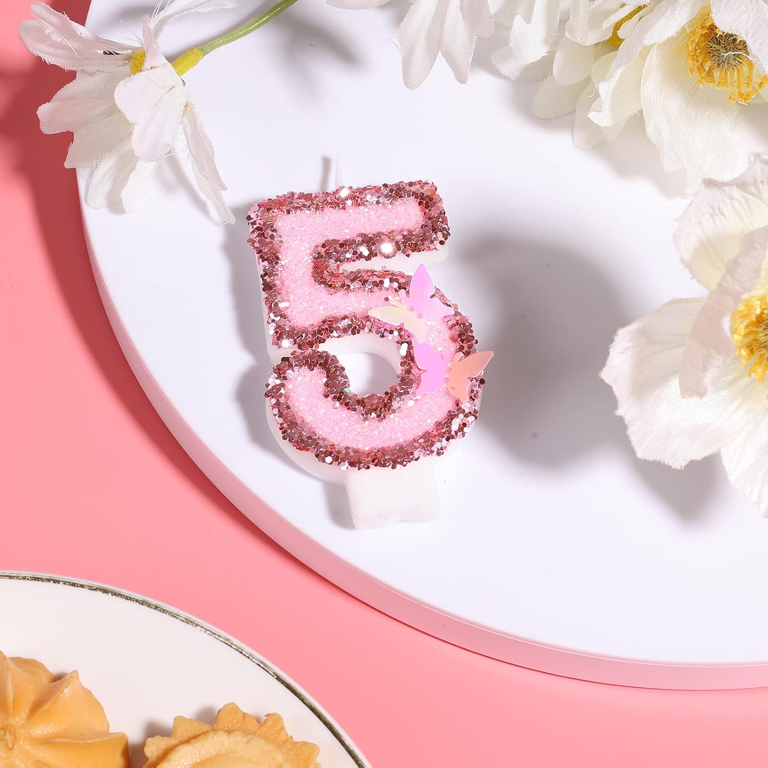 Design Elegante: Candele decorate con numeri glitterati in rosa, perfette per festeggiare compleanni e anniversari Materiali di Qualità: Realizzate in cera, queste candele garantiscono una combustione duratura e sicura Ideali per Torte di Compleanno: Con un diametro di 7,5 cm, queste candele sono perfette per decorare le torte di compleanno Senza Odore: Le candele non hanno profumo, permettendo ai sapori del tuo dolce di rimanere il protagonista della festa Decorazioni a Farfalla: Le candele sono decorate con eleganti motivi a farfalla, aggiungendo un tocco di fascino alla tua celebrazione