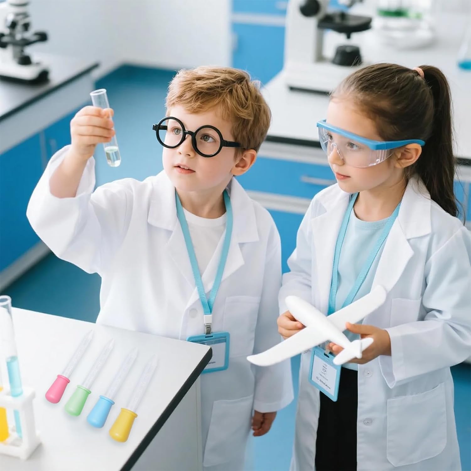 Descrizione prodotto La confezione include: 1 x Costume da Scienziato Bambini 4 x contagocce liquido 1 x Occhiali 1x carta di lavoro Avviso di sicurezza no