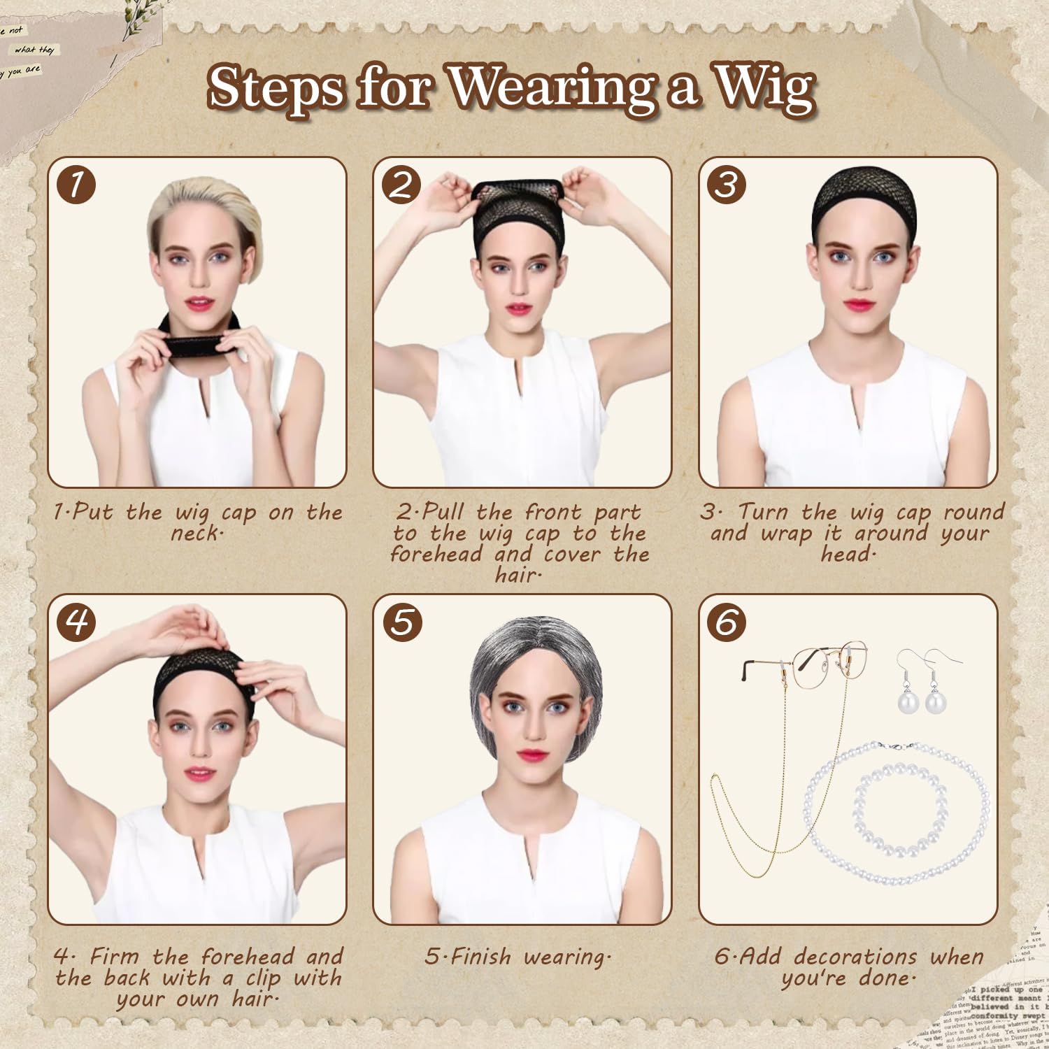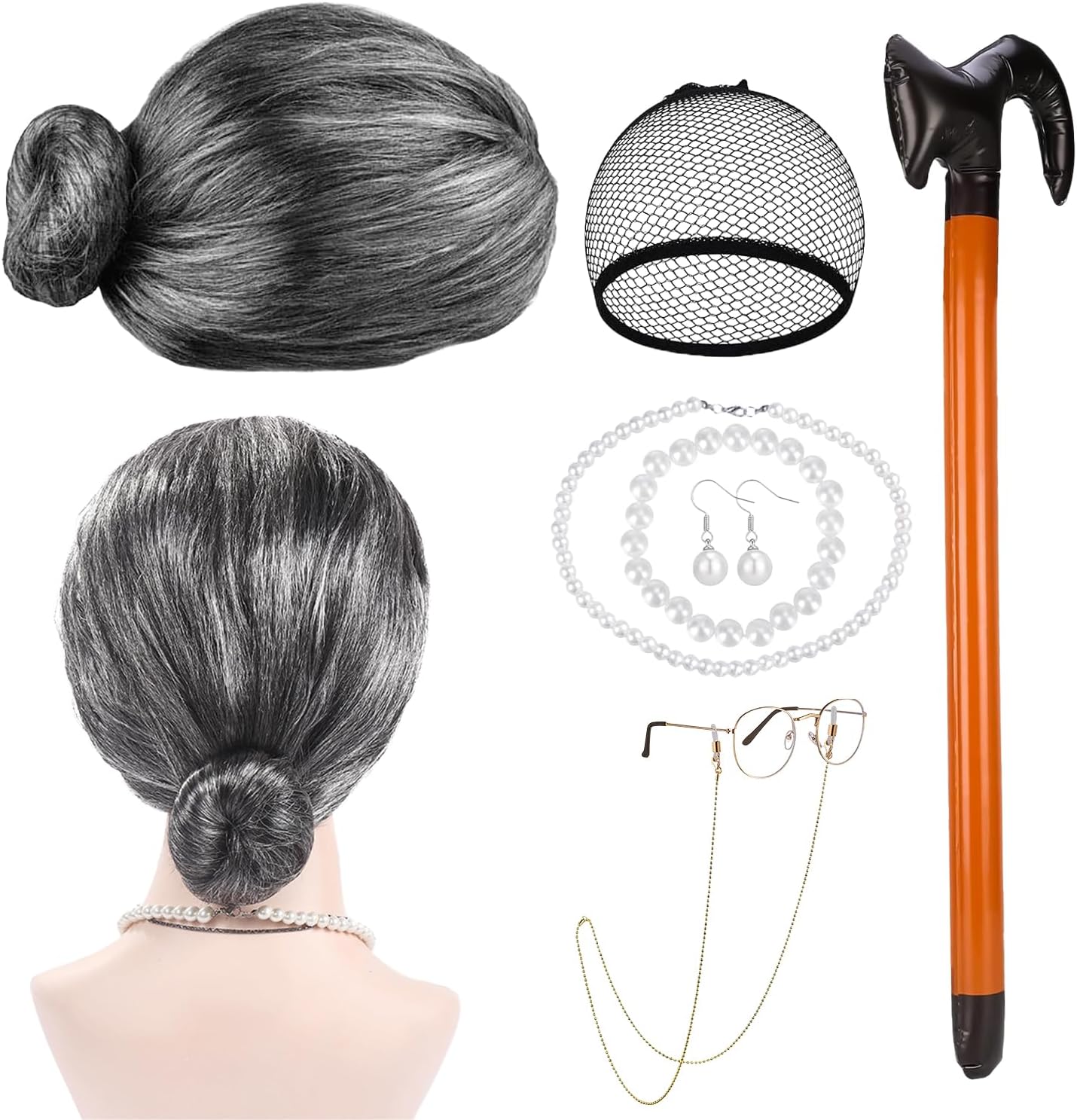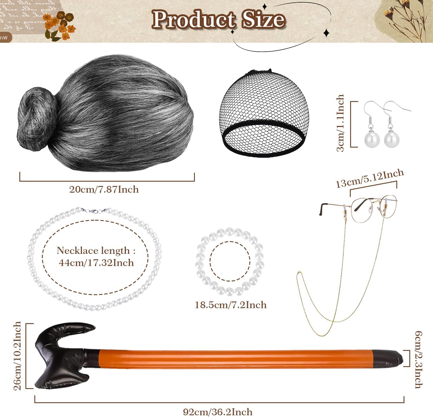 Descrizione prodotto Descrizione del prodotto: Set per vestire la vecchia signora: - Adatto alla maggior parte delle taglie per adulti, si adatta a una varietà di personaggi. - Puoi abbinarlo al tuo costume, cambiare istantaneamente il tuo aspetto e migliorare il tuo senso di età indossando e. - Ottimo come regalo per i tuoi amici che amano i giochi di ruolo! Specifiche del prodotto: Colore: bianco, grigio Materiale: fibra sintetica, poliestere Dimensioni: come mostrato nell'immagine Quantità del pacchetto: 1*Occhiali 1*Catena per occhiali 1*Parrucca 1*Set di capelli a rete 1*Collana di perle 1*Bracciale di perle 1*Orecchini di perle 1*Schiaccia Indicazioni Indossare la parrucca: 1. Prepara i capelli naturali legandoli o arrotolandoli in una crocchia bassa. 2. Posiziona la rete elastica della parrucca sulla testa, assicurandoti che copra interamente i capelli naturali. 3. Avvolgi la parrucca intorno alla testa, assicurandoti che la rete elastica sia ben tesa. 4. Regola la tensione della rete elastica utilizzando la chiusura a strappo. 5. Per la cura e lo stile, si consiglia di utilizzare prodotti per parrucche e seguire le istruzioni del produttore. La pulizia regolare e la conservazione adeguata possono contribuire a prolungare la durata della parrucca.