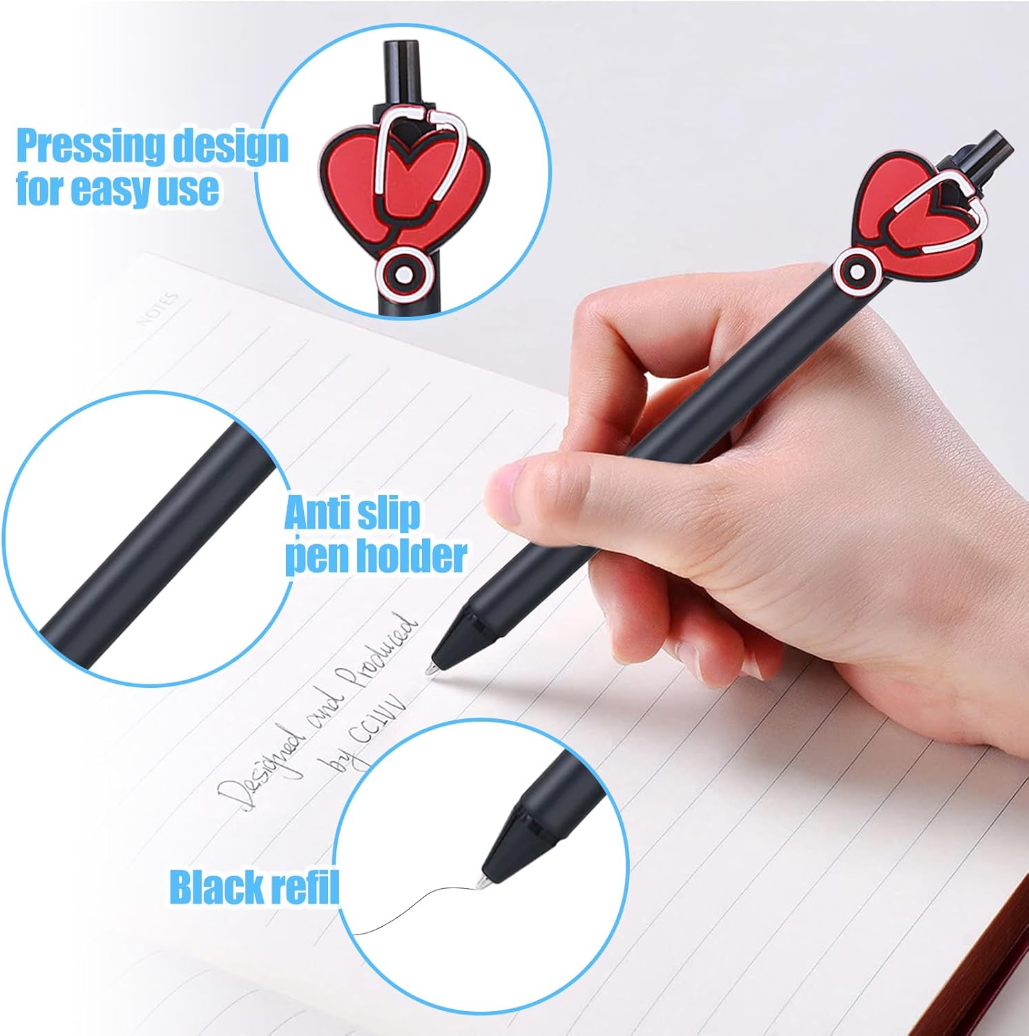 【Carine Penne da Infermiera】Riceverai penne nero con 7 design diversi, tra cui un'ambulanza, un termometro, pillole, uno stetoscopio cardiaco, un quaderno, un'uniforme da infermiera e un medico dello stomaco. Queste penne sono eleganti e colorate, progettate per ispirare divertimento al lavoro o a scuola. La quantità è sufficiente per soddisfare le tue esigenze quotidiane. L'inchiostro delle 7 penne è tutto nero! 【Comodo da Usare】Penne a scatto adotta un design ergonomico dell'impugnatura, rendendo ogni penne nero facile da impugnare, consentendoti di mantenere la migliore postura di presa della penna e di scrivere con un'eccellente sensazione della mano. penne a sfera è abbastanza leggero da consentirti di scrivere per ore senza che le tue mani si stanchino. 【Scrittura Fluida】I nostri penna a sfera sono a punta fine da 0,5 mm, punta a sfera liscia, piccola resistenza alla scrittura, carattere chiaro, quindi puoi usarli per tutti i tuoi lavori di scrittura. penne gel non penetrerà o macchierà la carta, durevole e affidabile, puoi usarlo per molto tempo. 【Design Pratico】Questo penne nere è progettato per l'uso quotidiano ed è retrattile, quindi non devi preoccuparti di perdere la copertura. penna nera ha una clip da tasca che può essere facilmente agganciata a una tasca della camicia, un blocco note o un blocco per appunti, rendendolo comodo da usare in qualsiasi momento. 【Regalo Ideale】Queste penne sono regali perfetti per gli operatori sanitari, siano essi studenti in campo medico o infermieri e dottori, queste penne aggiungono un tocco di divertimento e personalità agli appunti quotidiani, alla compilazione di moduli, ecc. Le nostre esclusive penna possono aiutarti a mostrare il tuo apprezzamento e rispetto per il loro duro lavoro.