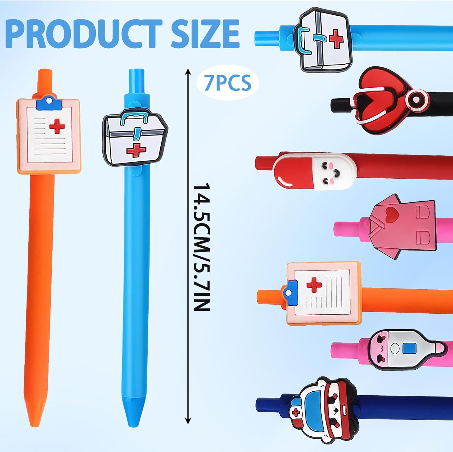【Materiale di Alta Qualità】: Le nostre penna dell'infermiera sono realizzate in plastica robusta,non si danneggiano facilmente e non si piegano,la penna non è pesante ed è molto comoda con cui scrivere.la ricarica della penna è composta da una ricarica di inchiostro neutro da 0,5 mm.la testa della penna adotta una struttura a sfera,che può controllare il deflusso dell'inchiostro,rendendo la scrittura più stabile e fluida. 【Caratteristiche del Prodotto】: Penne gel nere all'immagine di un'infermiera,la penna ha 7 design diversi,tra cui vestiti da infermiera,pillole morbide,scatola per medicinali a forma di croce,termometro auricolare,taccuino,ambulanza e stetoscopio infermieristico.La forma è carina e giocosa,più interessante delle normali penne.L'inchiostro delle 7 penne è tutto nero,sufficiente per soddisfare le tue esigenze quotidiane. 【Colori Vivaci】: Penna a sfera da infermiera è un design creativo di cartoni animati,che utilizza colori caramelle luminosi e tenui,come rosa,blu,rosso,ecc.,che danno alle persone una sensazione di calore,cura e guarigione.Questi colori non solo si abbinano al tema carino,ma portano anche un piacevole piacere visivo e alleviano lo stress durante lo studio o il lavoro. 【Penna Multifunzione】: Questa penne per infermiere è una penna a pulsante,che può estendere il nucleo della penna con una singola pressione,può proteggerlo da danni esterni.Il design a clip della punta della penna consente di agganciare facilmente la penna a libri,quaderni e tasche ed è possibile accedervi sempre e ovunque senza preoccuparsi che la penna cada o venga persa. 【Scenari Applicabili】: Il nostro penne da infermiera carine è perfetto come materiale scolastico,premi in classe,regali di compleanno,regali scolastici,regali per infermieri,regali per infermieri,regali per infermieri.Il suo aspetto carino è adatto anche come regalo per amici,familiari o colleghi per esprimere il tuo amore e le tue benedizioni.