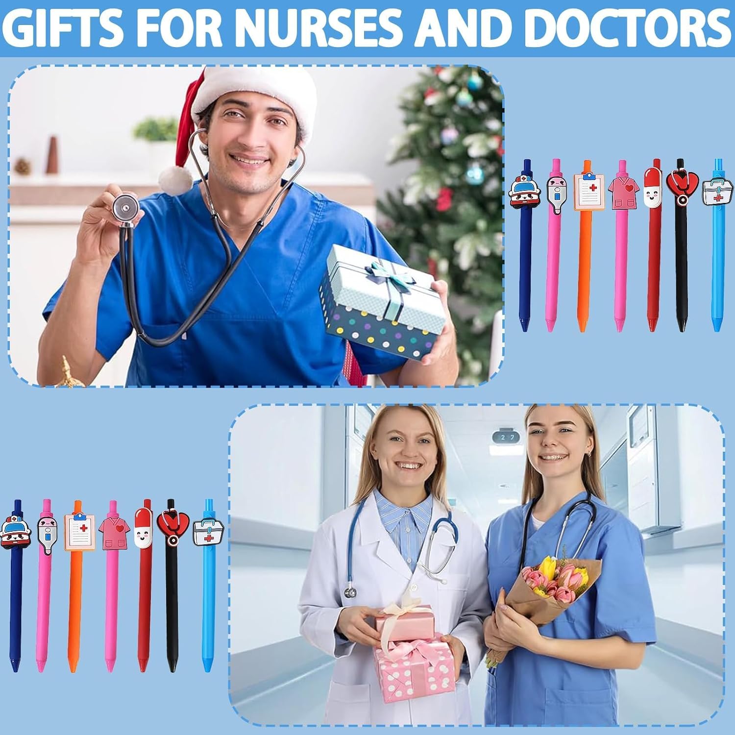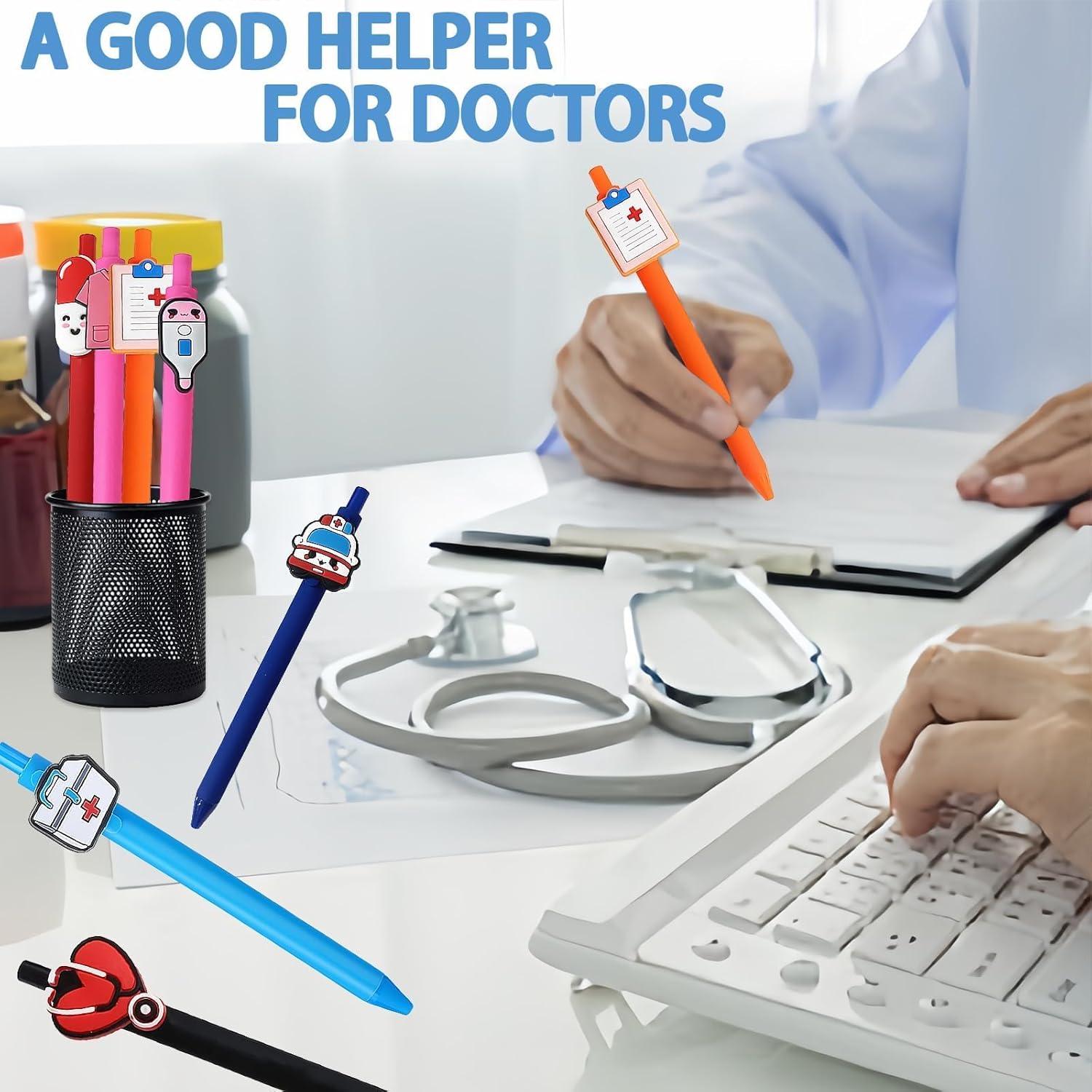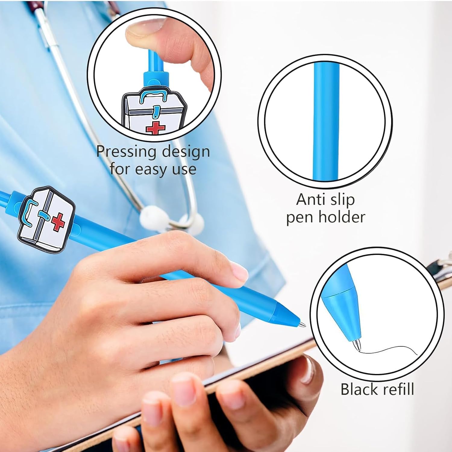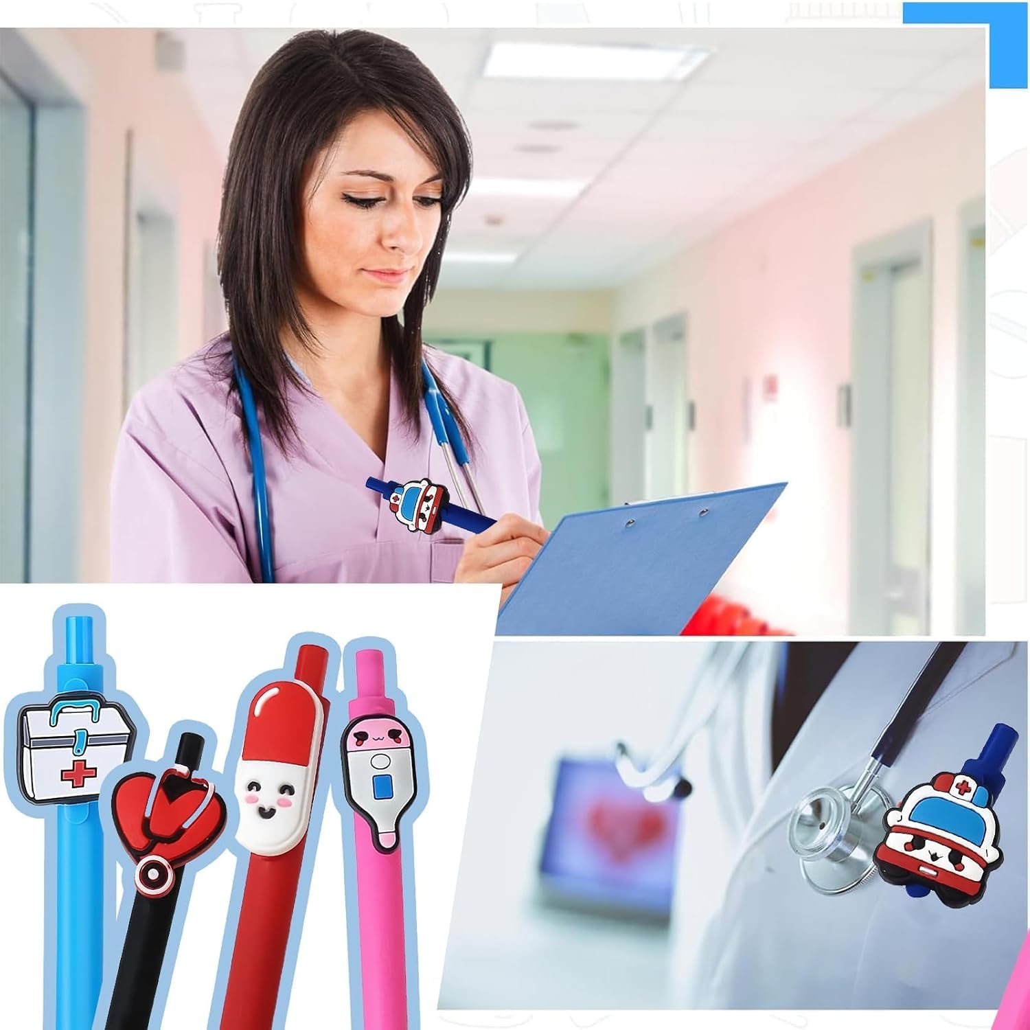 Materiale di Alta Qualità: Le nostre penna dell'infermiera sono realizzate in plastica robusta,non si danneggiano facilmente e non si piegano,la penna non è pesante ed è molto comoda con cui scrivere.la ricarica della penna è composta da una ricarica di inchiostro neutro da 0,5 mm.la testa della penna adotta una struttura a sfera,che può controllare il deflusso dell'inchiostro,rendendo la scrittura più stabile e fluida. Caratteristiche del Prodotto: Penne gel nere all'immagine di un'infermiera,la penna ha 7 design diversi,tra cui vestiti da infermiera,pillole morbide,scatola per medicinali a forma di croce,termometro auricolare,taccuino,ambulanza e stetoscopio infermieristico.La forma è carina e giocosa,più interessante delle normali penne.L'inchiostro delle 7 penne è tutto nero,sufficiente per soddisfare le tue esigenze quotidiane. Colori Vivaci: Penna a sfera da infermiera è un design creativo di cartoni animati,che utilizza colori caramelle luminosi e tenui,come rosa,blu,rosso,ecc.,che danno alle persone una sensazione di calore,cura e guarigione.Questi colori non solo si abbinano al tema carino,ma portano anche un piacevole piacere visivo e alleviano lo stress durante lo studio o il lavoro. Penna multifunzione: Questa penne per infermiere è una penna a pulsante,che può estendere il nucleo della penna con una singola pressione,può proteggerlo da danni esterni.Il design a clip della punta della penna consente di agganciare facilmente la penna a libri,quaderni e tasche ed è possibile accedervi sempre e ovunque senza preoccuparsi che la penna cada o venga persa. Scenari applicabili: Il nostro penne da infermiera carine è perfetto come materiale scolastico,premi in classe,regali di compleanno,regali scolastici,regali per infermieri,regali per infermieri,regali per infermieri.Il suo aspetto carino è adatto anche come regalo per amici,familiari o colleghi per esprimere il tuo amore e le tue benedizioni.