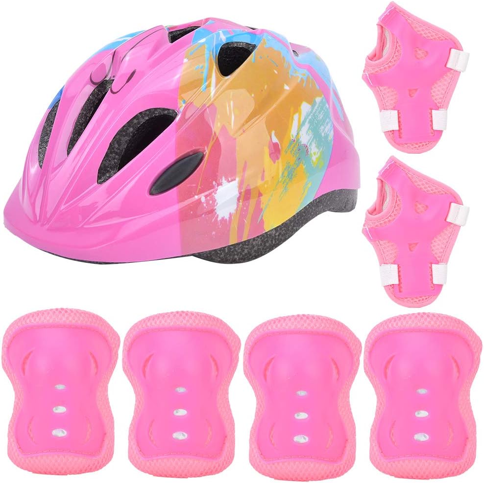 [Design elegante] Presenta colori vivaci e motivi raffinati per un look alla moda fornendo allo stesso tempo una sicurezza ottimale per i bambini. [Protezione di Garantisce sicurezza durante il ciclismo e il pattinaggio con la fodera in cotone ammortizzante che previene lesioni da urti e graffi. [Protezione articolare] Previene efficacemente la dislocazione articolare e riduce al minimo le lesioni dovute a forti vibrazioni durante il gioco. [Sicurezza a tutto tondo] Protegge gomiti, testa, polsi e ginocchia per bambini dai 3 anni in su, garantendo una protezione completa in varie situazioni all'aperto. [Ammortizzazione migliorata] Riduce gli infortuni e aumenta il comfort, progettato specificamente per attività sicure di ciclismo e pattinaggio.