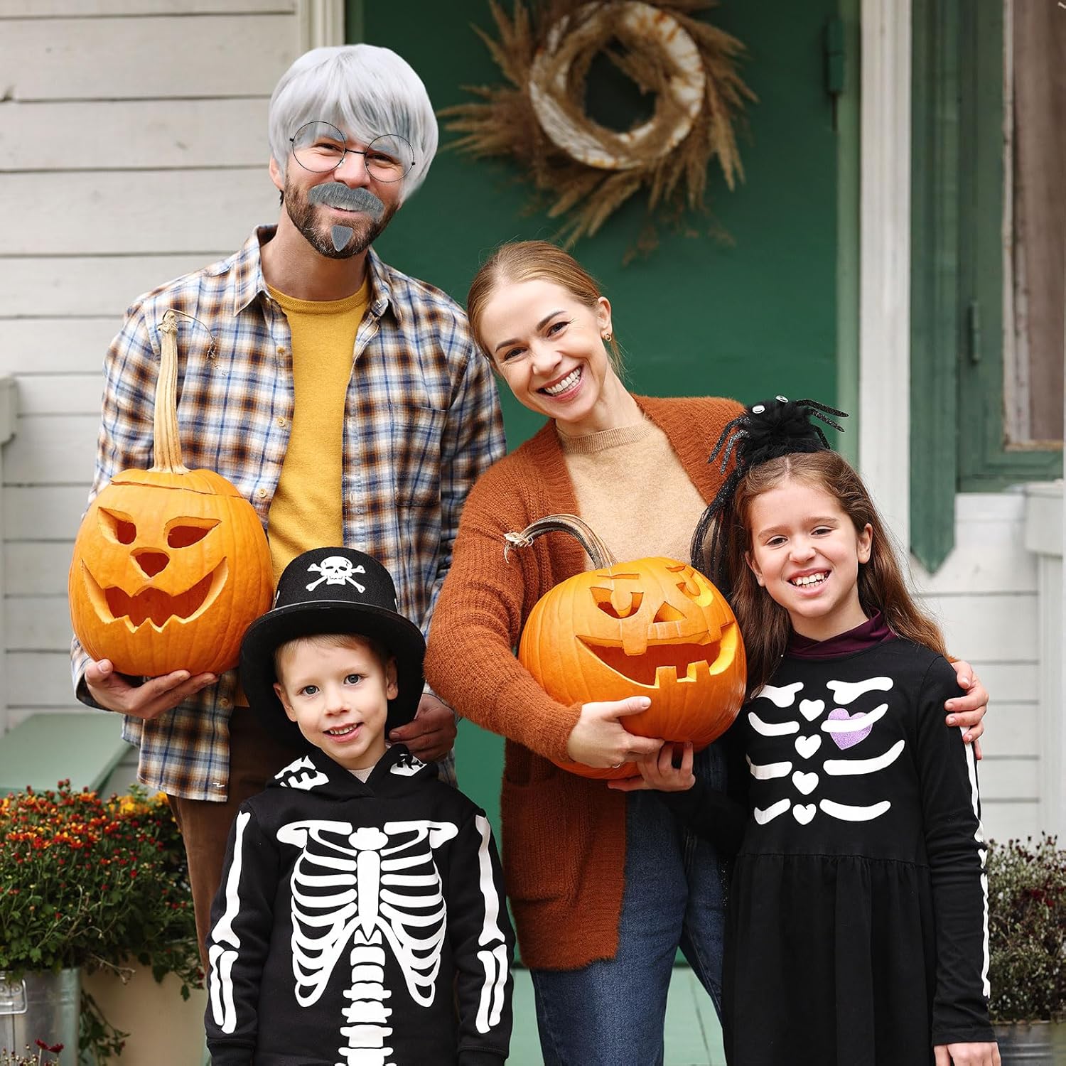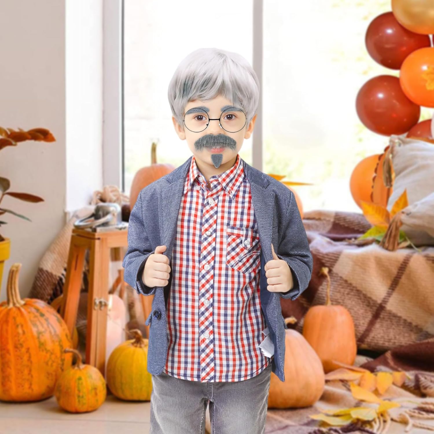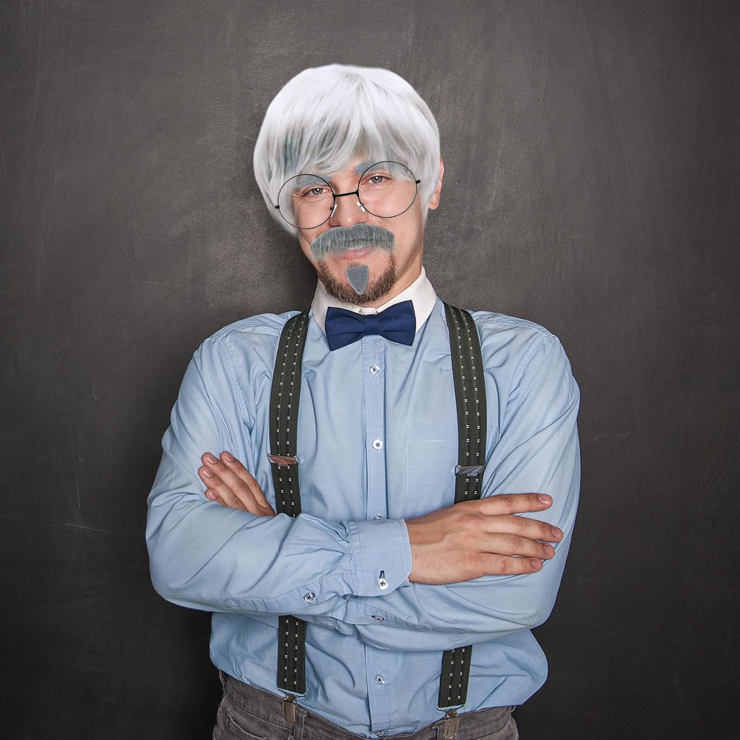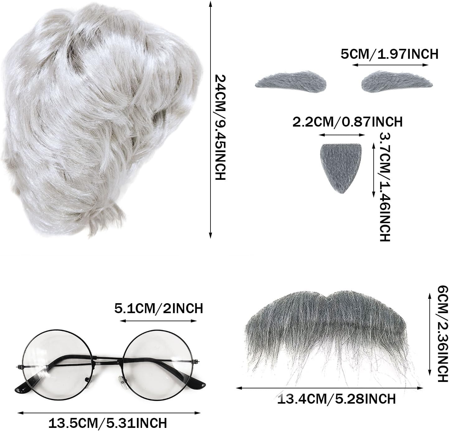 Set di parrucche da uomo: questo set di travestimenti per anziani include una parrucca corta bianca e grigia, barba finta, sopracciglia finte, berretto per parrucca e occhiali. Tutto ciò di cui hai bisogno per trasformarti all'istante in un nonno convincente. Materiale di alta qualità: realizzato in fibra sintetica di alta qualità, con un mix di bianco e grigio, l'acconciatura sembra particolarmente unica. PARRUCCA SQUISITA: la parrucca corta è realizzata con cura per imitare i capelli veri, donando un autentico look da vecchio. Abbinala a barba finta, sopracciglia e occhiali per completare il look da vecchio e aggiungere uno strato extra al tuo outfit da festa in cosplay . Occasioni applicabili: le parrucche del nonno sono perfette per carnevale, Halloween, Natale e altre feste, nonché feste a tema addio al celibato o cosplay. OTTIMO REGALO: il nostro set di abbigliamento per anziani è il regalo perfetto per pensionati, amici e bambini. Prova il divertimento delle attività di cosplay e travestimento per entrare facilmente nel personaggio e rendere ogni festa indimenticabile.