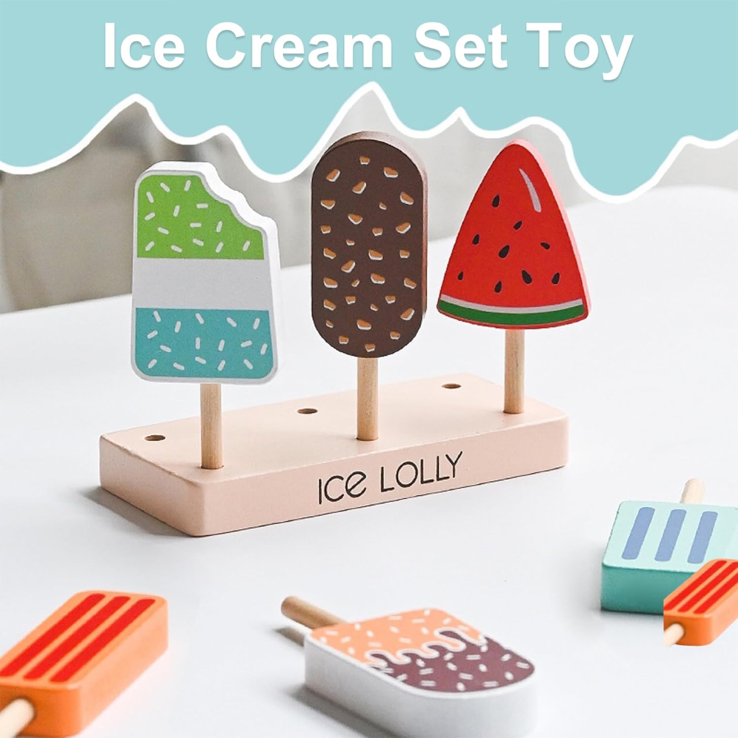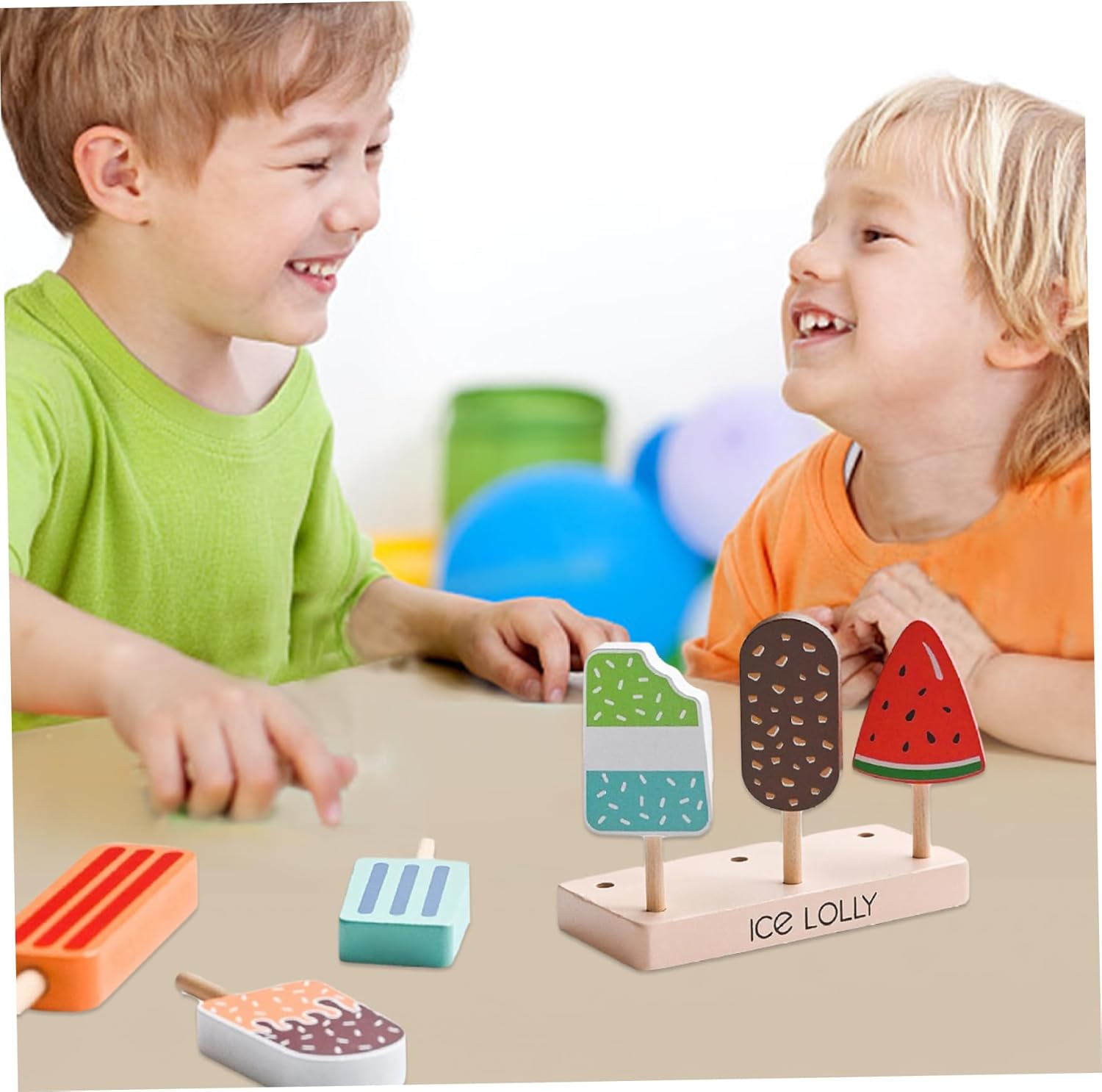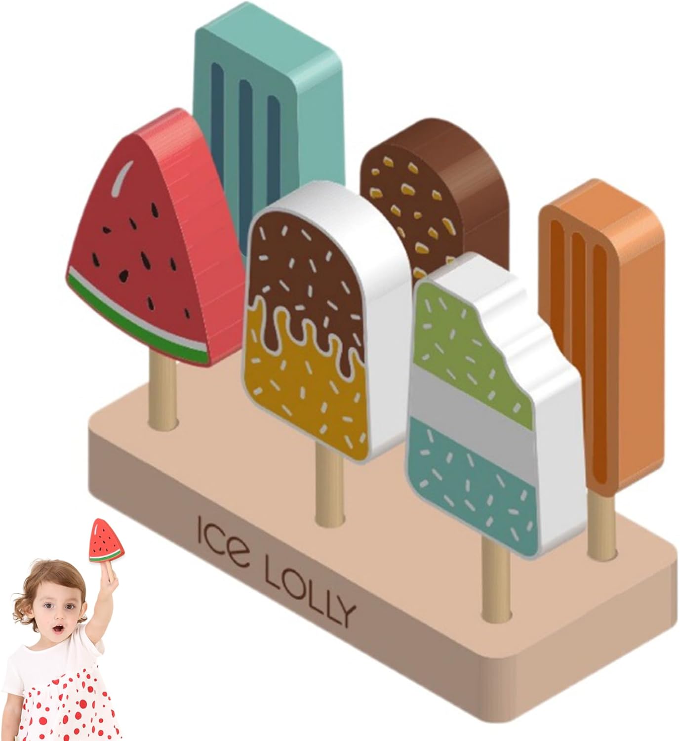 Perfetto per i bambini: ideale per compleanni, vacanze o qualsiasi occasione speciale, questo set da gioco con il gelato è meraviglioso per i bambini piccoli..Incoraggia il gioco fantasioso e sarà sicuramente un successo con ogni bambino. Educativo e divertente: questo set da gioco non solo offre ore di divertimento, ma aiuta anche a sviluppare capacità motorie, coordinazione occhio-mano e abilità sociali mentre i bambini impegnano in scenari di gioco di ruolo. Costruzione in legno: realizzati in legno di qualità, questi giocattoli sono costruiti per durare..Sono robusti, sicuri e progettati per resistere al gioco entusiasta..La finitura liscia garantisce che siano delicati sulle mani dei più piccoli. Colori e forme vivaci: ogni giocattolo ghiacciolo presenta una forma unica e colori vivaci, stimolando l'immaginazione e la creatività del tuo bambino..La varietà garantisce un tempo di gioco coinvolgente e aiuta a riconoscere forme e colori diversi. Pacchetto completo: questo set da gioco per il gelato include 6 coloratissimi giocattoli per ghiaccioli in legno e 1 supporto, offrendo un pacchetto completo per un divertimento di finzione senza fine..Perfetto per i bambini che amano il gioco fantasioso.