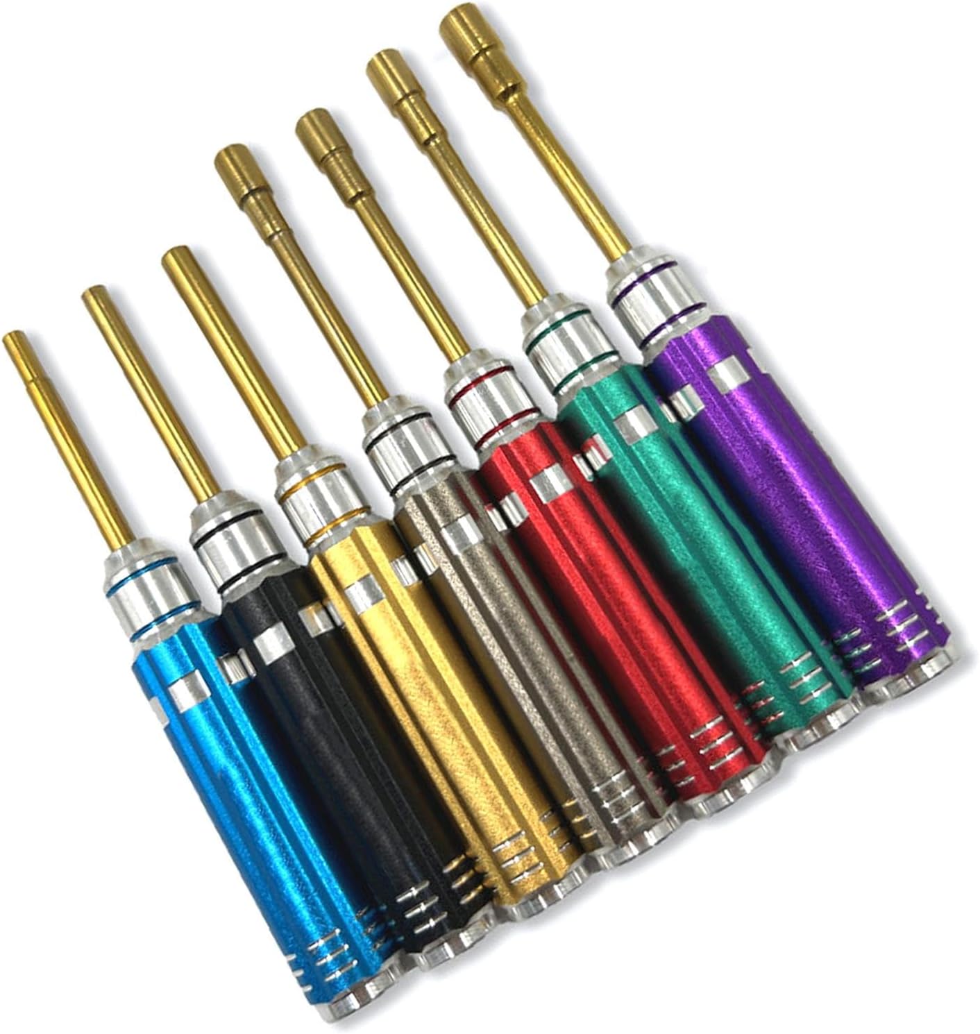 Codifica colore per una facile identificazione: il set è dotato di sette impugnature di colore diverso, ciascuna corrispondente a una dimensione diversa (da 2 mm a 5 mm), rendendo la selezione dell'utensile rapida ed efficiente Perfetto per riparazioni e progetti domestici. aree come riparazioni di dispositivi elettronici Rivestimento rinforzato per una maggiore resistenza: i componenti in acciaio rivestito migliorano la resistenza all'usura e garantiscono un utilizzo prolungato anche in una varietà di condizioni, ideale per esperti e hobbisti Multifunzionale utilizzato in molteplici applicazioni: adatto a una varietà di attività di riparazione nel settore automobilistico, degli elettrodomestici e dell'elettronica uno strumento pratico per appassionati e tecnici esperti