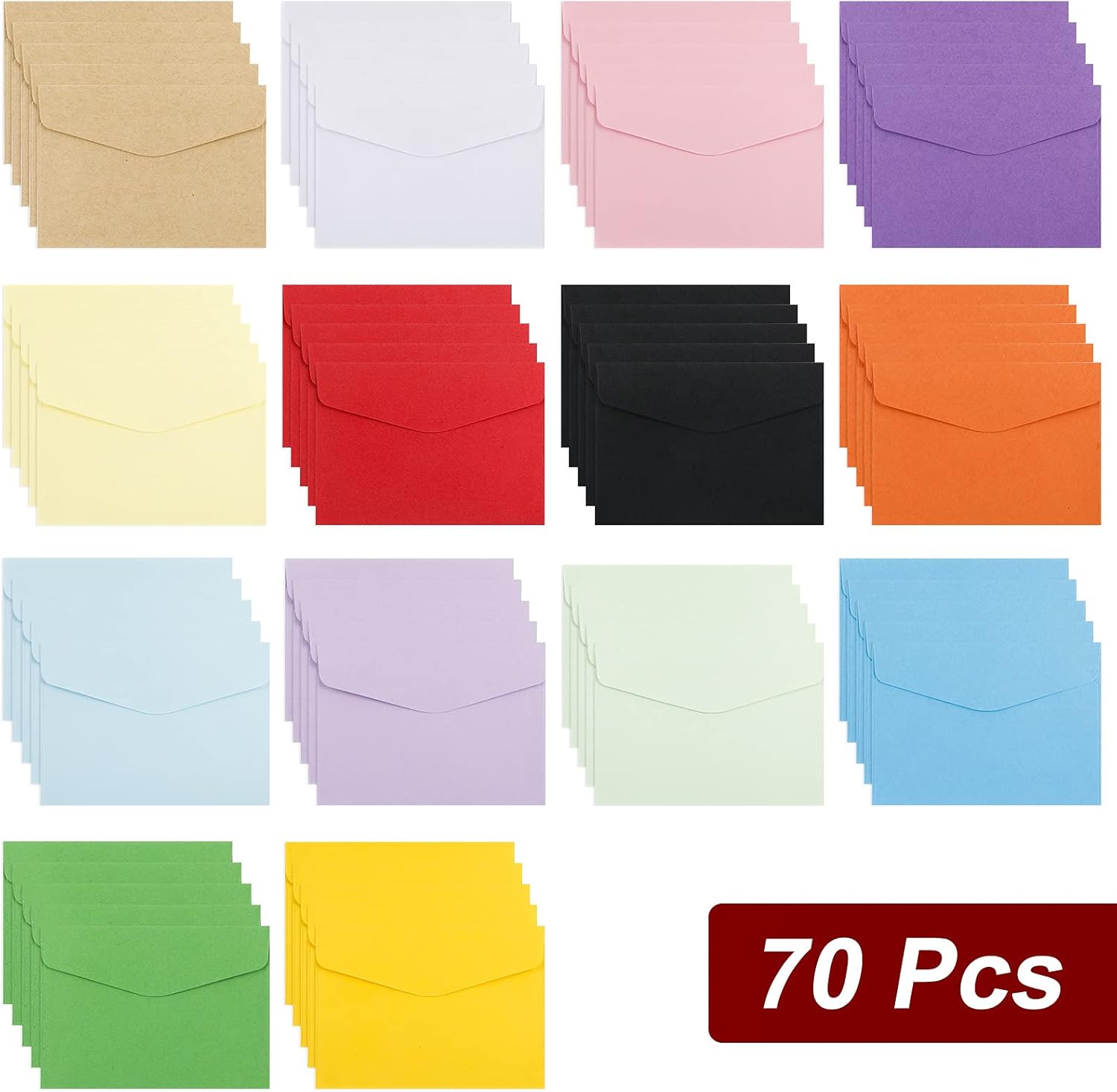 La confezione include: Riceverete 70 mini buste in 14 colori con una dimensione di 11,7 x 8,2 cm, tra cui il colore nero, buff, bianco, verde chiaro, verde, azzurro, blu, viola chiaro, viola, rosa, arancione, rosso, giallo chiaro, giallo scuro Materiale di alta qualità: Le nostre mini buste sono realizzate in carta di alta qualità e si può mettere il biglietto nella busta. Abbastanza quantità per te Buste colorate: 70 buste piccole, e queste piccole buste colorate non sono autoadesive. Si prega di incollare o incollare con bastoncini di colla se si desidera sigillarli Buste fai da te: Le mini buste sono vuote, non hanno stampa e puoi scrivere o disegnare tutto in base alle tue preferenze o preferenze Ampia applicazione: Le nostre mini buste sono ideali per personalizzare biglietti regalo, lettere di ringraziamento, inviti, biglietti di auguri, biglietti di Natale e biglietti da visita e possono essere utilizzate anche come piccoli dispositivi come collane di gioielli, perline, ciondoli, foto, fermagli per capelli, penne, graffette, monete, ecc.