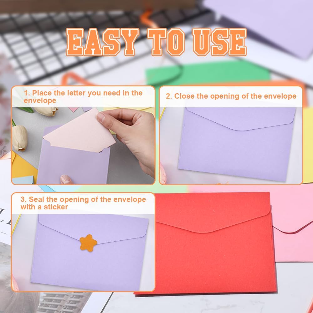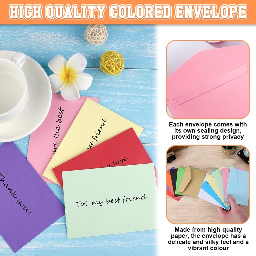 [Carta selezionata di alta qualità] Le nostre buste piccole colorate sono realizzate in carta di alta qualità, dal tocco delicato e setoso e dai colori vivaci e accattivanti. La sua superficie liscia e lucida non solo aggiunge un tocco estetico, ma ha anche un'elevata durata e bordi piatti, lisci e privi di sbavature per conservare a lungo le vostre lettere. Mantenete sempre le vostre lettere in perfette condizioni. [Set di mini buste in vari colori] Il set di mini buste colorate contiene 70 buste di 14 colori diversi, ogni colore ha 5 buste tra cui scegliere e viene fornito con 3 adesivi creativi fai-da-te, sia che si tratti di inviti di compleanno colorati o di biglietti di auguri festivi, può soddisfare le vostre esigenze per tutte le occasioni e lasciare che i vostri desideri sentiti siano trasmessi attraverso i colori ricchi. [Spazio unico per il design fai-da-te] Ogni busta colorata è vuota su entrambi i lati e offre possibilità illimitate alla vostra creatività. Potete dare libero sfogo alla vostra immaginazione disegnando a mano motivi, scrivendo messaggi o incollando foto sulle buste per creare buste personalizzate uniche, rendendole portatrici delle vostre emozioni e storie. [Formato portatile e compatto] Le dimensioni di queste buste colorate sono state accuratamente progettate per essere di circa 11,5*8,2 cm, leggere e facili da trasportare. Sia che stiate uscendo per registrare il vostro stato d'animo, sia che vi stiate preparando per le sorprese quotidiane, possono essere facilmente inserite in uno zaino o addirittura in un libro, consentendovi di trasmettere calore e attenzione in qualsiasi momento e in qualsiasi luogo. [Ampia gamma di applicazioni] Che si tratti di biglietti regalo personalizzati, lettere di ringraziamento sincere, bellissimi biglietti d'auguri nella vita quotidiana, o di biglietti da visita, biglietti di Natale in occasioni di lavoro, questa busta colorata può aggiungere un tocco di luminosità. Può anche essere utilizzata come piccolo e raffinato strumento di conservazione per collane di gioielli, braccialetti, monete e altri piccoli oggetti, pratico e bello.