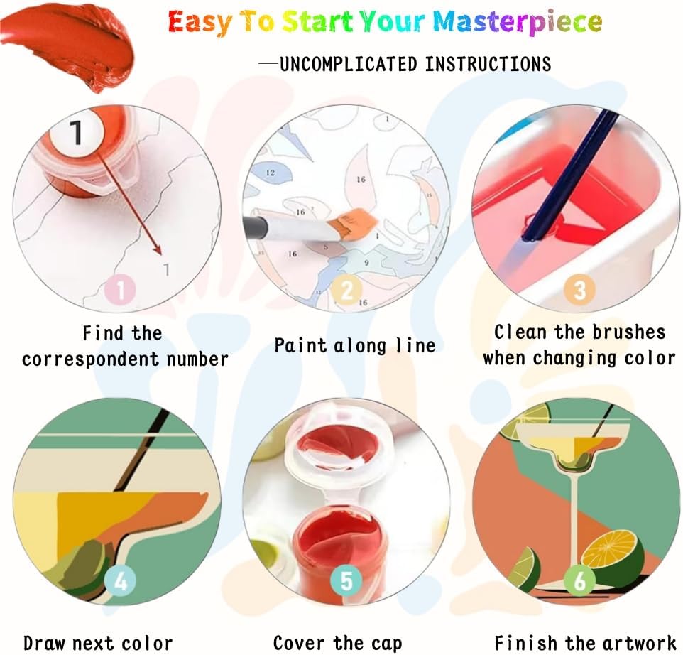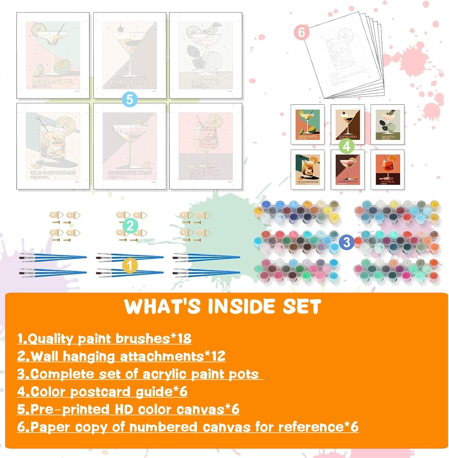 Set completo di 6 motivi premium: tutto incluso per un divertimento creativo immediato: 6 tele di alta qualità (20 x 30 cm), colori acrilici resistenti allo sbiadimento, 3 pennelli di diversi spessori + kit per appenderlo gratuitamente. Ottimo rapporto qualità-prezzo Tela matura museale: i nostri disegni da colorare appositamente rivestiti consentono un'autentica esperienza di pittura a olio. La tela da 20 x 30 cm con trama fine mette in risalto ogni motivo perfettamente. Rilassamento meditativo garantito: scientificamente provato: il nostro sistema di pittura con i numeri riduce lo stress e favorisce la consapevolezza. Ideale dopo una dura giornata di lavoro! Il regalo perfetto per ogni occasione: che si tratti di compleanno, Natale o semplicemente così: questo set creativo entusiasma gli amanti dell'arte di tutte le età. Include confezione regalo e biglietto di auguri personalizzato! Splendide opere d'arte fai da te: grazie alla nostra codifica a colori brevettata e alle istruzioni dettagliate, anche senza conoscenze preliminari, si creano splendide opere d'arte. Il tuo dipinto finito sorprenderà tutti!