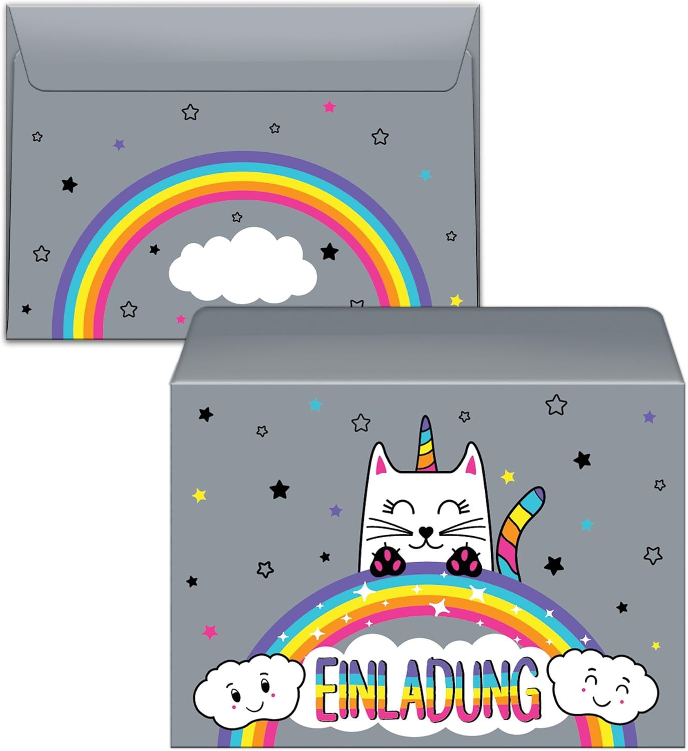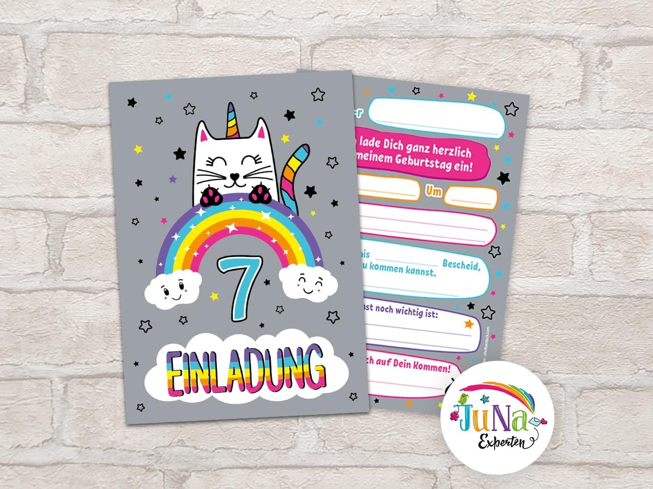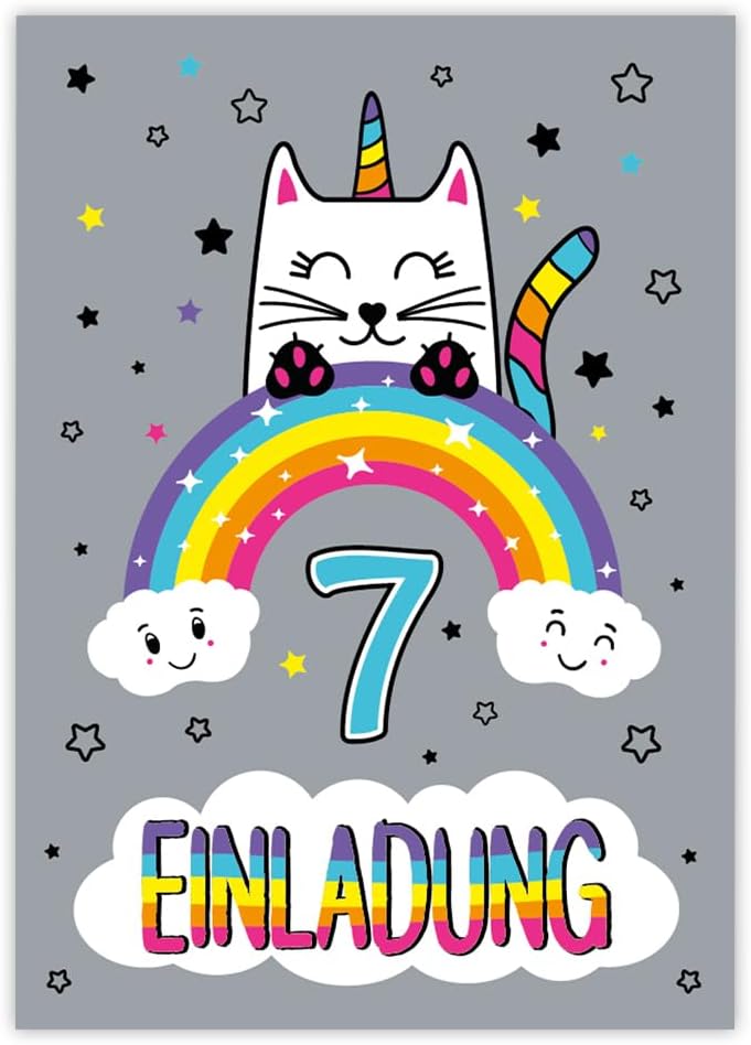 8 biglietti d'invito con 8 buste, 7° compleanno per bambini, ragazze, ragazzi, gatti, unicorno, fantastici inviti settimo compleanno, compleanno per ragazze