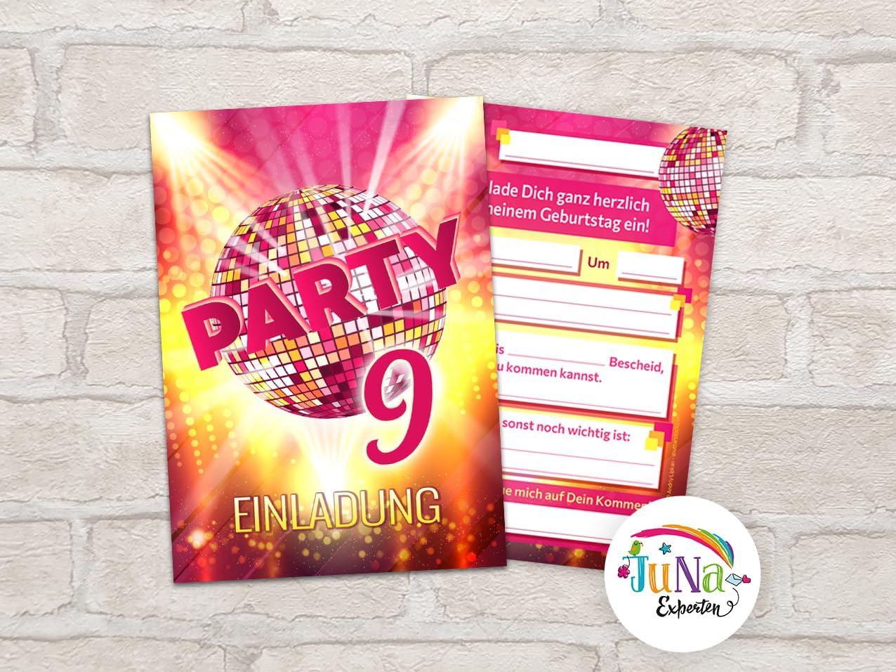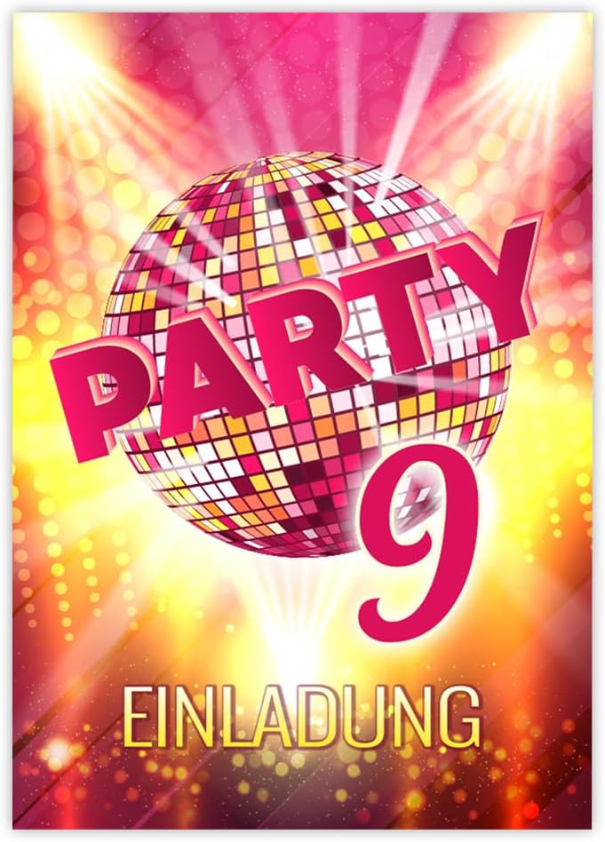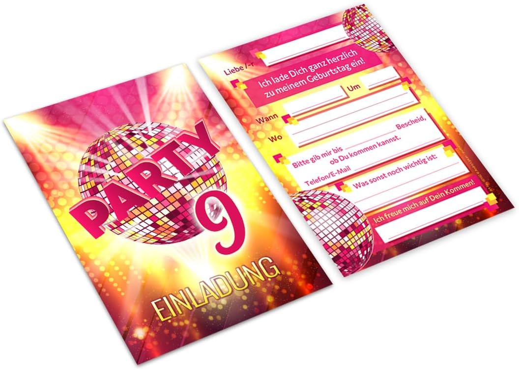 8 biglietti d'invito con 8 buste, 9° compleanno per bambini, discoteca VIP, fantastici inviti, nono compleanno, ragazza