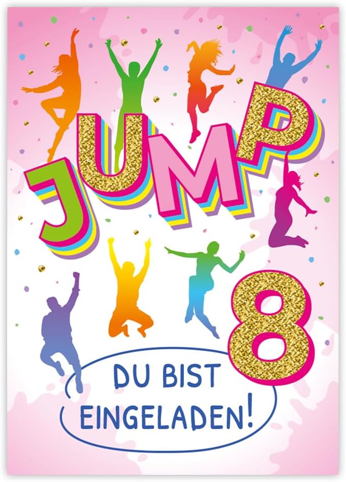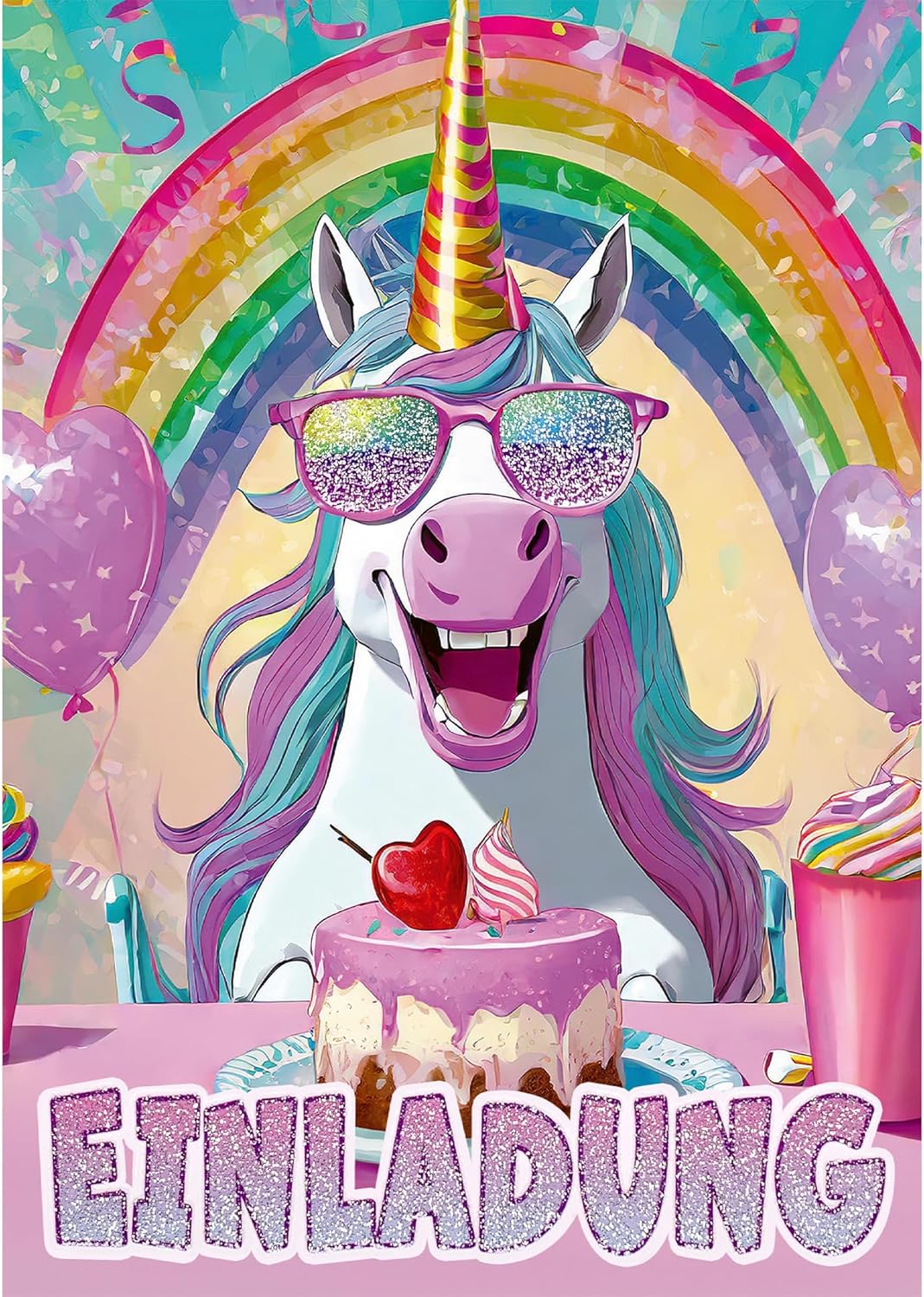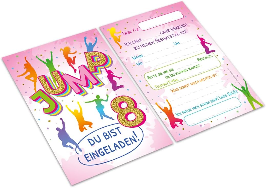 Contenuto: 8 biglietti d'invito + 8 buste Pratico: gli inviti sono moderni e progettati con molti dettagli. Sul retro troverete i campi prestampati da compilare. Biglietti: i biglietti d'invito sono molto robusti, hanno formato A6 (10,50 cm x 14,80 cm), stampa di alta qualità 300 g/m e sono rivestiti con vernice UV per la finitura. Buste autoadesive: la busta ha una dimensione di 11,40 cm x 16,20 cm, stampa da 80 g/m ed è adesiva (con striscia adesiva). Occasioni: i biglietti di invito sono molto adatti per una festa di compleanno o una festa di compleanno. È possibile utilizzare questi biglietti anche come inviti per battesimi, feste a tema, feste al cinema o feste in piscina. HAI BISOGNO DI UN ALTRO NUMERO? : da noi troverete anche biglietti e buste in set da 6, 10 o 12 pezzi. Altri motivi: nel nostro negozio troverete anche molti altri motivi di inviti, come lama, sirena, calcio, cinema, piscina, bowling. Prodotto in Germania: i biglietti e le buste sono stati prodotti in una tipografia tedesca.