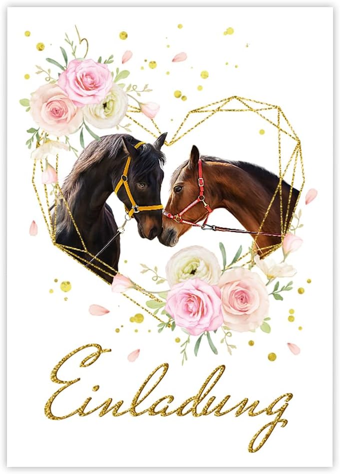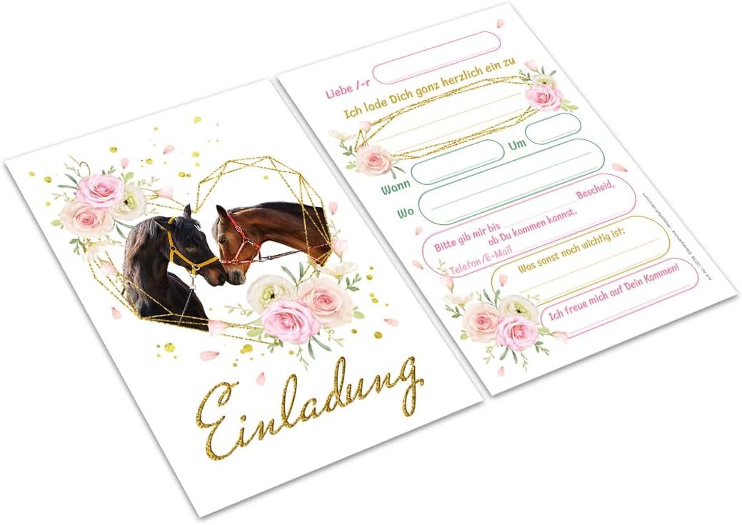 8 biglietti d'invito con 8 buste per compleanno per bambini, motivo cavallo, due cavalli, inviti per il compleanno dei bambini