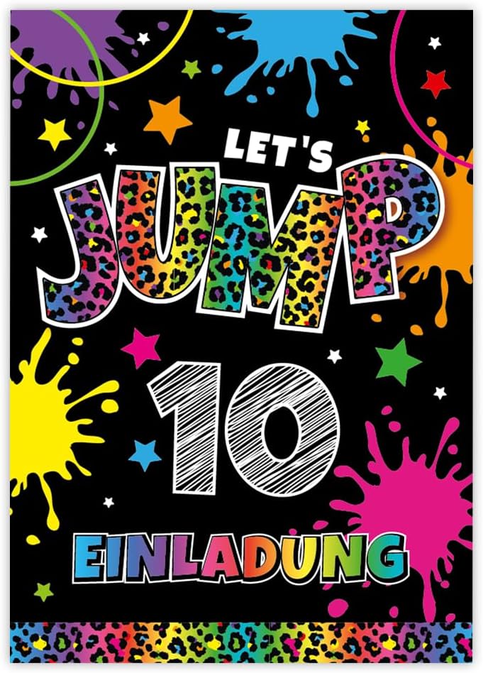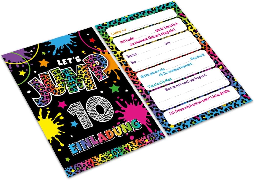 Contenuto: 8 biglietti d'invito + 8 buste Pratico: gli inviti sono moderni e progettati con molti dettagli. Sul retro troverete i campi prestampati da compilare. Biglietti: i biglietti d'invito sono molto robusti, hanno formato A6 (10,50 cm x 14,80 cm), stampa di alta qualità 300 g/m e sono rivestiti con vernice UV per la finitura. Buste autoadesive: la busta ha una dimensione di 11,40 cm x 16,20 cm, stampa da 80 g/m ed è adesiva (con striscia adesiva). Occasioni: i biglietti di invito sono molto adatti per una festa di compleanno o una festa di compleanno. È possibile utilizzare questi biglietti anche come inviti per battesimi, feste a tema, feste al cinema o feste in piscina. HAI BISOGNO DI UN ALTRO NUMERO? : da noi troverete anche biglietti e buste in set da 6, 10 o 12 pezzi. Altri motivi: nel nostro negozio troverete anche molti altri motivi di inviti, come lama, sirena, calcio, cinema, piscina, bowling. Prodotto in Germania: i biglietti e le buste sono stati prodotti in una tipografia tedesca.