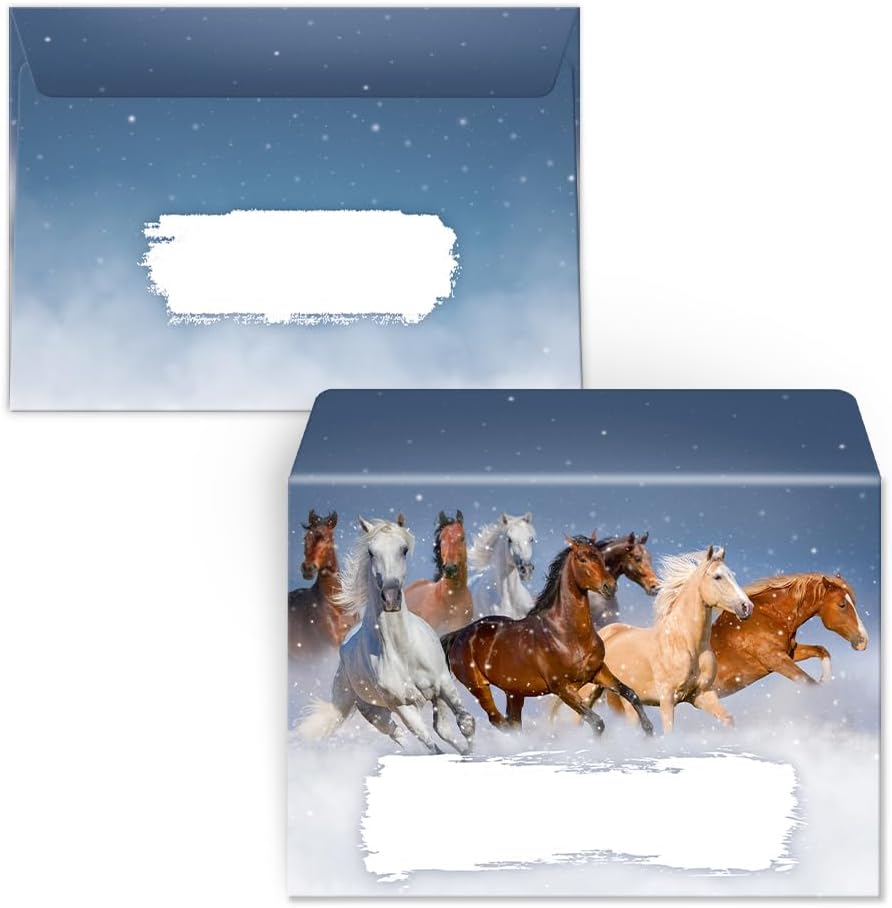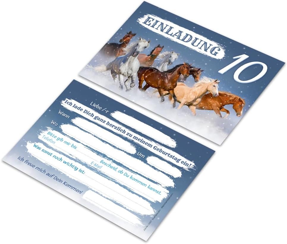 8 biglietti d'invito con 8 buste per il 10° compleanno per bambini, motivo: cavalli, invito per il decimo compleanno per bambini