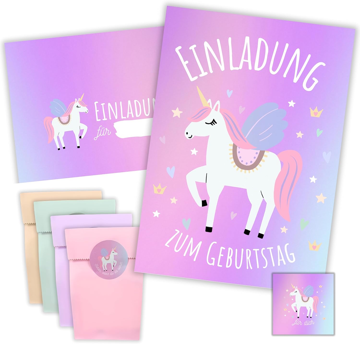 CONTENUTO: 8 fantastici biglietti d'invito + 8 buste PRATICO: campi prestampati per tutte le informazioni importanti da compilare sul retro. DIMENSIONI: la card (10,50 cm x 14,80 cm) ha una stampa di immagini di 300 g/m ed è rivestita con vernice UV. La busta (11,40 cm x 16,20 cm) è autoadesiva (con strisce staccabili). MADE IN GERMANY: i biglietti e le buste sono stati prodotti in una tipografia tedesca. ALTRO: disponibile anche in set da 6, 10 e 12 nel nostro negozio.