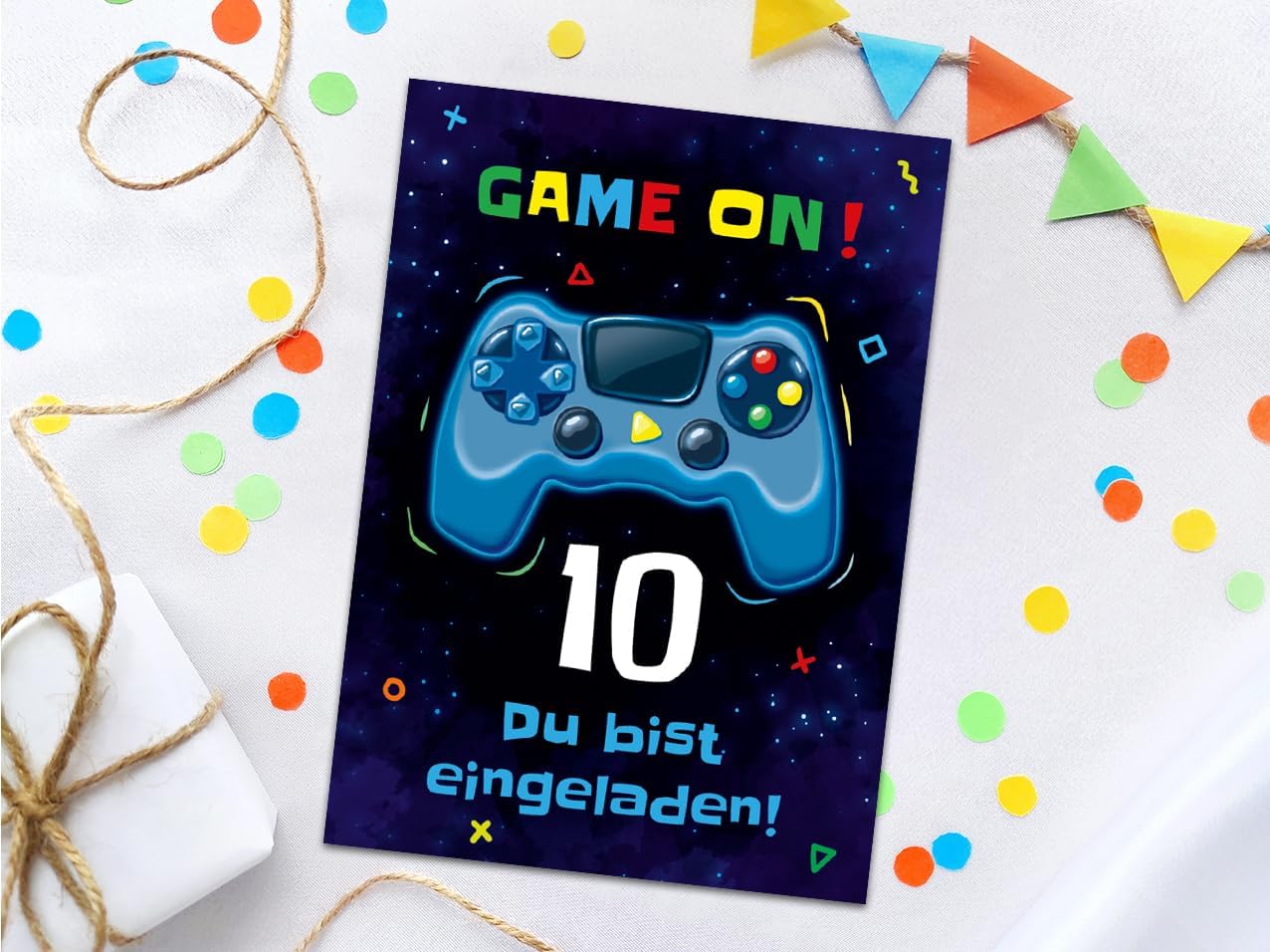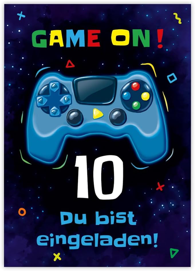 8 biglietti d'invito per il 10° compleanno dei bambini, per feste di gioco, incl. 8 buste, inviti di compleanno per ragazzi
