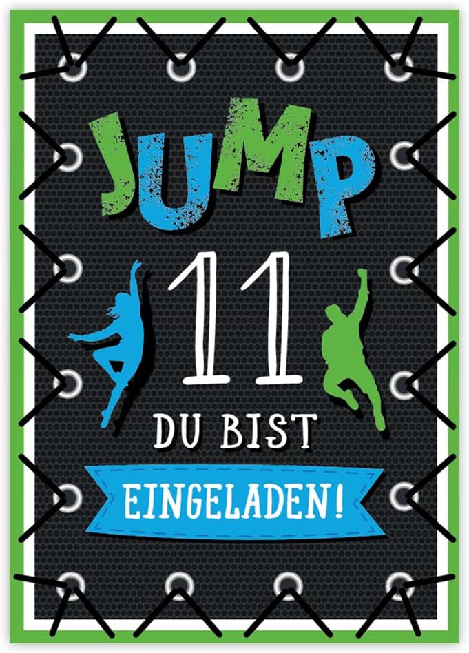 8 biglietti d'invito per il 11° compleanno per bambini, ragazzi, ragazze, trampolino, inviti, undicesimo compleanno, incl. 8 buste
