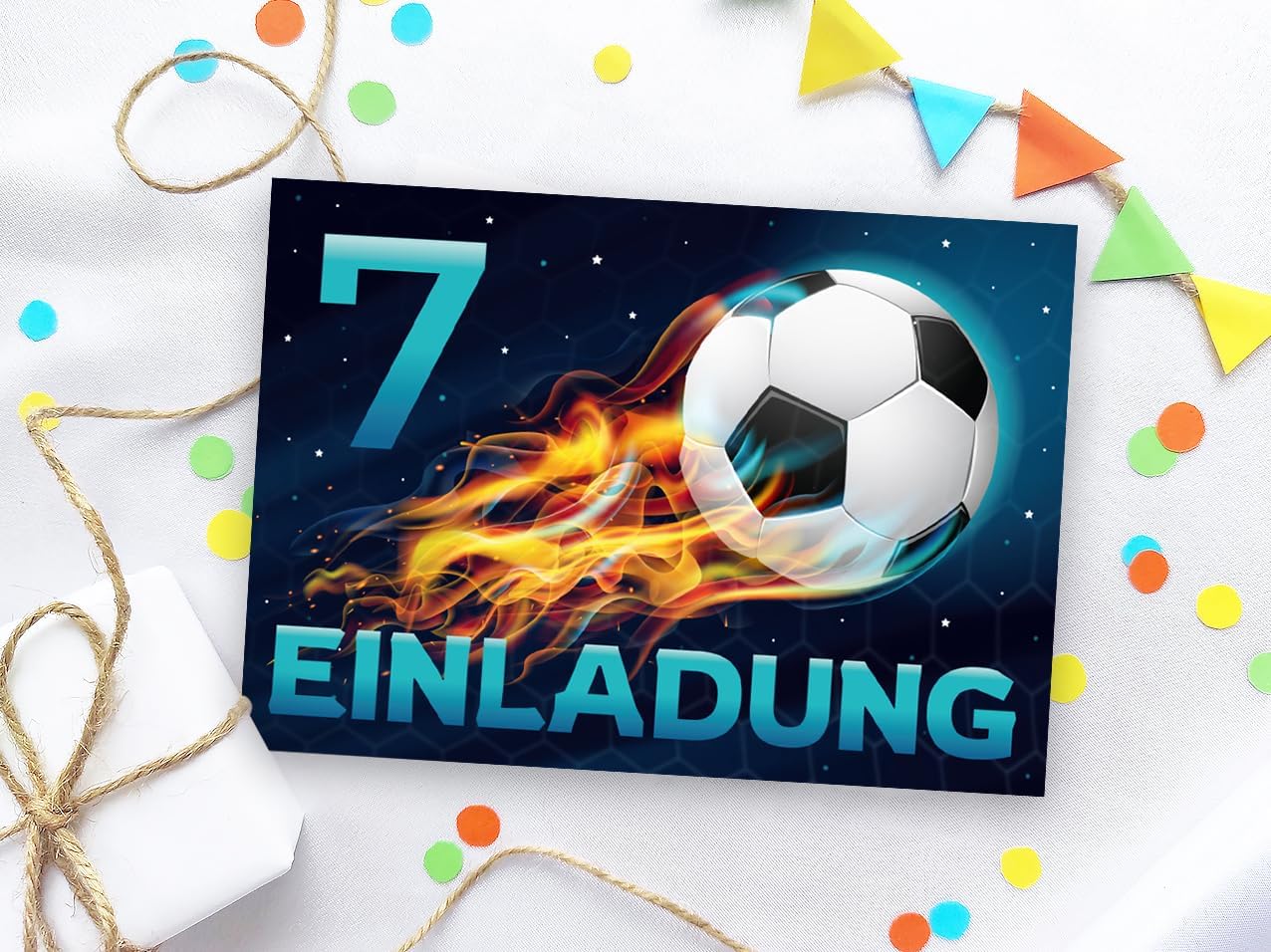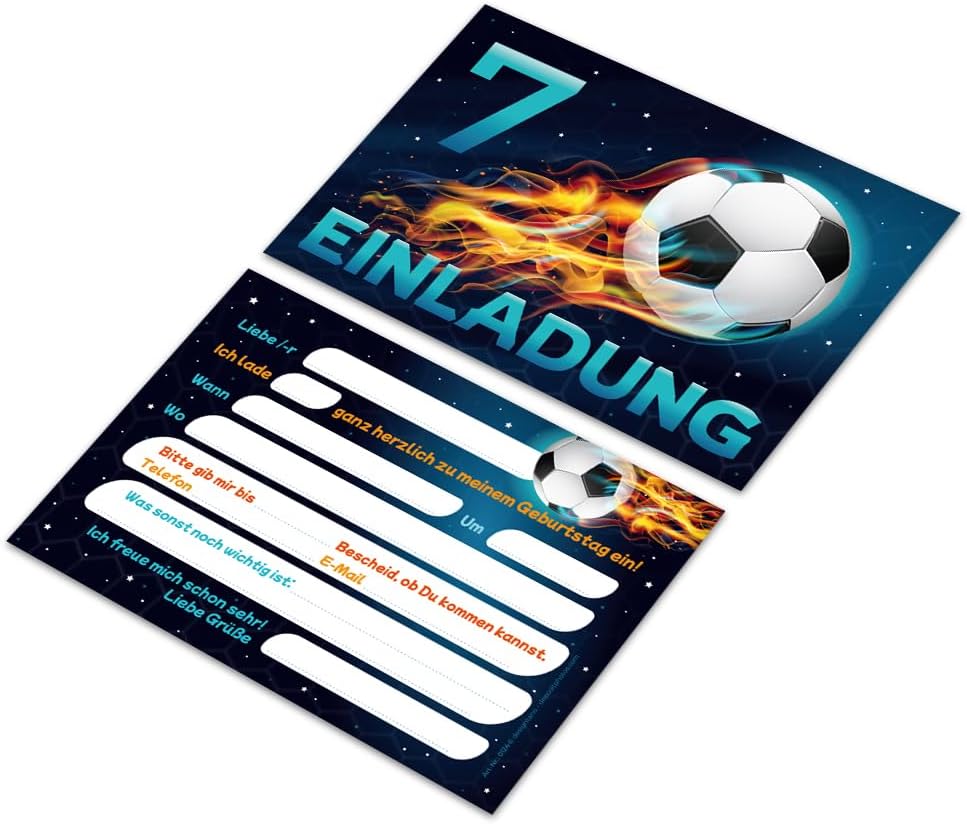 Contenuto: 8 biglietti d'invito + 8 buste Pratico: gli inviti sono moderni e progettati con molti dettagli. Sul retro troverete i campi prestampati da compilare. Biglietti: i biglietti d'invito sono molto robusti, hanno formato A6 (10,50 cm x 14,80 cm), stampa di alta qualità 300 g/m e sono rivestiti con vernice UV per la finitura. Buste autoadesive: la busta ha una dimensione di 11,40 cm x 16,20 cm, stampa da 80 g/m ed è adesiva (con striscia adesiva). Occasioni: i biglietti di invito sono molto adatti per una festa di compleanno o una festa di compleanno. È possibile utilizzare questi biglietti anche come inviti per battesimi, feste a tema, feste al cinema o feste in piscina. HAI BISOGNO DI UN ALTRO NUMERO? : da noi troverete anche biglietti e buste in set da 6, 10 o 12 pezzi. Altri motivi: nel nostro negozio troverete anche molti altri motivi di inviti, come lama, sirena, calcio, cinema, piscina, bowling. Prodotto in Germania: i biglietti e le buste sono stati prodotti in una tipografia tedesca.