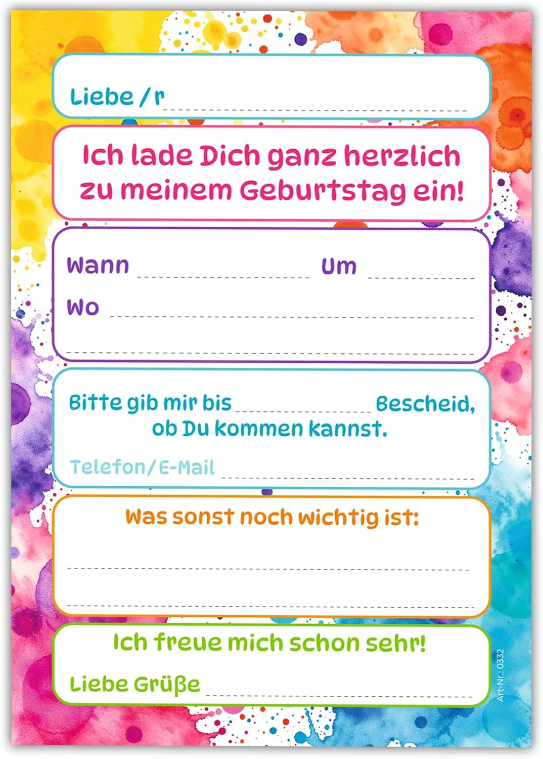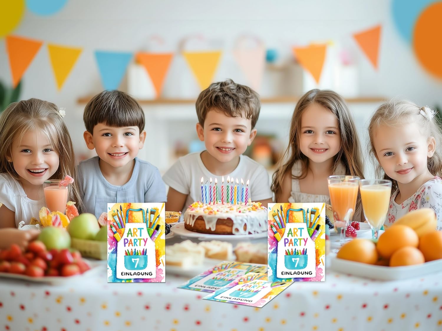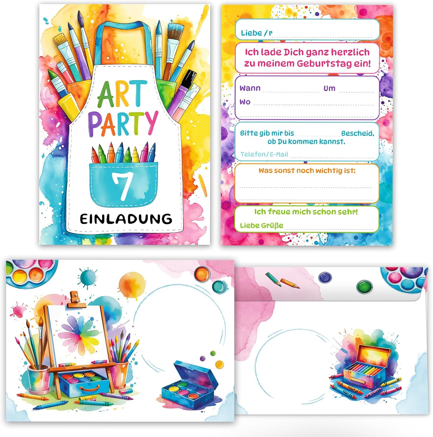 CONTENUTO: 8 biglietti invito, 8 buste, 8 mini block notes, 8 sacchetti con 8 adesivi. BIGLIETTI E BUSTE: I biglietti d'invito sono moderni e progettati con molti dettagli. Sul retro troverai i campi prestampati da compilare. La carta ha una dimensione di 10,50 cm x 14,80 cm (stampa immagine 300 gr/m). La busta ha una dimensione di 11,40 cm x 16,20 cm (stampa da 80 g/m²) ed è autoadesiva (con strisce staccabili). BLOCCHI: Il blocco note ha una dimensione di 7,4 x 10,5 cm (DIN A7) e dispone di 25 fogli. SACCHETTI CON ADESIVI: I sacchetti di carta misurano 14 cm x 22 cm. Gli adesivi misurano 5,2 x 14,8 cm. I sacchetti sono ideali da riempire con piccoli sacchetti per le feste di compleanno dei bambini. MADE IN GERMANY: i biglietti, le buste, gli adesivi, i blocchi e i sacchetti sono stati prodotti in Germania. Abbiamo anche set da 6, 10 e 12 disponibili.