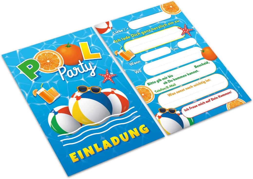 8 biglietti di invito, incl. 8 buste per il compleanno dei bambini, in piscina, per feste in piscina, per ragazzi e ragazze
