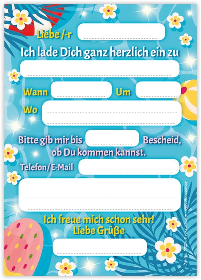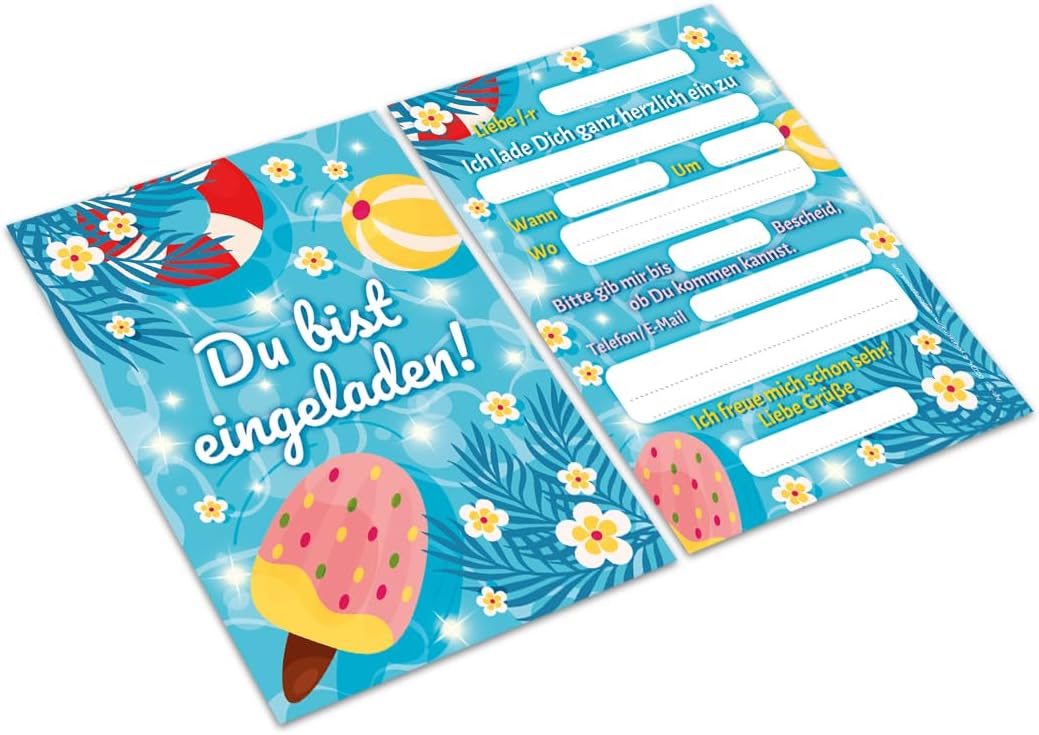 8 biglietti di invito, incl. 8 buste per il compleanno dei bambini, per la piscina, il nuoto, i ragazzi, le ragazze, il compleanno dei ragazzi