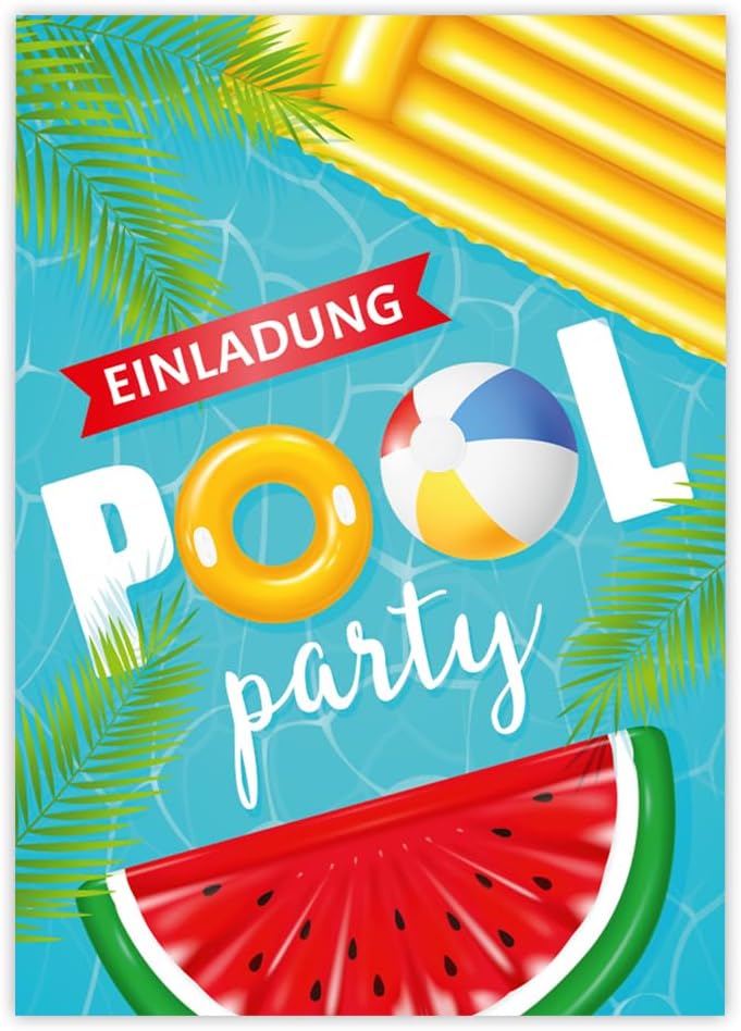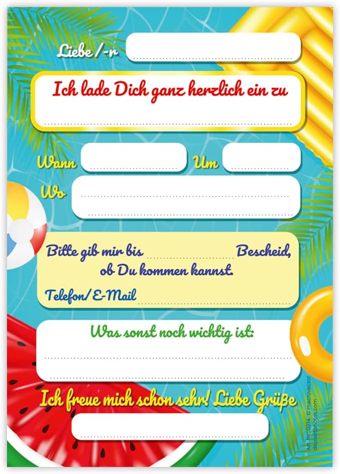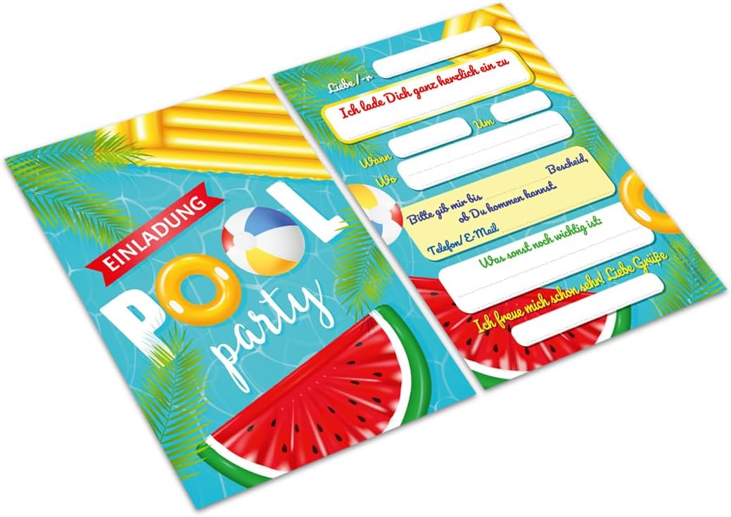 8 biglietti di invito, incl. 8 buste per il compleanno dei bambini, per la piscina, il nuoto, le ragazze, il compleanno dei ragazzi