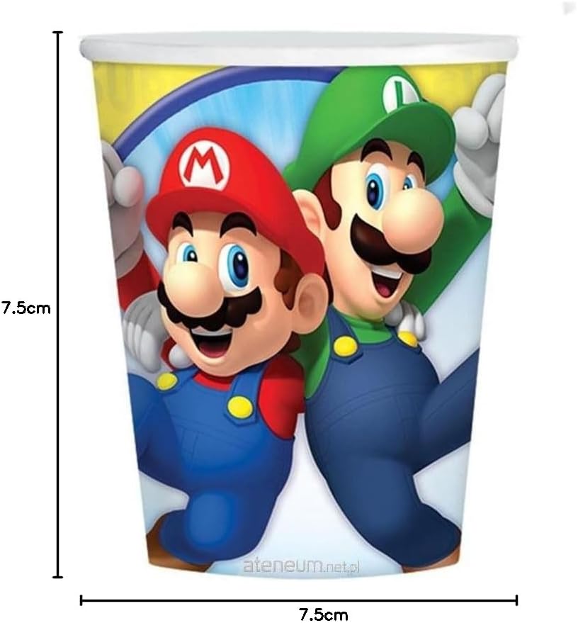 8 bicchieri di carta Super Mario Capacità: 250 ml