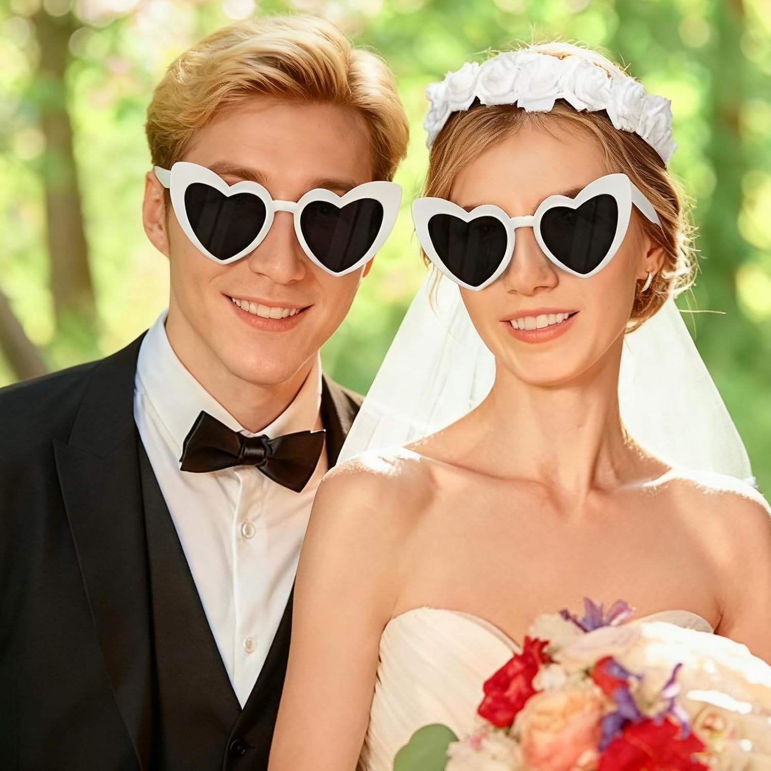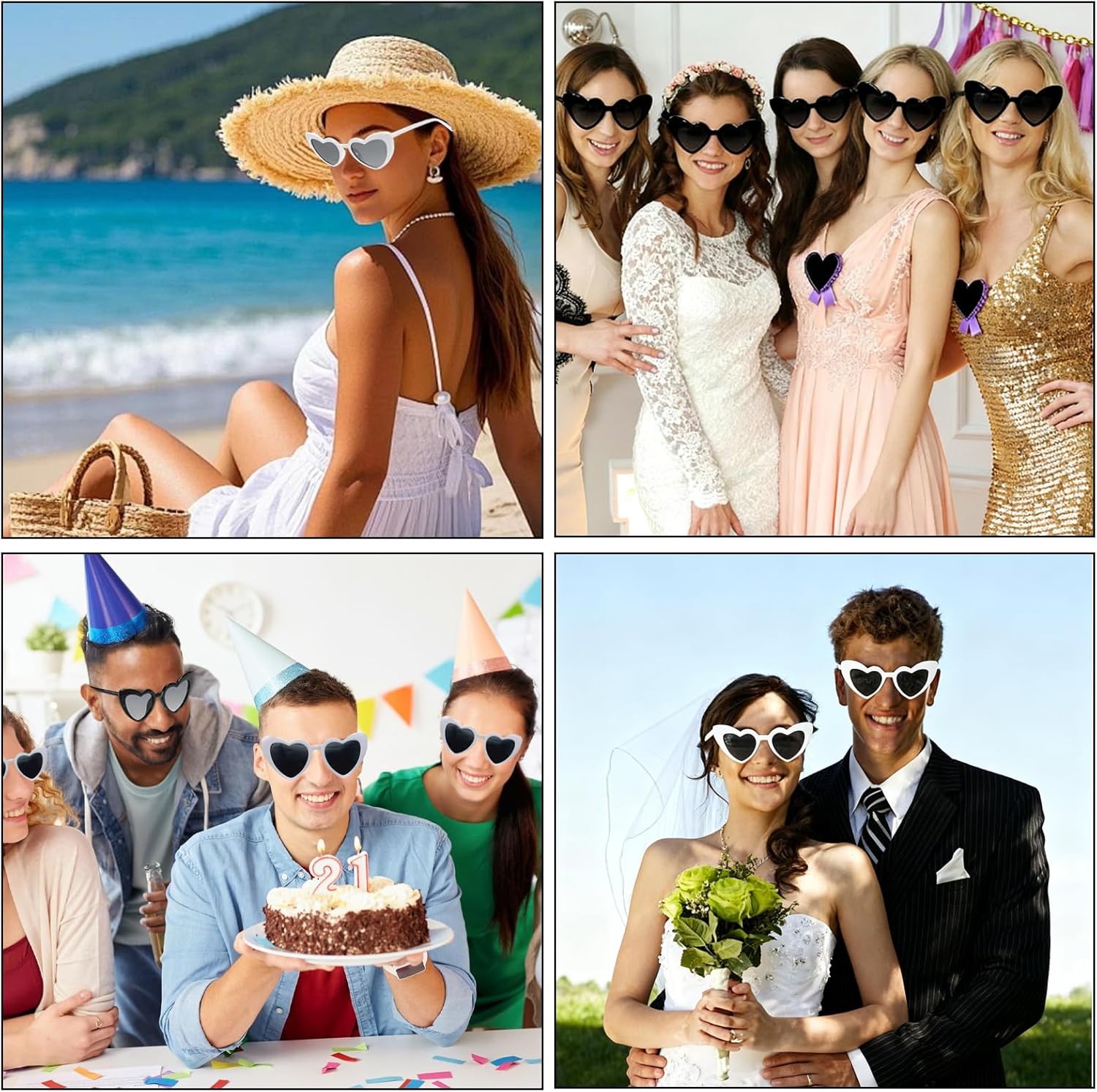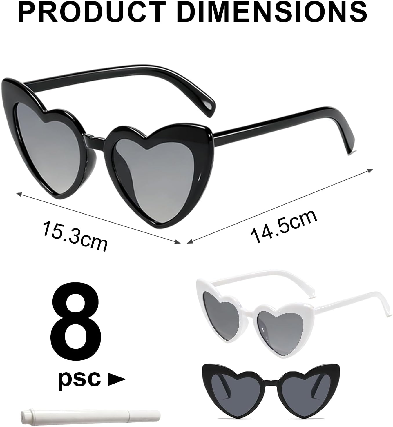 8 occhiali da sole a cuore con penna, occhiali a cuore personalizzati, occhiali hippie da donna perlati, occhiali da festa con penna, occhiali vintage a forma di cuore per addii al nubilato, feste di compleanno, Natale