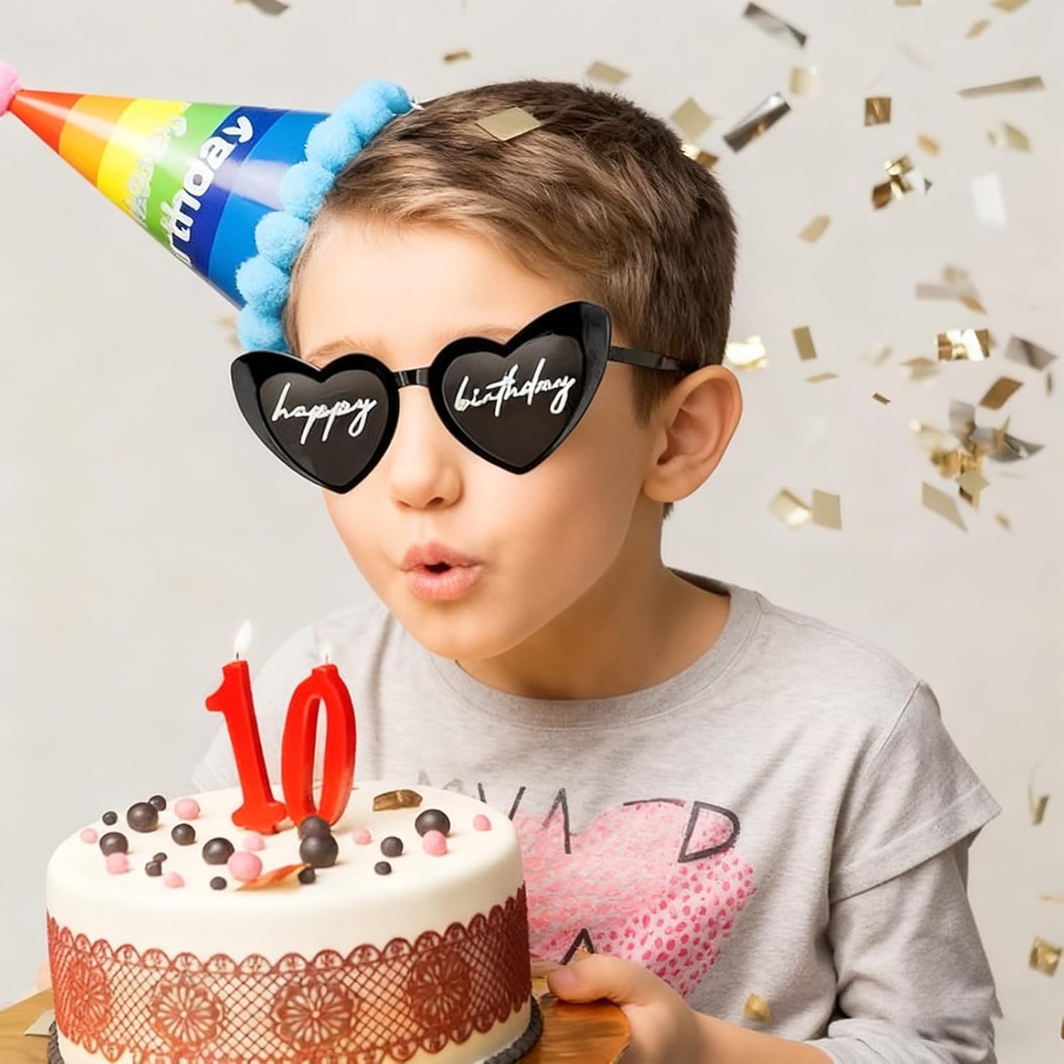 Un pack de lunettes-cœur plutôt sympa. Le crayon blanc permet facilement de dessiner sur les lunettes. Les chevilles sont plastiques mais elles semblent robustes. Idéal pour faire la fête.