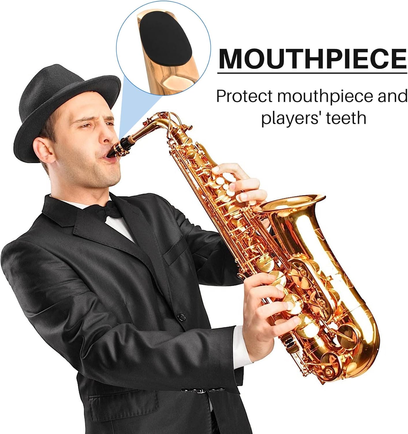 Adatto per sassofono contralto o tenore. 0,3 mm di spessore. Include 8 pezzi di toppa per bocchino. Proteggi il boccaglio e i denti dei giocatori. Dimensioni: 0,3 mm