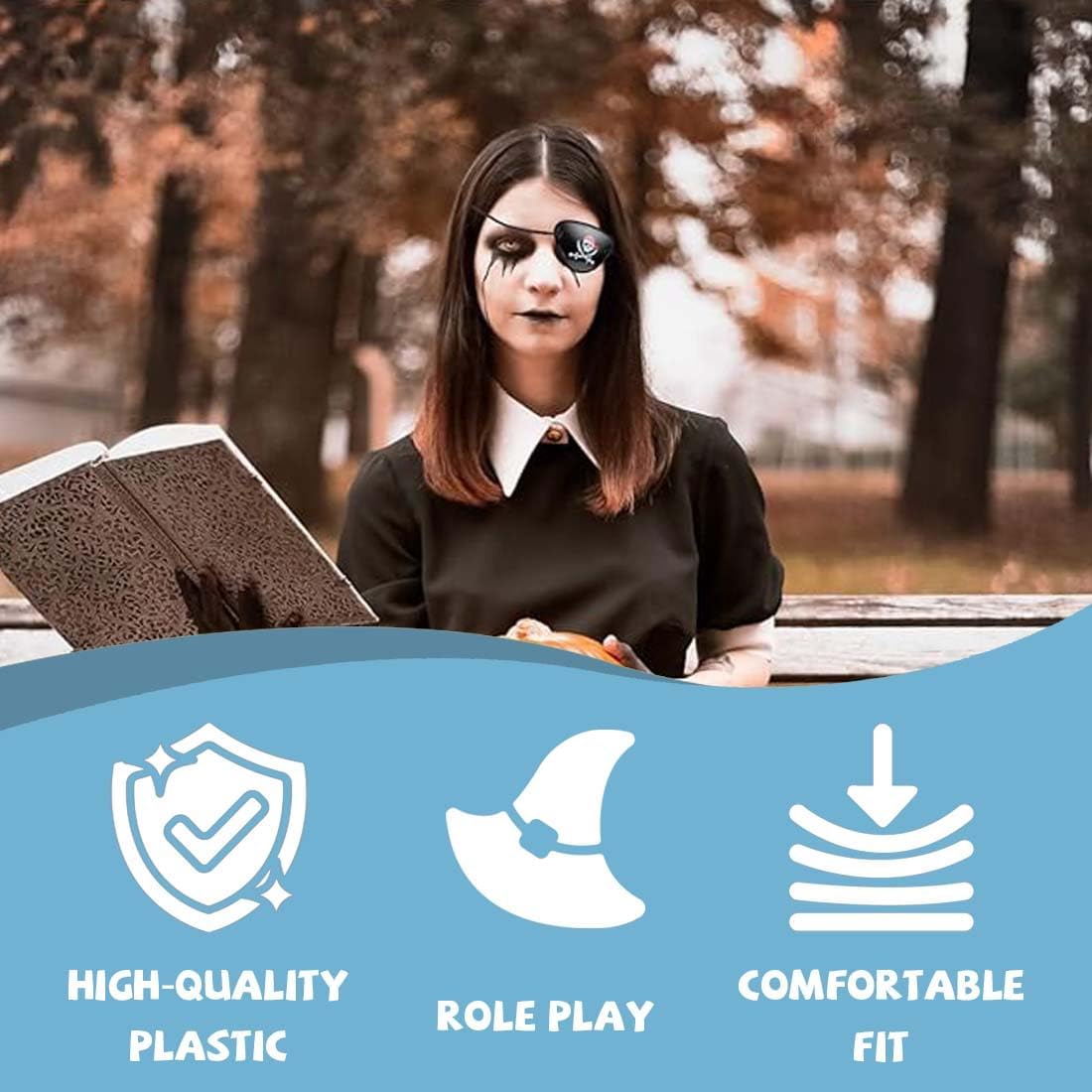 1,😎【Accessorio ideale】Una benda sull'occhio da pirata del marchio MLRUQRX, un accessorio essenziale per i tuoi travestimenti da pirata. Darà un tocco autentico al tuo look da pirata, che sia per una festa a tema, un carnevale o un ballo in maschera. 2,📐【Dimensioni e colore】Questa benda sull'occhio da pirata misura 7×5,2 cm, una dimensione perfetta per coprire un occhio senza essere troppo imponente. Di colore nero, si abbina all'immagine classica dei pirati e si adatterà facilmente a qualsiasi costume da pirata. 3,🛡 【Materiale durevole】 Realizzata in plastica di qualità, questa benda sull'occhio da pirata è resistente e durevole. Potrai utilizzarlo più volte senza preoccuparti che si deteriori rapidamente, il che lo rende un accessorio economico e pratico per le tue diverse serate a tema. 4,🎉【Molteplici occasioni】Ideale per feste di Halloween, Natale, balli in maschera e molte altre occasioni festive. Permetterà a tutti di immergersi completamente nell'atmosfera della festa e di vivere un'esperienza indimenticabile nei panni di un pirata. 5,🎁【Regalo originale】Un grande regalo per gli amanti dei costumi in maschera e delle feste a tema. Regalalo ai tuoi amici o familiari per permettere loro di completare il loro costume da pirata e brillare durante le diverse serate festive.