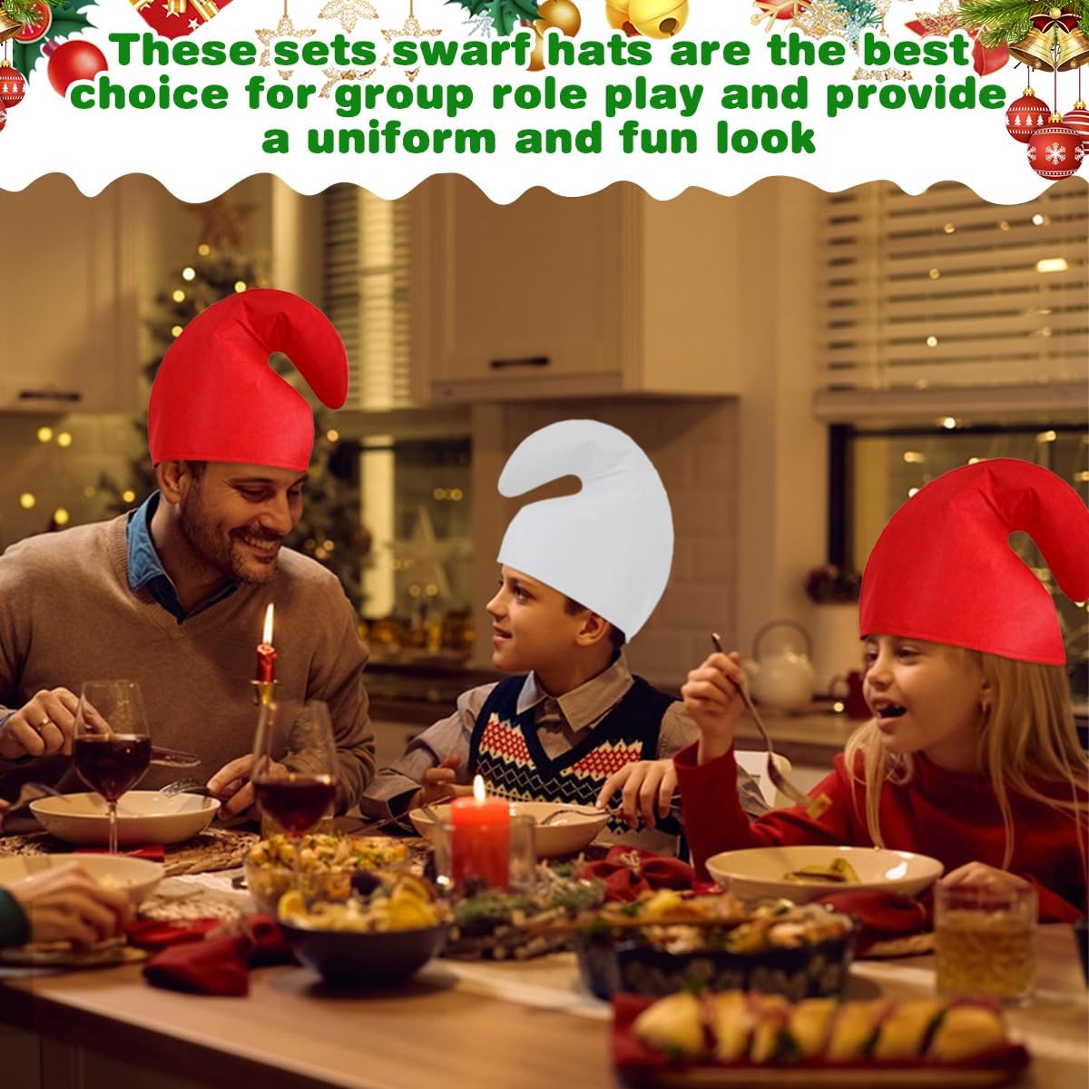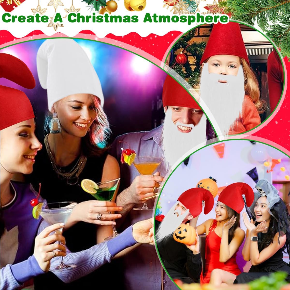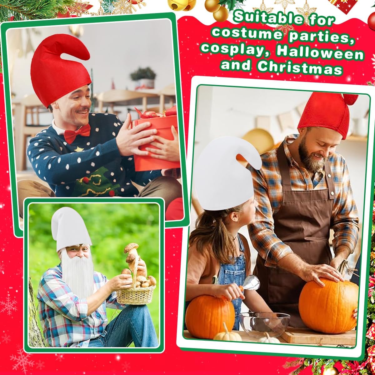 【Set Completo per Ruolo di Gruppo | 8 Cappelli + Barba + Sopracciglia】Il set include 2 cappelli da gnomo rossi, 6 cappelli da gnomo bianchi, 1 barba bianca e 1 paio di sopracciglia, ideale per attività di gruppo. I colori contrastanti rosso e bianco permettono di distinguere chiaramente i ruoli (ad esempio, il leader con un cappello rosso), garantendo un look unificato senza caos. Lascia che tu e i tuoi amici viviate il divertimento del gioco di ruolo 【Materiale Durabile | Morbido & Comodo da Indossare】Il nostro cappello da gnomo è realizzato in tessuto non tessuto, che lo rende morbido, leggero, riutilizzabile e resistente. Sta in piedi e non si piega. La morbida barba è realizzata in flanella ed è dotata di un elastico per un facile trasporto e comfort 【Taglia Adatta | Cappello da Nano a Punta】Il nostro set di cappelli da gnomo di carnevale è adatto alla maggior parte degli uomini e delle donne. Il cappello da gnomo è alto 29 cm e ha una circonferenza di 62 cm; la barba misura circa 30 x 25 cm e le sopracciglia circa 7,5 x 2,5 cm. Sono facili da indossare: basta indossare il cappello e fissare la barba con l'elastico, e il tuo look sarà immediatamente completo 【Crea un Look a Tema | Crea un'Atmosfera Festosa】Il set di cappelli da gnomo, completo di barba e sopracciglia, presenta una classica combinazione di colori rosso e bianco, che si abbina sia al Natale (elfi invernali) che ad Halloween (gnomi magici). Abbinalo a un mantello o altri accessori per creare un look a tema, esaltare l'atmosfera festiva e portare gioia in ogni occasione 【Multi-Uso & Regalo Ideale | Cappello da Elfo di Natale】Oltre alle feste di Natale e Halloween, questi cappelli da elfo natalizio sono adatti anche per balli in maschera, giochi di ruolo, spettacoli teatrali, servizi fotografici a tema, sfilate di carnevale e spettacoli che celebrano le prossime festività. Aggiungeranno un tocco di divertimento e personalità ai tuoi momenti di festa. Sono anche dei regali adorabili e divertenti per i tuoi cari