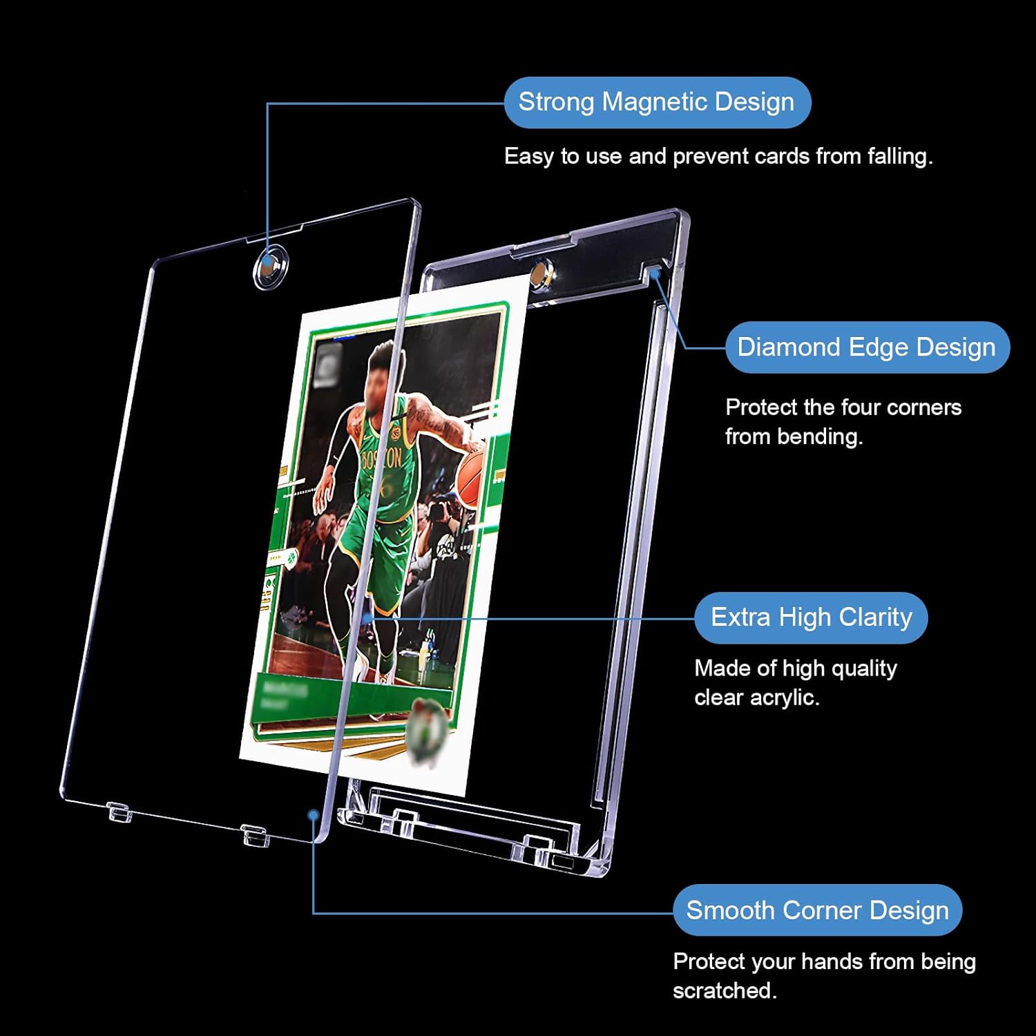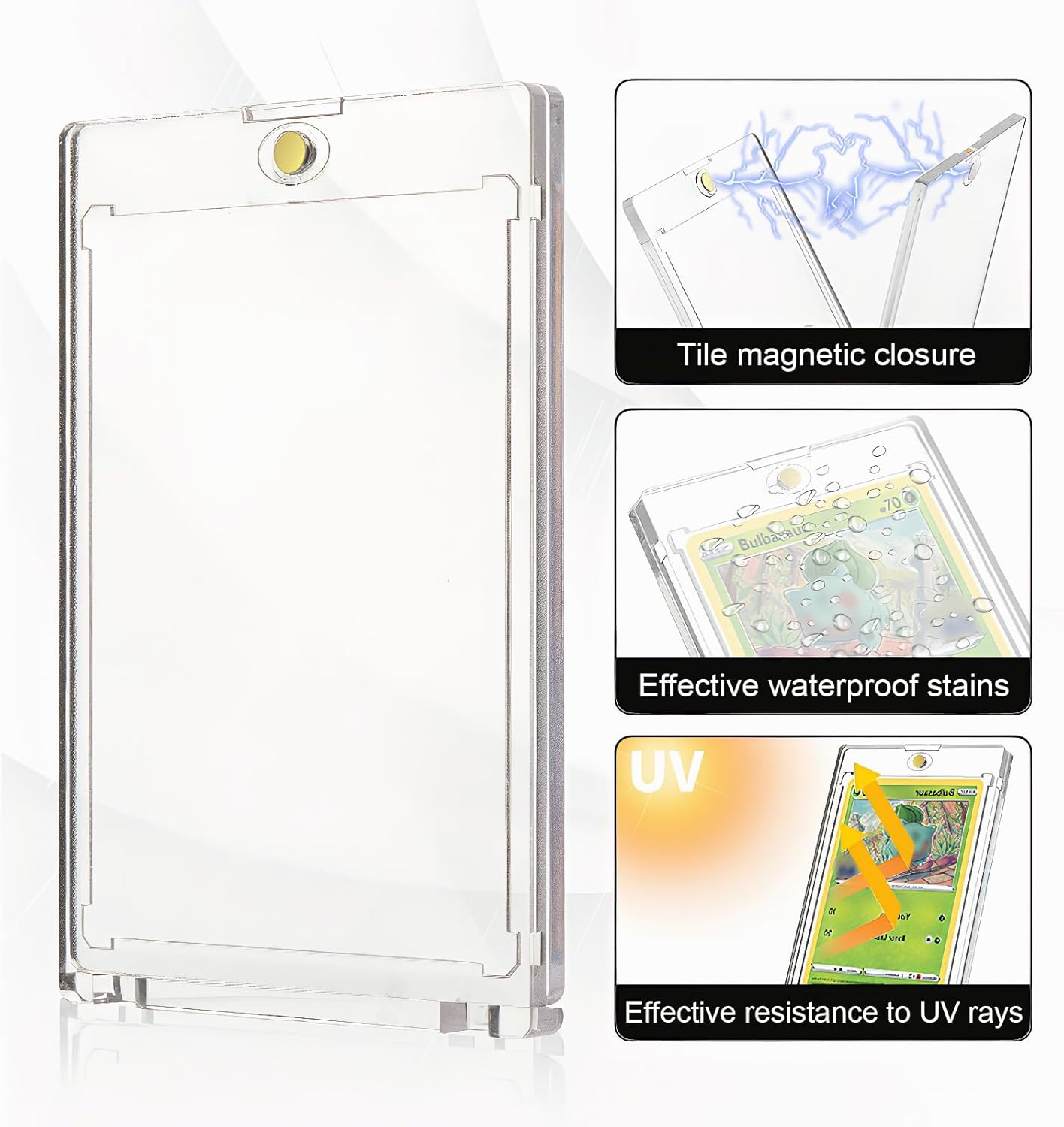 ✔️ Dimensioni della scatola portacarte: il prodotto include 8 scatole portacarte trasparenti (11 cm x 7,3 cm x 0,8 cm) e 4 contenitori. Adatto per carte collezionabili sportive o da gioco di dimensioni standard (2,5 x 3,5 pollici). Ampiamente utilizzato per carte da baseball, carte sportive, carte da gioco, biglietti da visita, ecc., il design della cornice trasparente è comodo per visualizzare i dettagli delle carte da più angolazioni. ✔️ Materiali di alta qualità: il portacarte è realizzato in acrilico rigido di alta qualità da 35 pt, ecologico e atossico, altamente trasparente, antigraffio, privo di acidi, robusto e durevole. Il design con angoli arrotondati protegge le mani e l'acrilico anticaduta e gli additivi anti-UV impediscono alle carte di ingiallire o scolorire. ✔️ Protezione completa: il design magnetico interno del portacarte è comodo da aprire e chiudere e la chiusura è salda, il che impedisce efficacemente lo sbiadimento o il danneggiamento delle carte. Questo portacarte resiste efficacemente a cadute, graffi, impronte digitali e scolorimento. La fibbia magnetica garantisce una facile apertura e chiusura e una chiusura salda, mentre la struttura angolare a diamante protegge ulteriormente i bordi delle carte, rendendolo ideale per collezioni a lungo termine. ✔️ Sistema magnetico: il portacarte è dotato di potenti magneti integrati e fibbie magnetiche dorate per una facile apertura e chiusura, e la chiusura è stabile e facile da usare senza attrezzi. La cornice interna a forma di diamante impedisce alla carta di spostarsi e la scocca in acrilico è impermeabile e antipolvere. Dotato di un supporto, è ideale per conservare ed esporre la tua collezione. ✔️ Ampiamente utilizzato: i nostri set di carte collezionabili sono compatibili con tutte le carte di dimensioni standard, come carte da gioco, carte da baseball, carte MTG, carte fotografiche, carte Yu-Gi-Oh, carte sportive, carte stellari, carte da gioco, ecc.