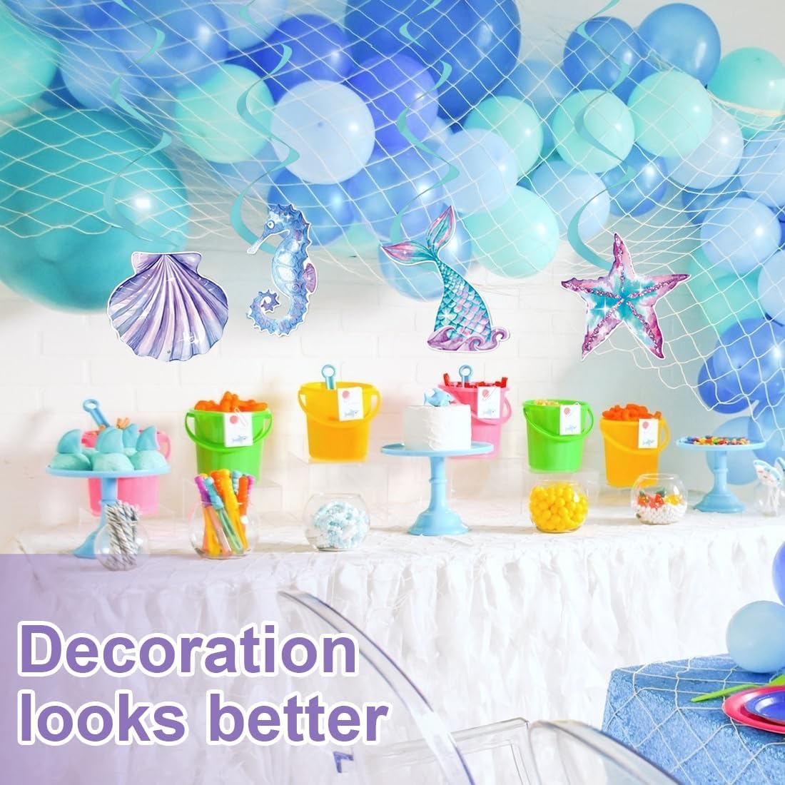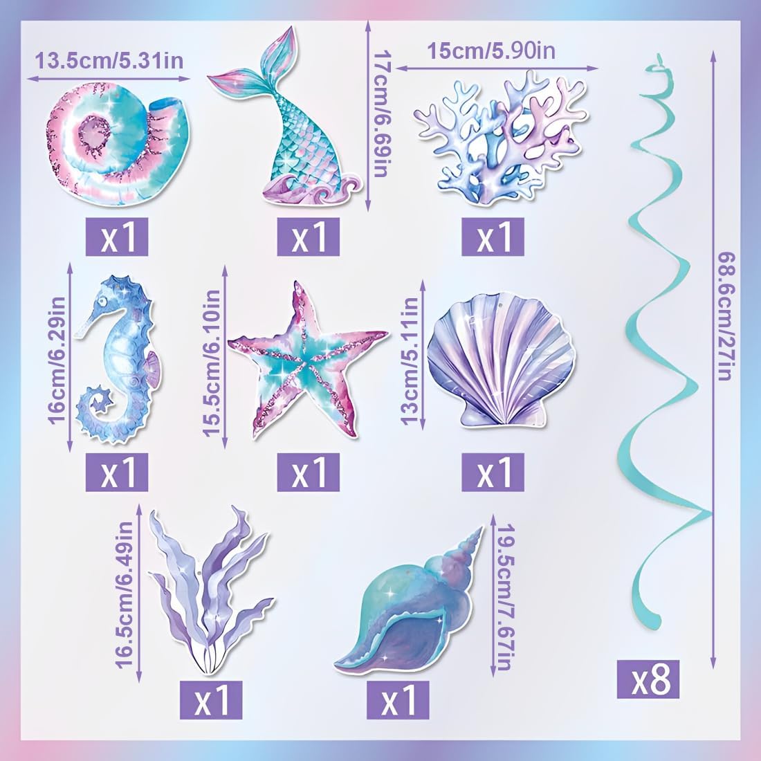 Decorazioni per compleanno a tema mare: Include 8 decorazioni sospese con sirene, perfette per creare un'atmosfera magica e incantata. Ideale per feste a tema mare, queste decorazioni affascineranno i tuoi ospiti con un tocco di fantasia e allegria Materiali di alta qualità: Realizzate in cartoncino resistente, queste decorazioni sono perfette per feste di compleanno per bambini o eventi all'aperto a tema marino. Con conchiglie, cavallucci marini, stelle marine e sirene, ti sentirai immerso in un mondo sottomarino affascinante Accessori creativi e unici: Il set include conchiglie, cavallucci marini, stelle marine e sirene, ideali per rendere la tua festa a tema mare unica e memorabile. Perfetto per creare un'atmosfera magica e fantasiosa che incanterà grandi e piccini Decorazioni versatili: Questi ornamenti possono essere appesi a soffitti, finestre, porte, ingressi, archi, rami, verande e molto altro. Offrono infinite possibilità per personalizzare la tua festa e renderla davvero speciale Adatte a molte occasioni: Perfette per feste a tema sirena, compleanni per bambini, matrimoni, addii al nubilato, fidanzamenti, baby shower, anniversari, feste di laurea e altre celebrazioni. Ideali per aggiungere un tocco di magia a qualsiasi evento