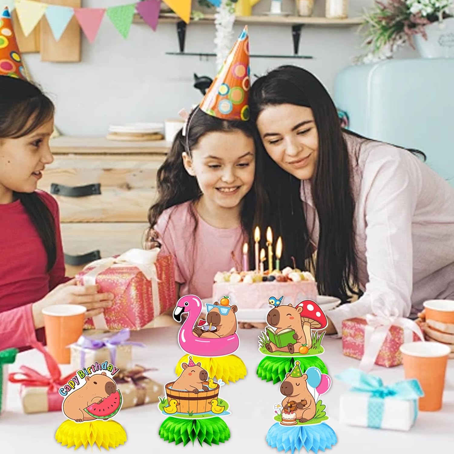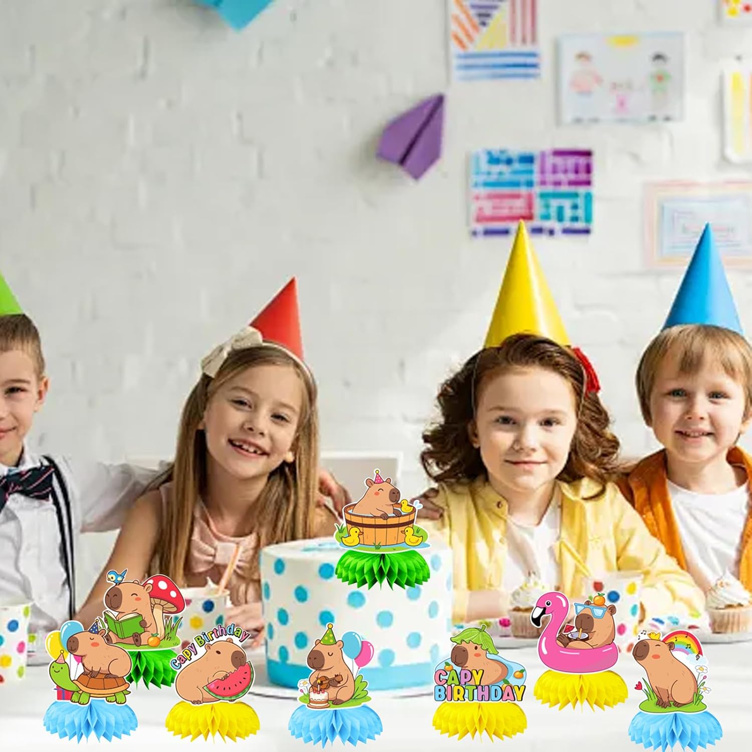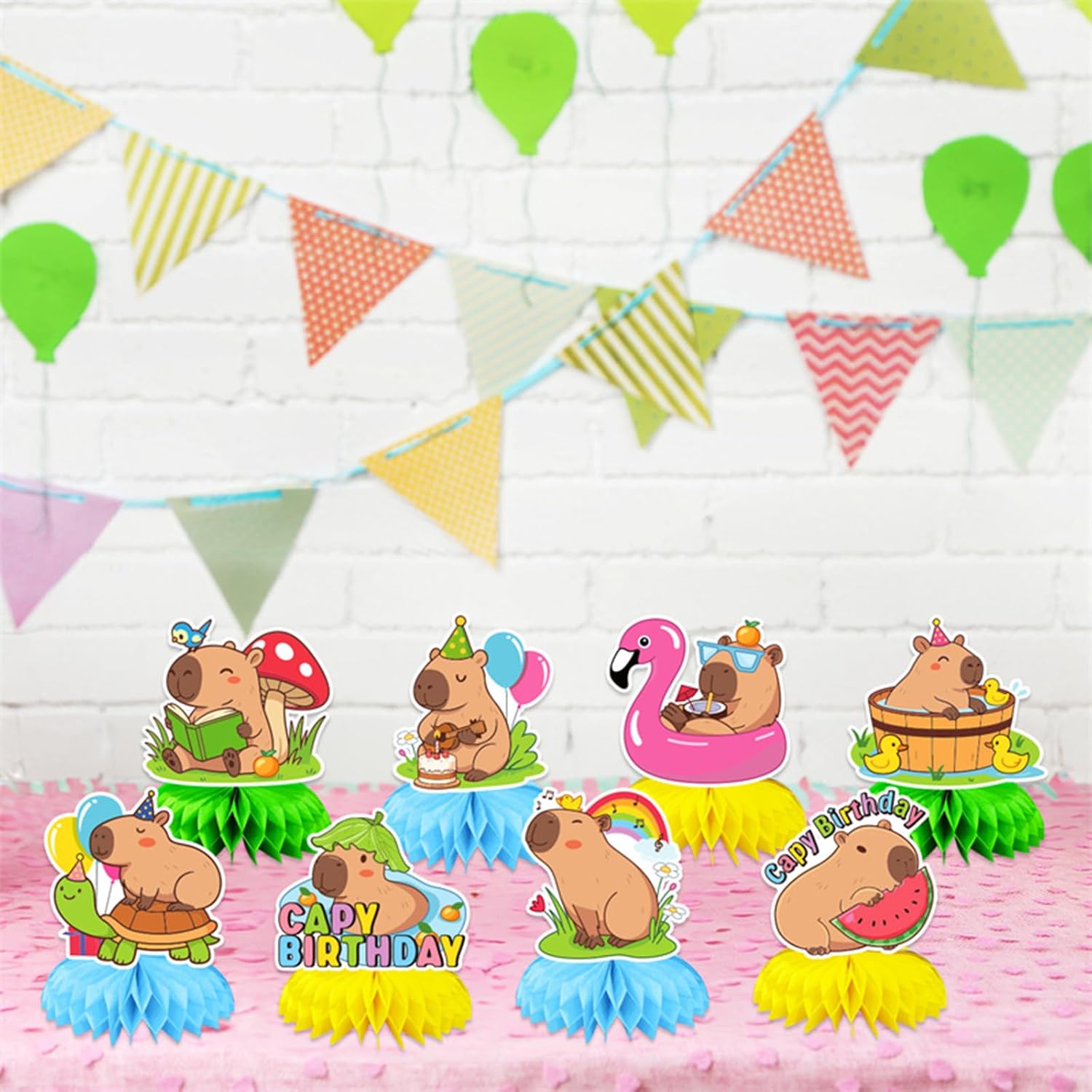 La confezione include: riceverai 8 decorazioni per la tavola di compleanno a nido d'ape di Capibara. Modelli diversi possono soddisfare le esigenze della tua festa e rendere la tua festa di compleanno più speciale. 【Design unico】 Queste decorazioni per la tavola di compleanno presentano una varietà di motivi capibara dai colori vivaci, creando un'atmosfera felice e piacevole per la tua festa, rendendola ancora più impressionante! 【Materiali di alta qualità】 I nostri centrotavola a nido d'ape capibara sono realizzati in cartone spesso ecologico e di alta qualità, e il colore è brillante e non facile da sbiadire. Facile da piegare e riporre, che può essere riutilizzato. 【Facile da usare】 Innanzitutto, stacca l'adesivo a sfera a nido d'ape, fissalo nella posizione fissa della tavola, ripetilo sull'altro lato della tavola e infine posizionalo sul tavolo per completare l'assemblaggio. Ampio utilizzo: la decorazione per la tavola di compleanno a nido d'ape di Capibara è adatta per feste di compleanno come feste per bambini, riunioni di famiglia, intrattenimento scolastico o decorazioni creative per la tavola. Queste decorazioni di compleanno possono creare un'atmosfera felice e vivace per queste scene.