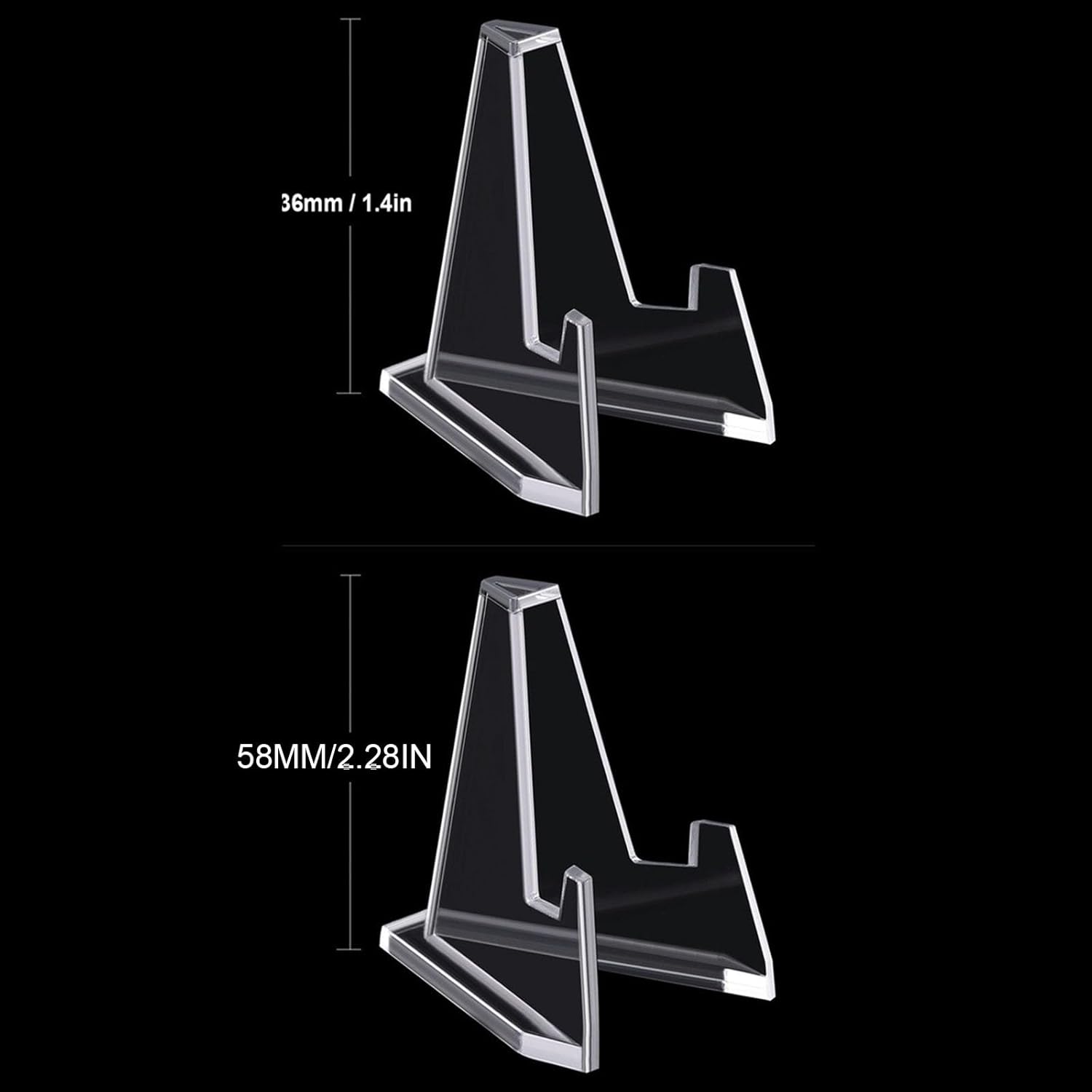 Design unico: il design triangolare ha reso questo cavalletto in acrilico più stabile e mostra i tuoi oggetti da collezione in un angolo di visione perfetto Realizzato in acrilico di alta qualità, durevole da usare, bellissimo aspetto cristallino e liscio al tatto Grande applicazione: può essere applicato a casa, showroom per ufficio, classi d'arte, libreria, matrimonio, mostra commerciale, vetrina, varie feste e aziende in cui i prodotti devono essere mostrati al pubblico Dimensioni: 3,6 cm, 5,8 cm. Dimensioni e peso leggero, facile da riporre e trasportare; la confezione include 8 supporti in acrilico, abbastanza per la vostra sostituzione o sostituzione Utilizzo: ideale per tutti i tipi di oggetti da collezione, come: monete sfida, medaglie, monete, porta capsule aeree, medaglie militari, minerali, fossili, match, gemme, polizia e distintivi di fuoco, bottoni politici, orologi da tasca, carte tascabili, cartoline, CD, carte sportive, piastre di burro, piastre di burro e molto altro ancora